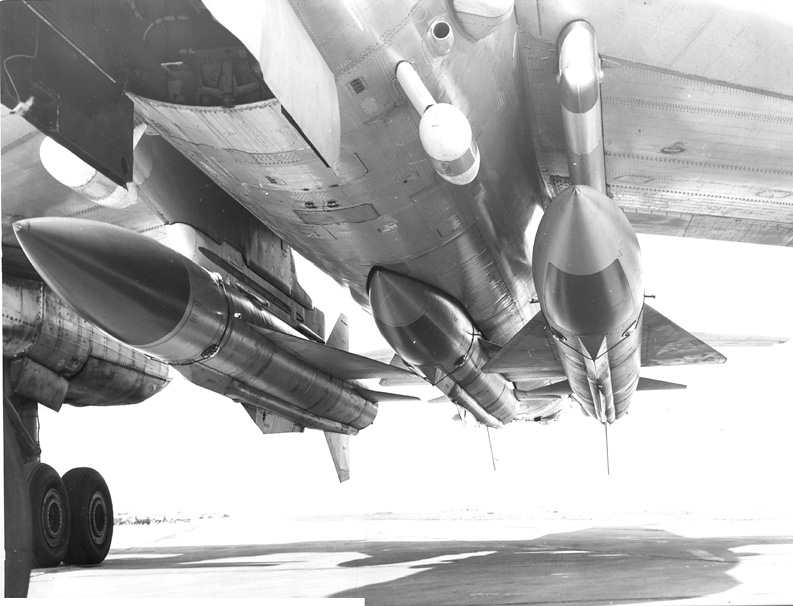 Балочный держатель БД-206 снабдили переходником на базе серийной фюзеляжной пусковой установки БД-45Ф самолета Ту-22М, а под крылом установили еще два пилона с балками БД-45К с того же самолета. Варианты вооружения могли составлять одну полуутопленную в фюзеляж, или две на пилонах ракеты Х-22. Правда на некоторых фотоснимках можно видеть и подвеску трех ракет.