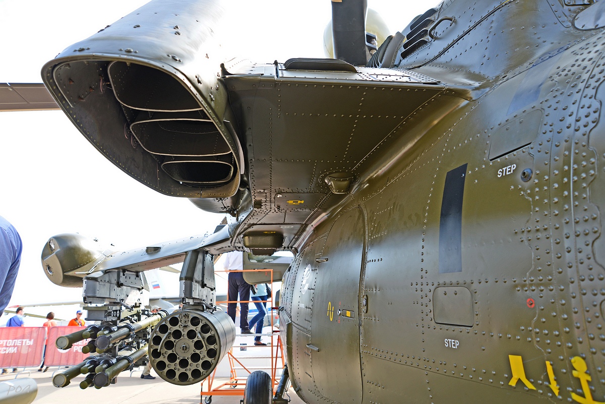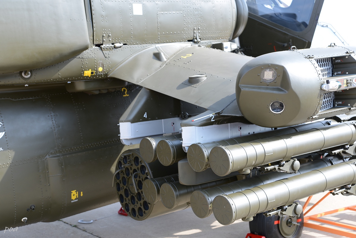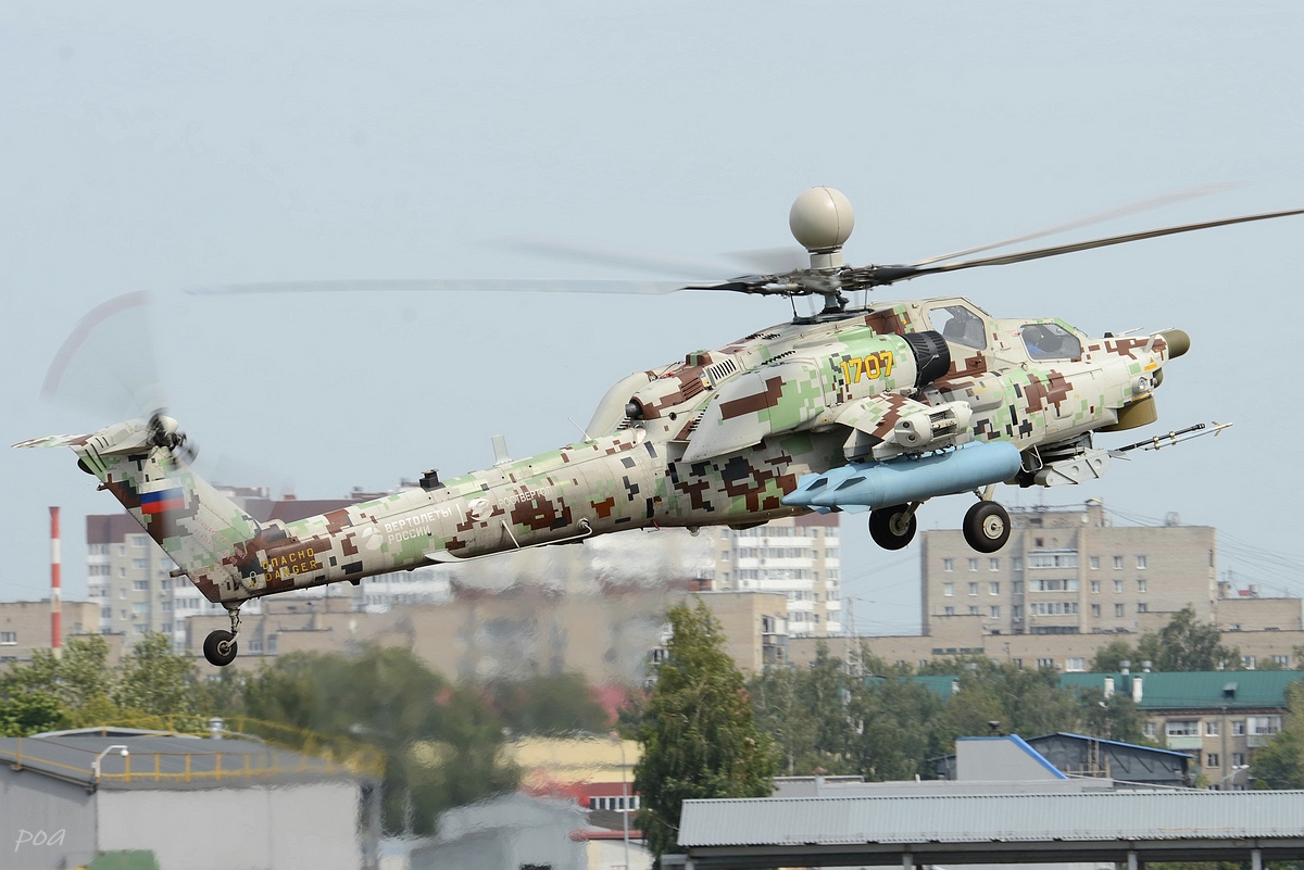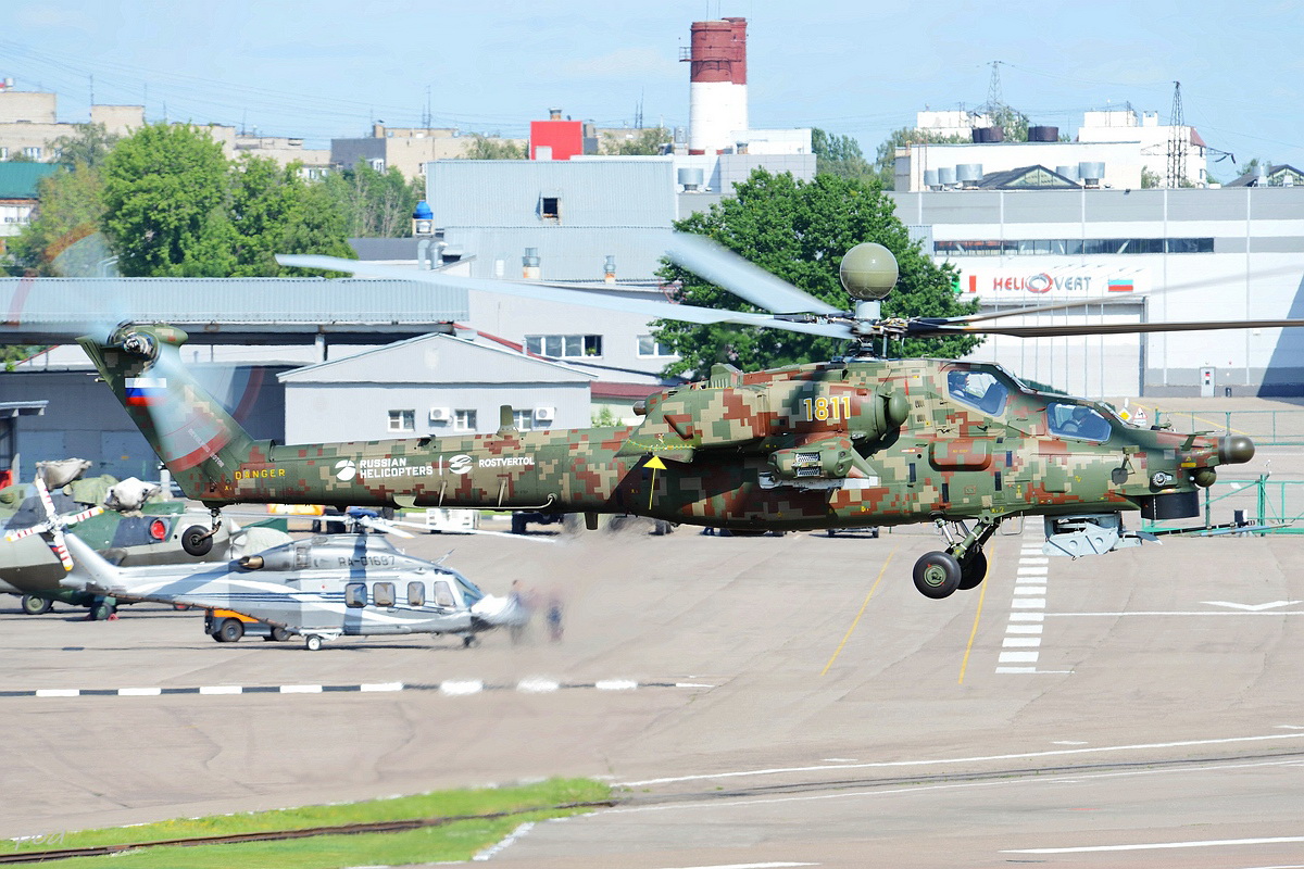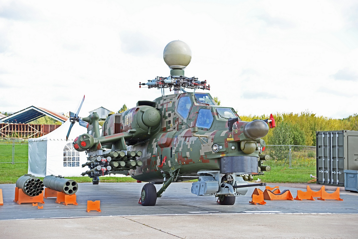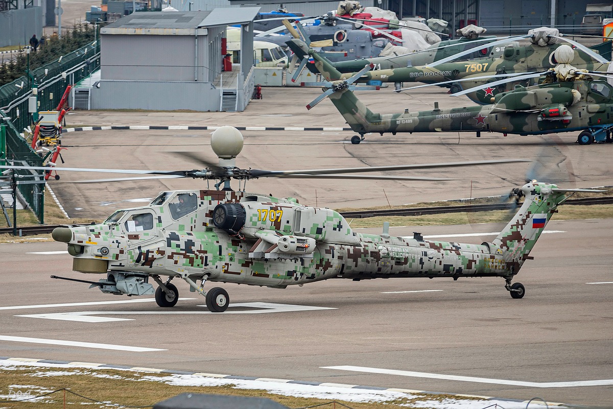 Здесь же в 2020 году появился еще один Ми-28НЭ. Внешне основное отличие, это оригинальной формы ПЗУ и пиксельный камуфляж явно рассчитанный на "товарищей" из жарких стран.