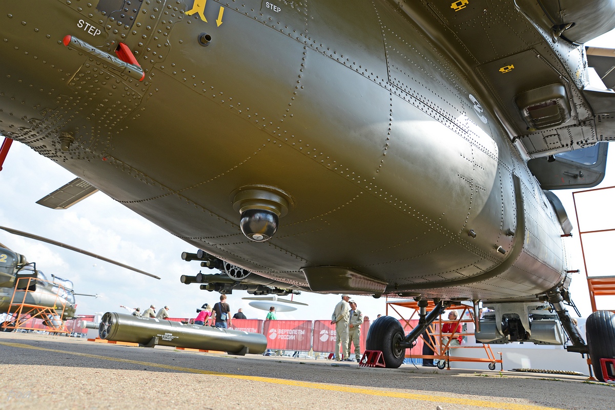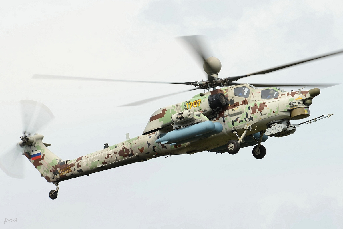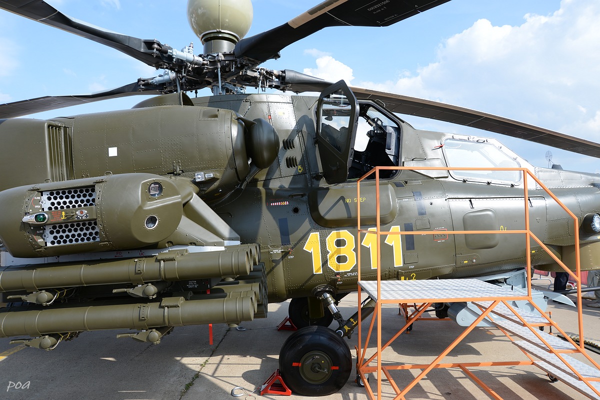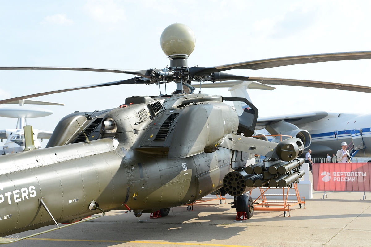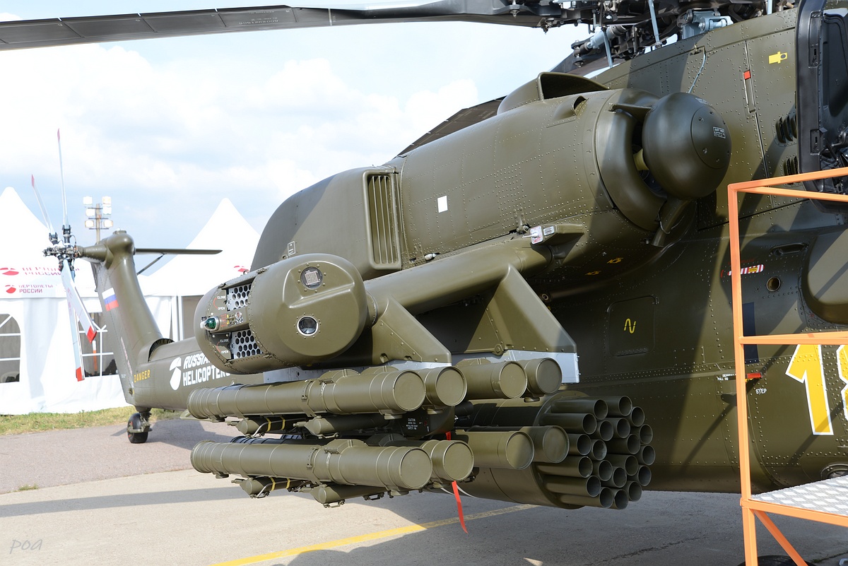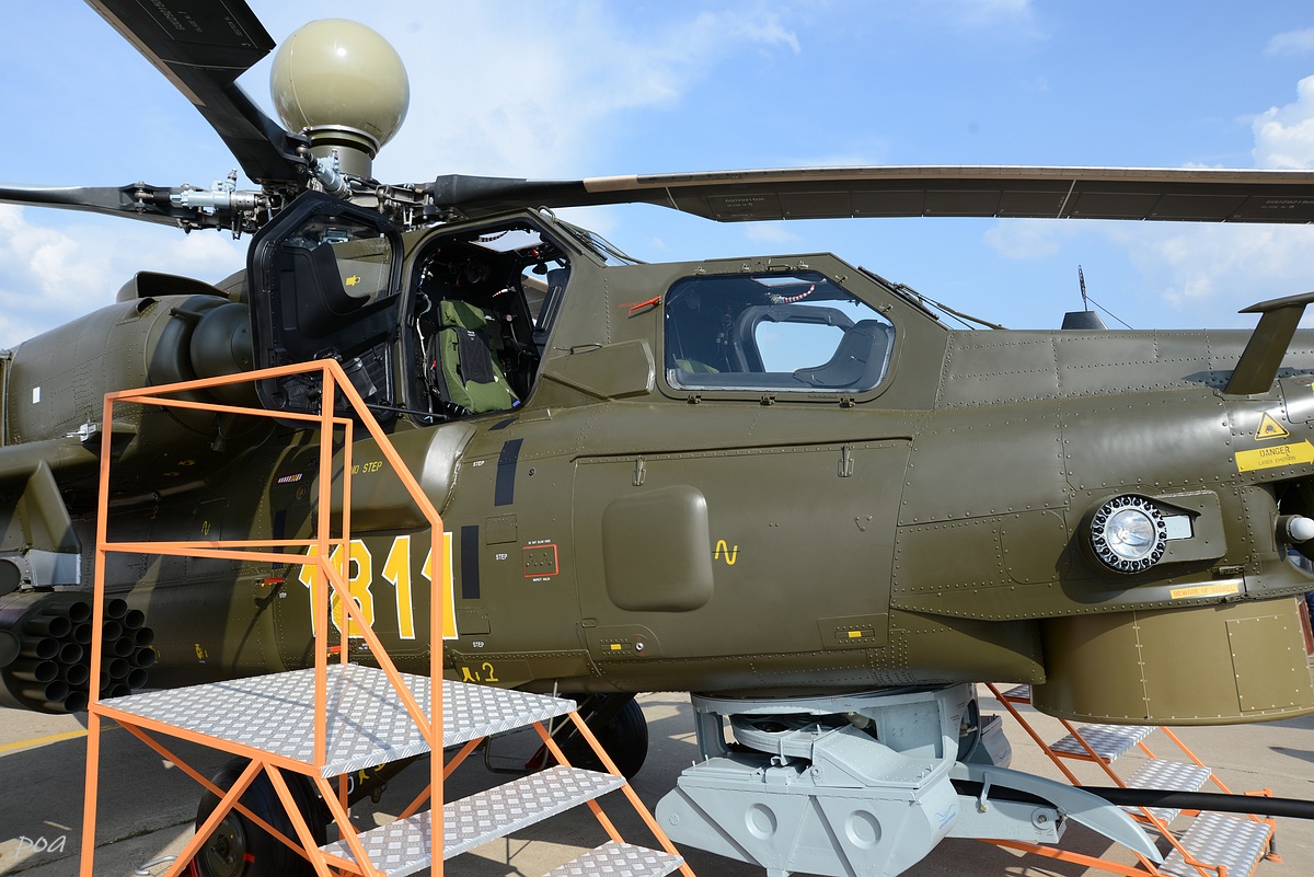 Здесь же в 2020 году появился еще один Ми-28НЭ. Внешне основное отличие, это оригинальной формы ПЗУ и пиксельный камуфляж явно рассчитанный на "товарищей" из жарких стран.