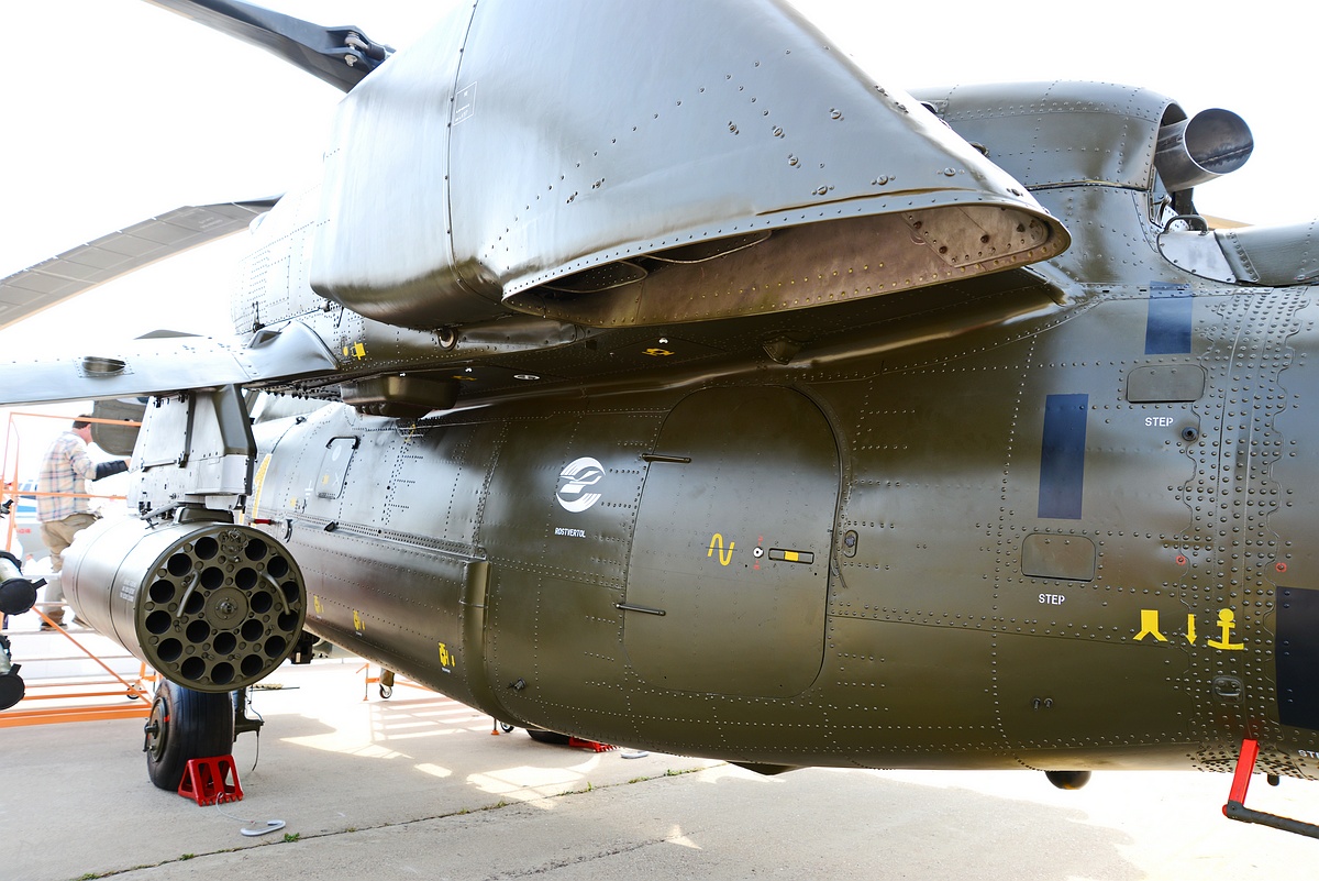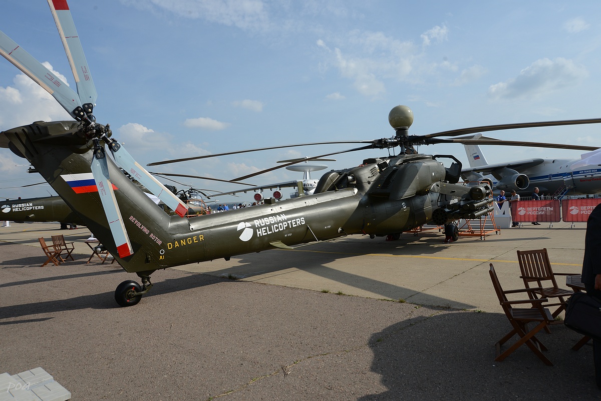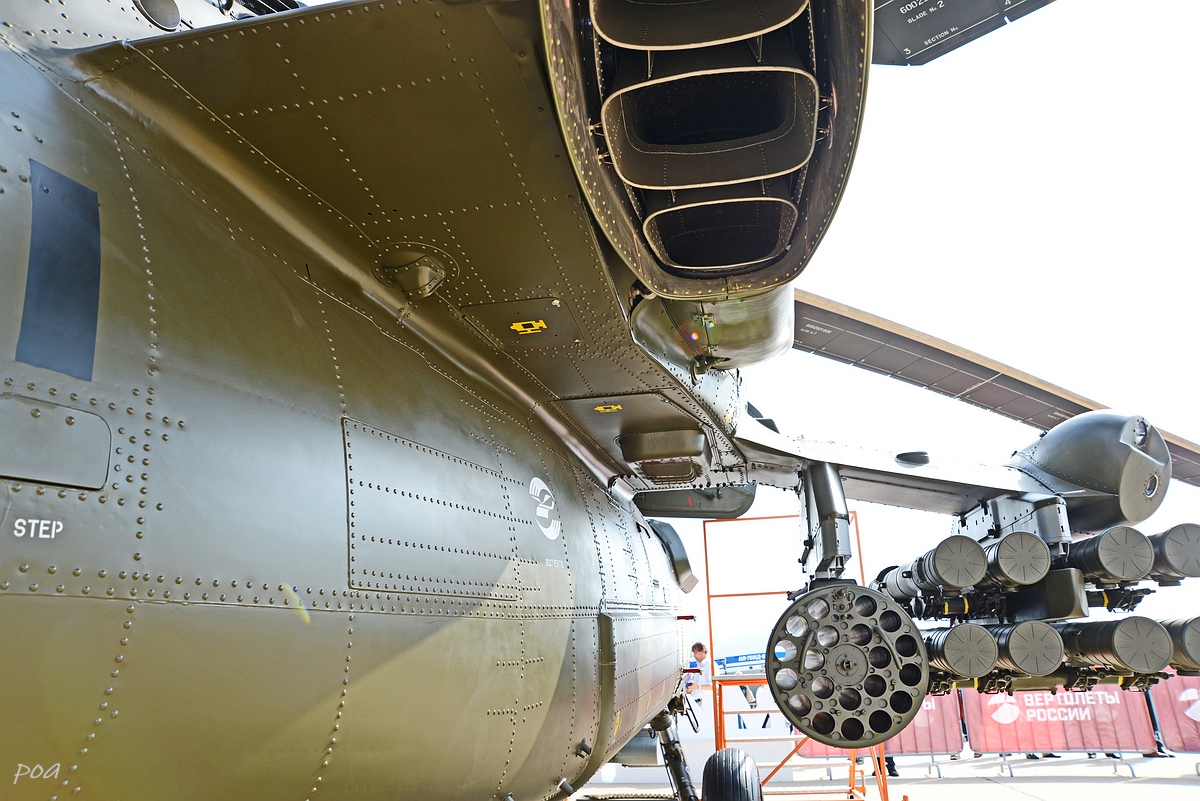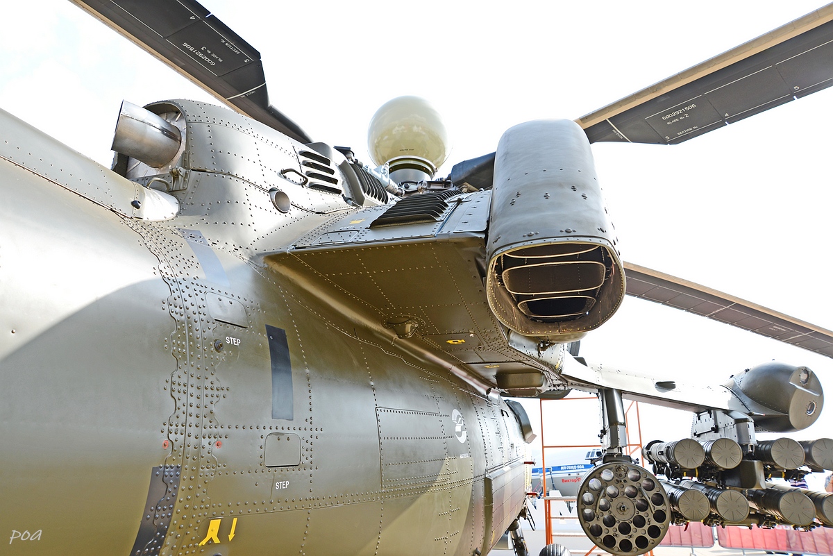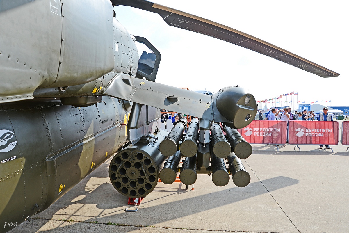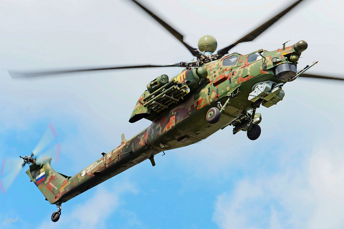 Здесь же в 2020 году появился еще один Ми-28НЭ. Внешне основное отличие, это оригинальной формы ПЗУ и пиксельный камуфляж явно рассчитанный на "товарищей" из жарких стран.