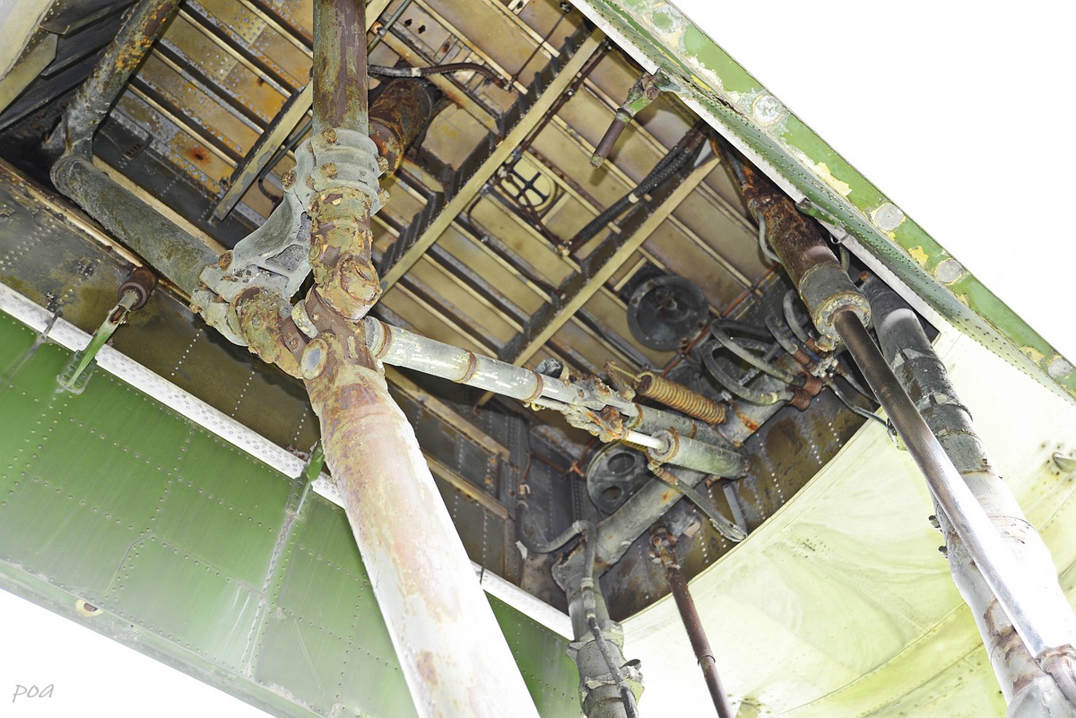 С разгону не нашел фото самолета на взлете или посадке при виде сзади. А рулит и стоит уже с убранными закрылками. Учитывая консервативность Туполева, могу предположить, что механизмы уборки закрылок схожие у Ту-1о4 и даже у Ту-134.