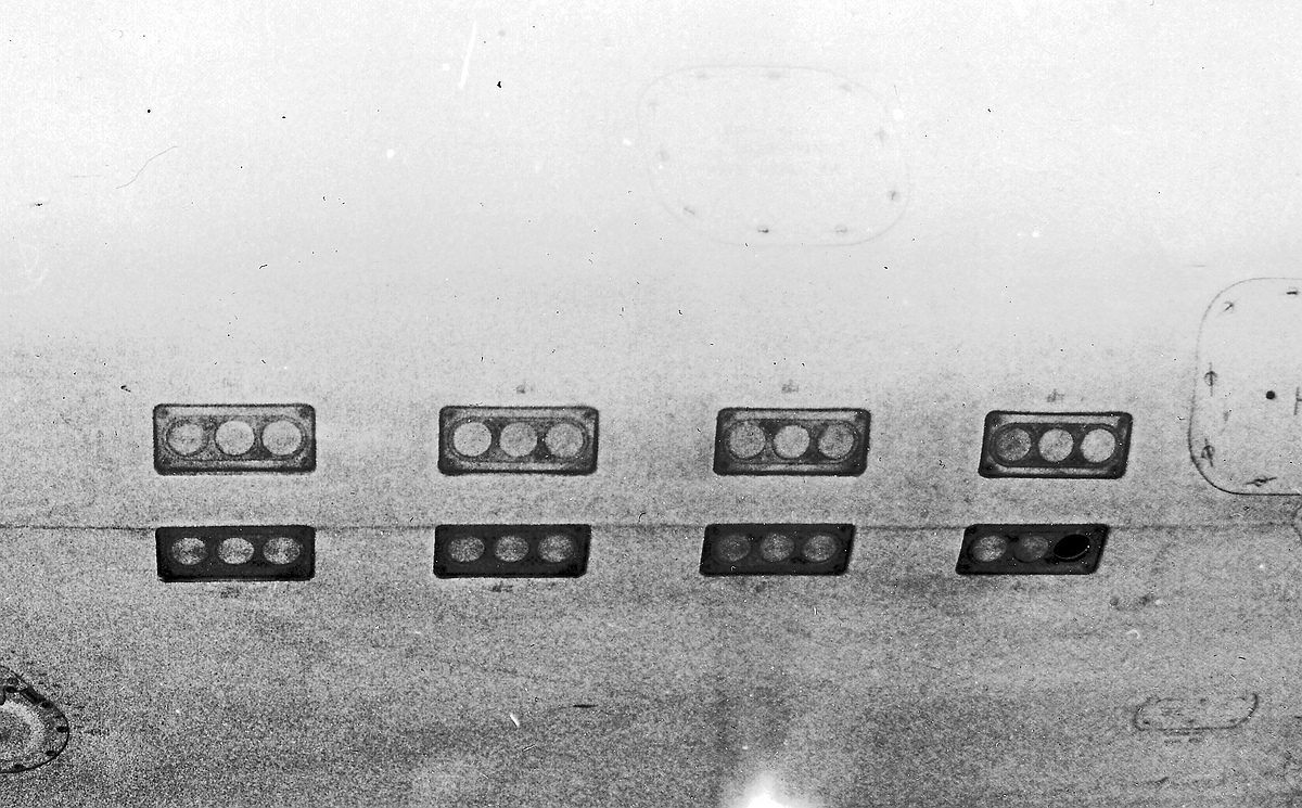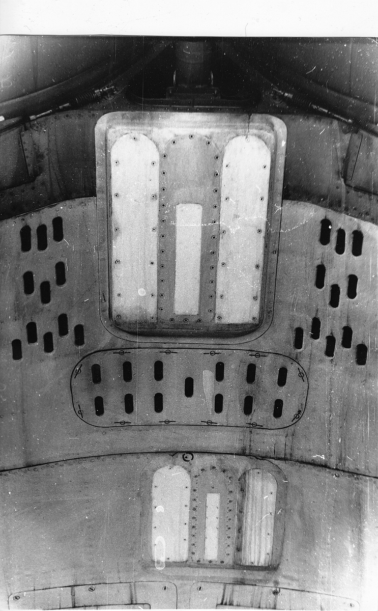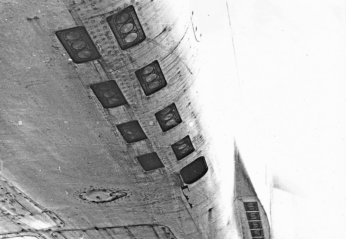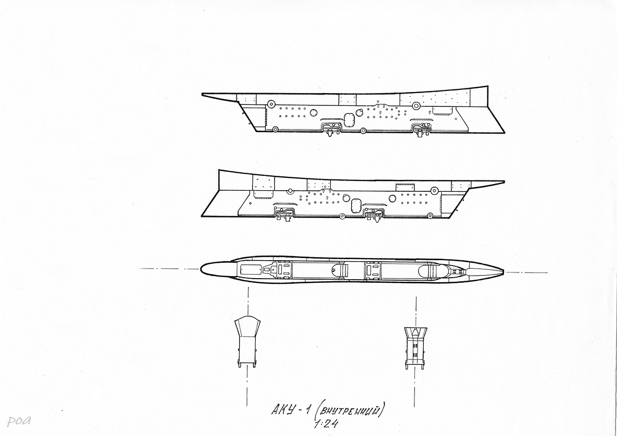 -места для установки автоматов постановки помех АПП-50А в нижней передней части надстроек стабилизатора. Сами держатели не устанавливались и место их установки закрывалось дюралевой панелью;