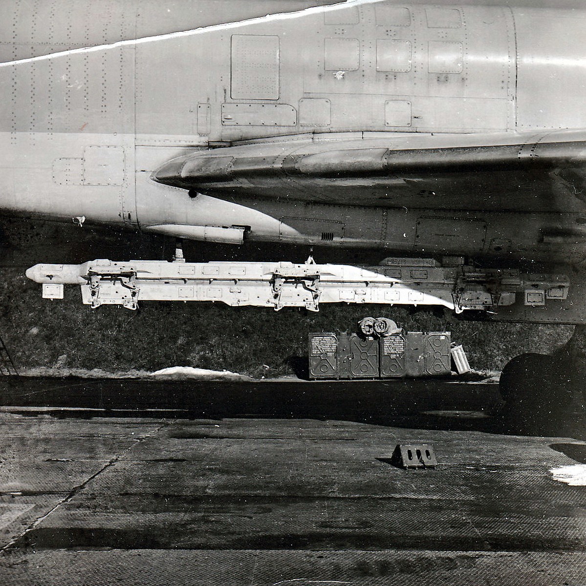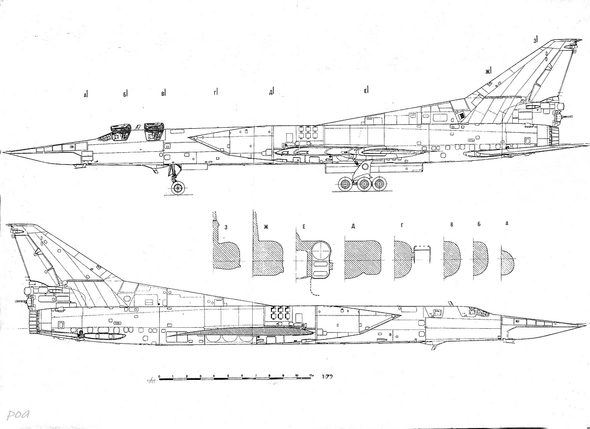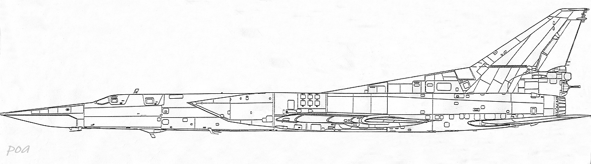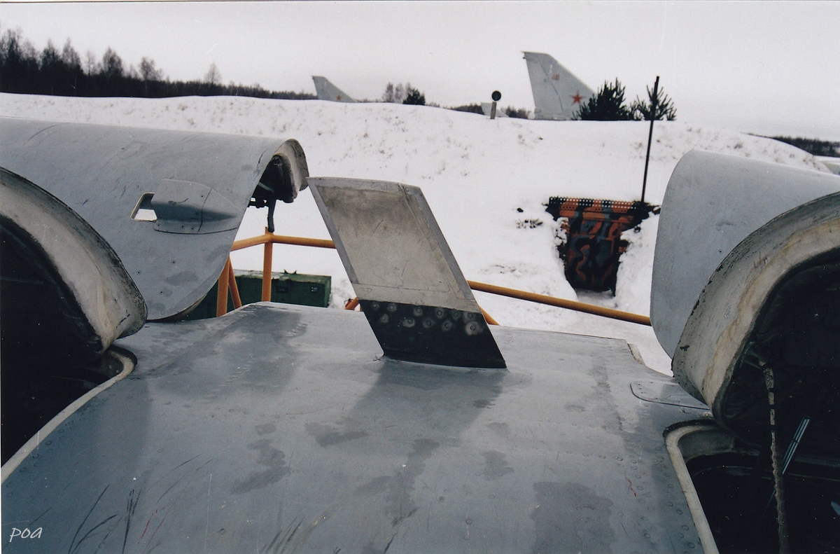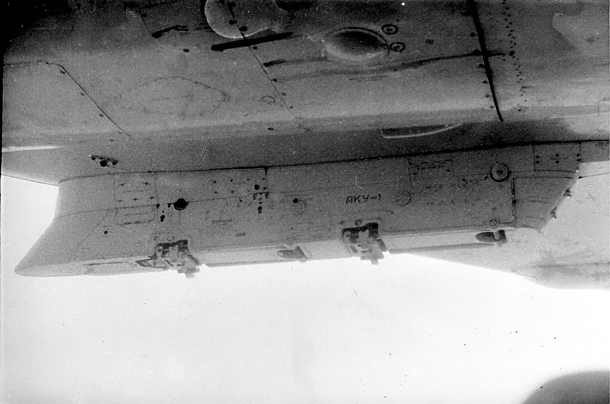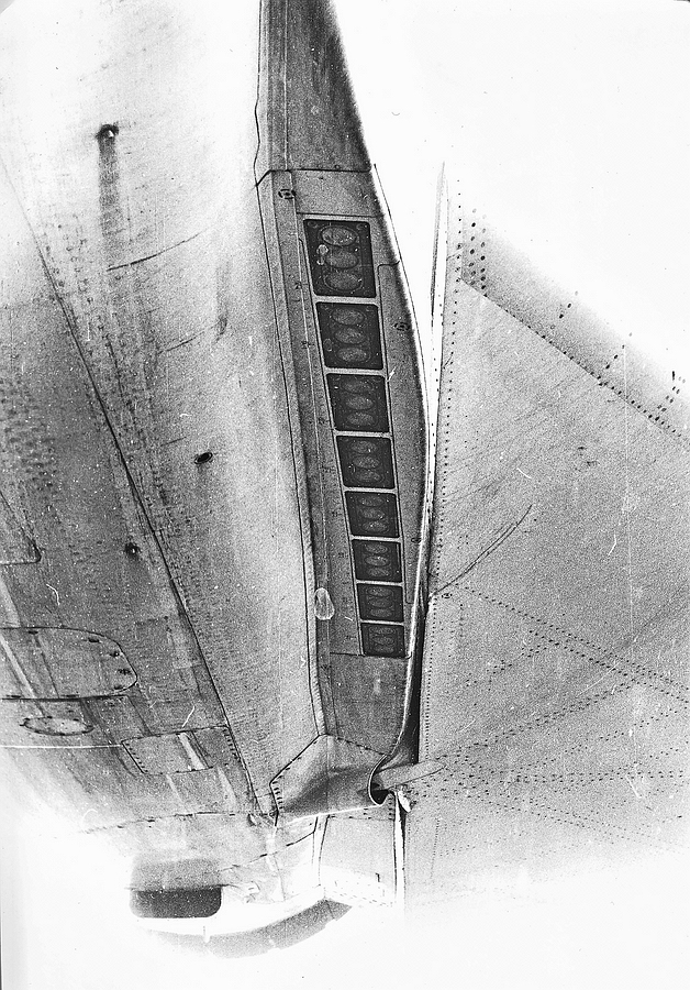 -зарезервированы места для автоматов установки помех АПП-50А для отстрела противорадиолокационных и инфракрасных патронов калибра 50 мм на нижней части фюзеляжа за крылом. До машин 81-й серии ячейки для их установки располагались ассиметрично - десять на правом борту и шесть на левом (см. чертеж).