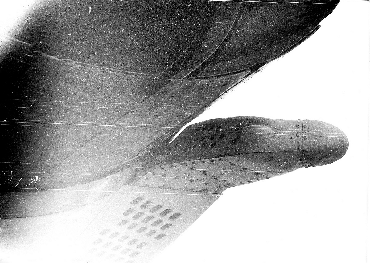 -отсутствие обтекателя вывода воздуха из технического отсека на верхней поверхности носовой части фюзеляжа за кабиной экипажа;