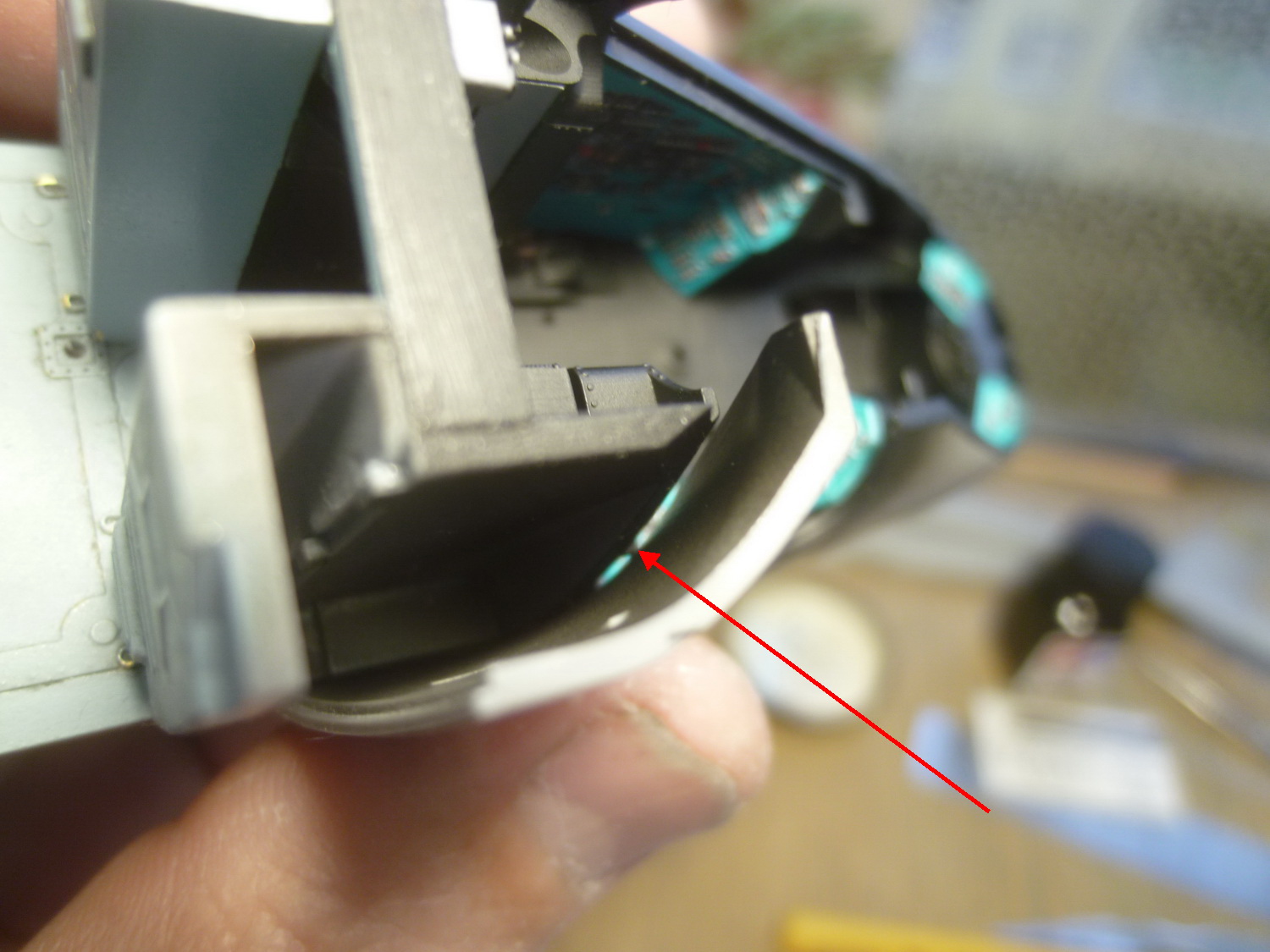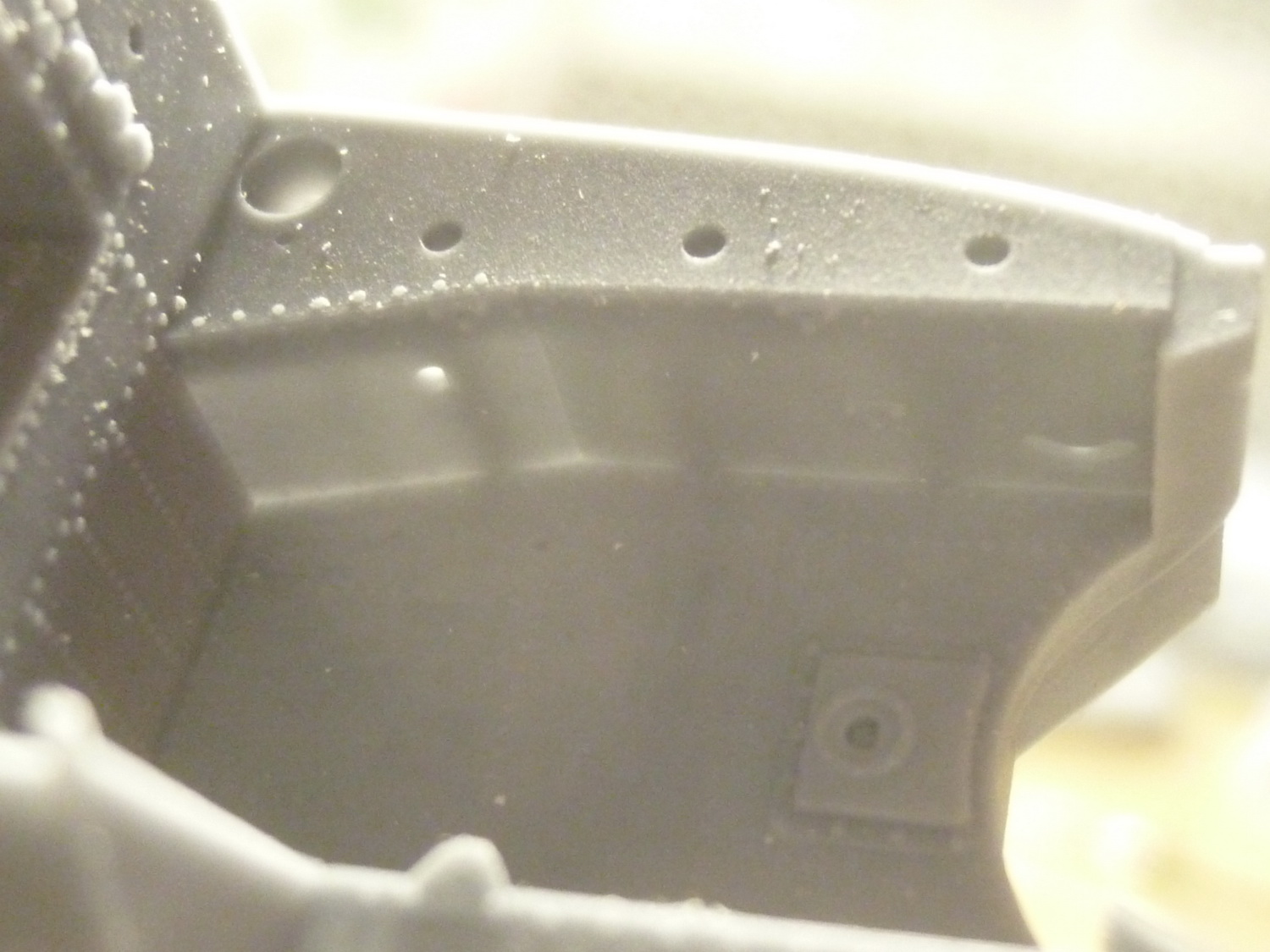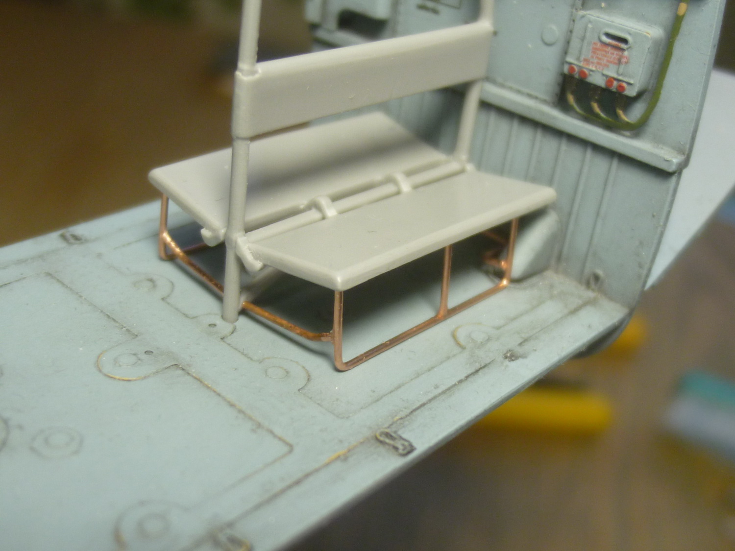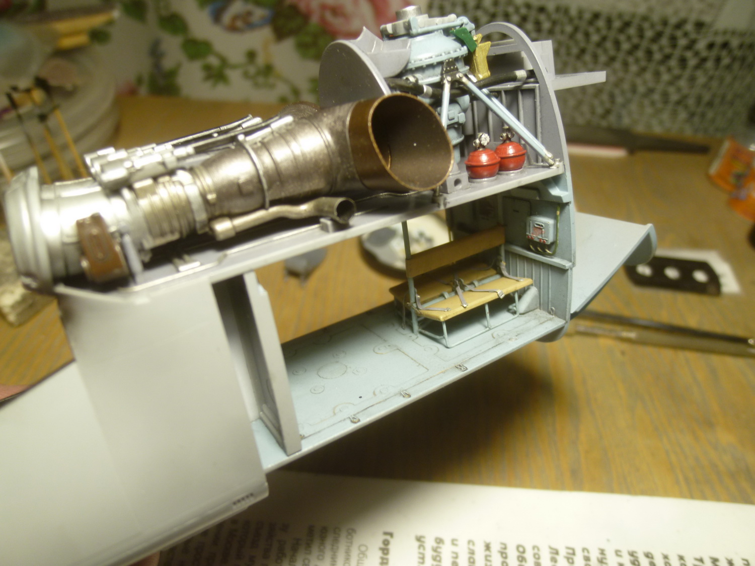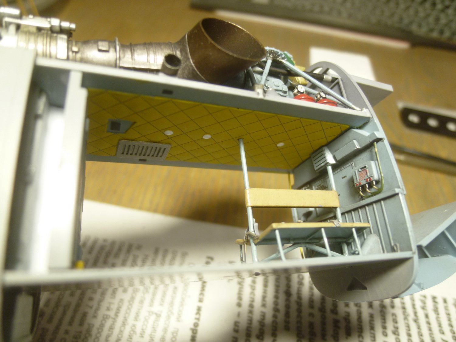 Пространство за креслом пилота сделано с расчётом на приобретение дополнительного набора с десантно-транспортным отсеком от этой же фирмы. Там красотища конечно же, но слишком дорого... Поэтому пришлось сращивать смолу с пластиковыми деталями из набора, добавив при этом "недостающего" полистирола.
