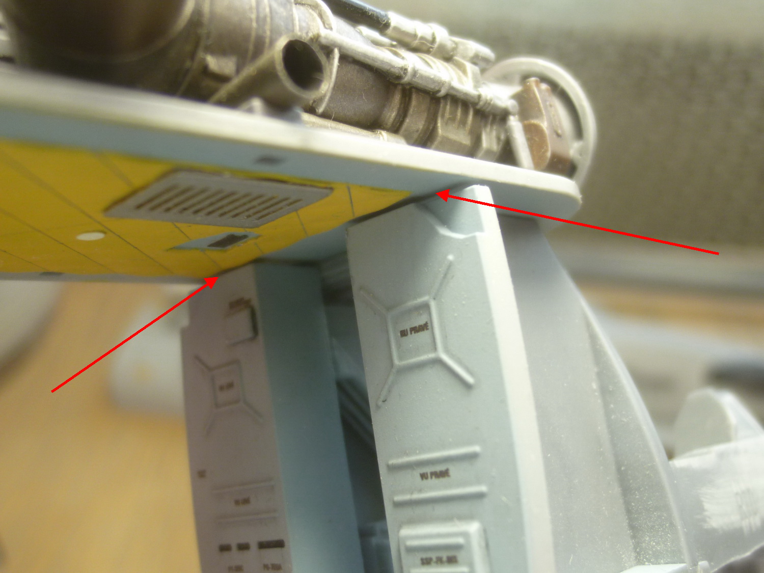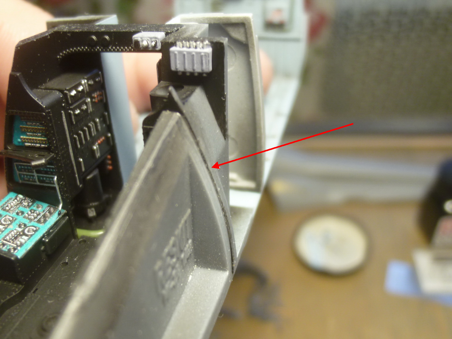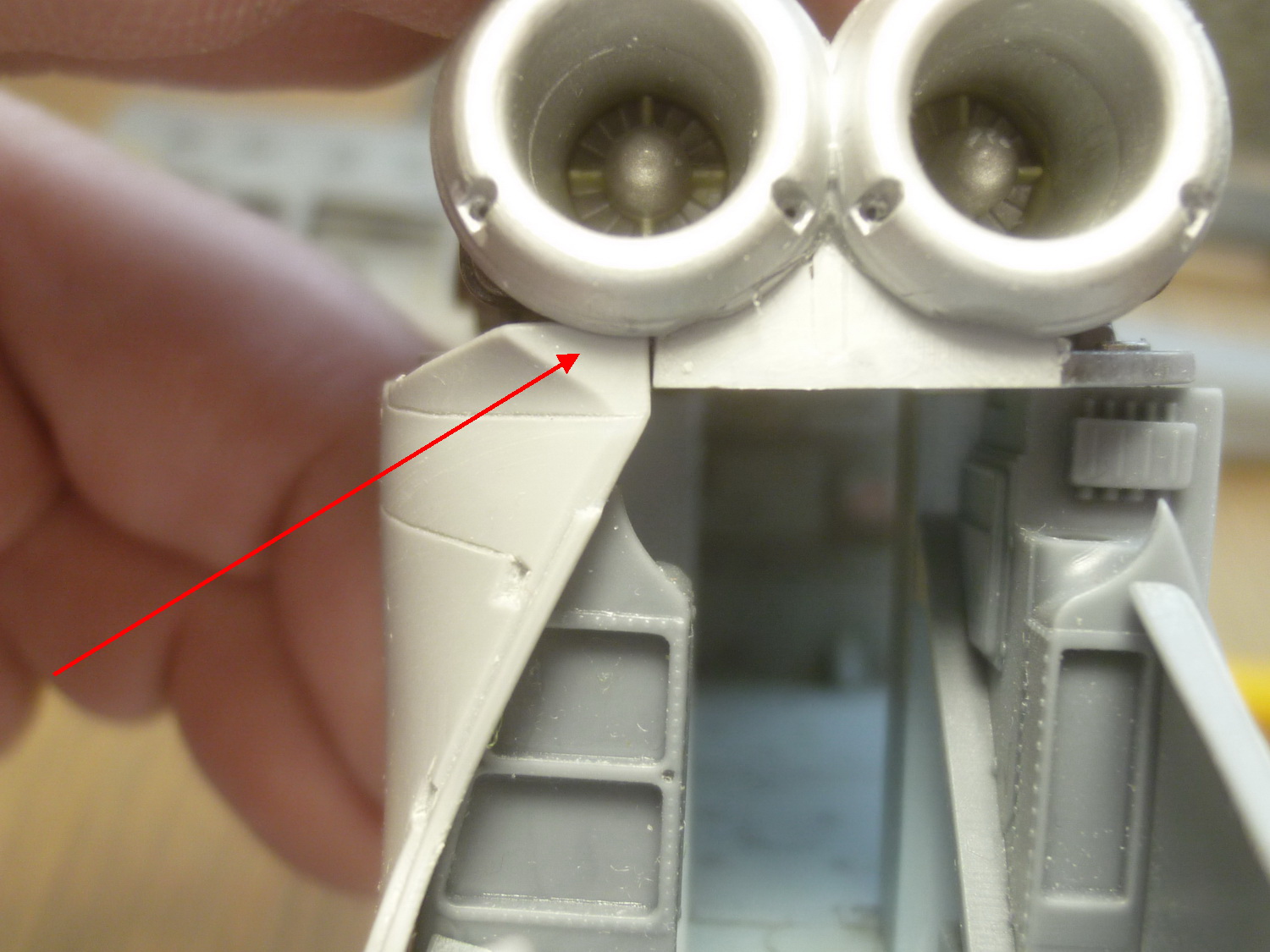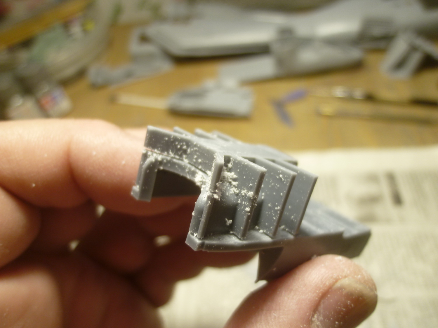 Пространство за креслом пилота сделано с расчётом на приобретение дополнительного набора с десантно-транспортным отсеком от этой же фирмы. Там красотища конечно же, но слишком дорого... Поэтому пришлось сращивать смолу с пластиковыми деталями из набора, добавив при этом "недостающего" полистирола.