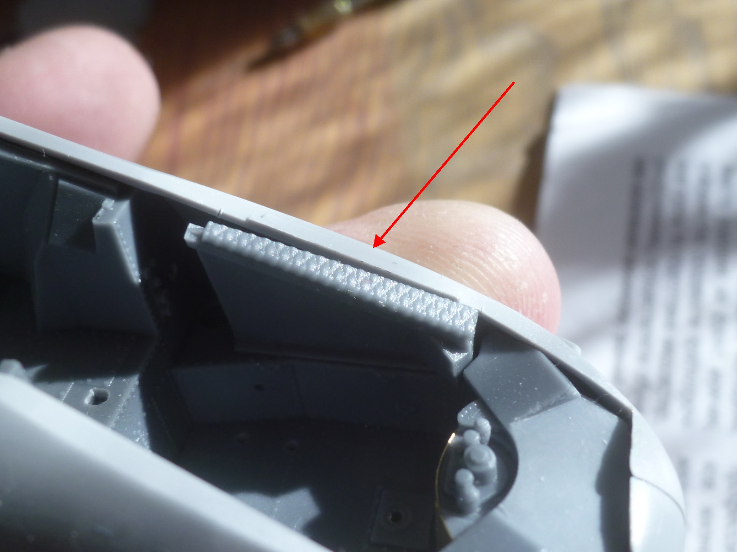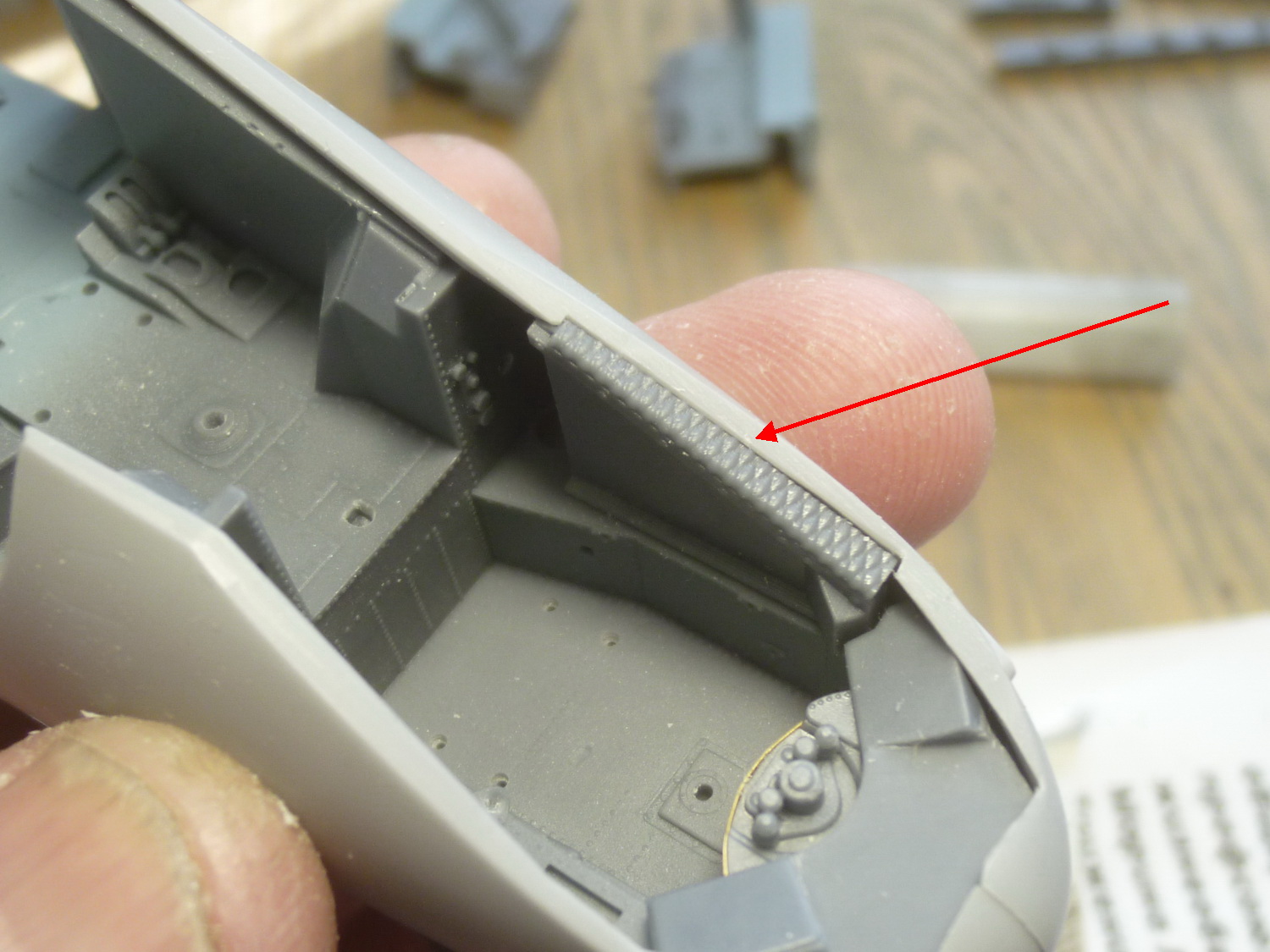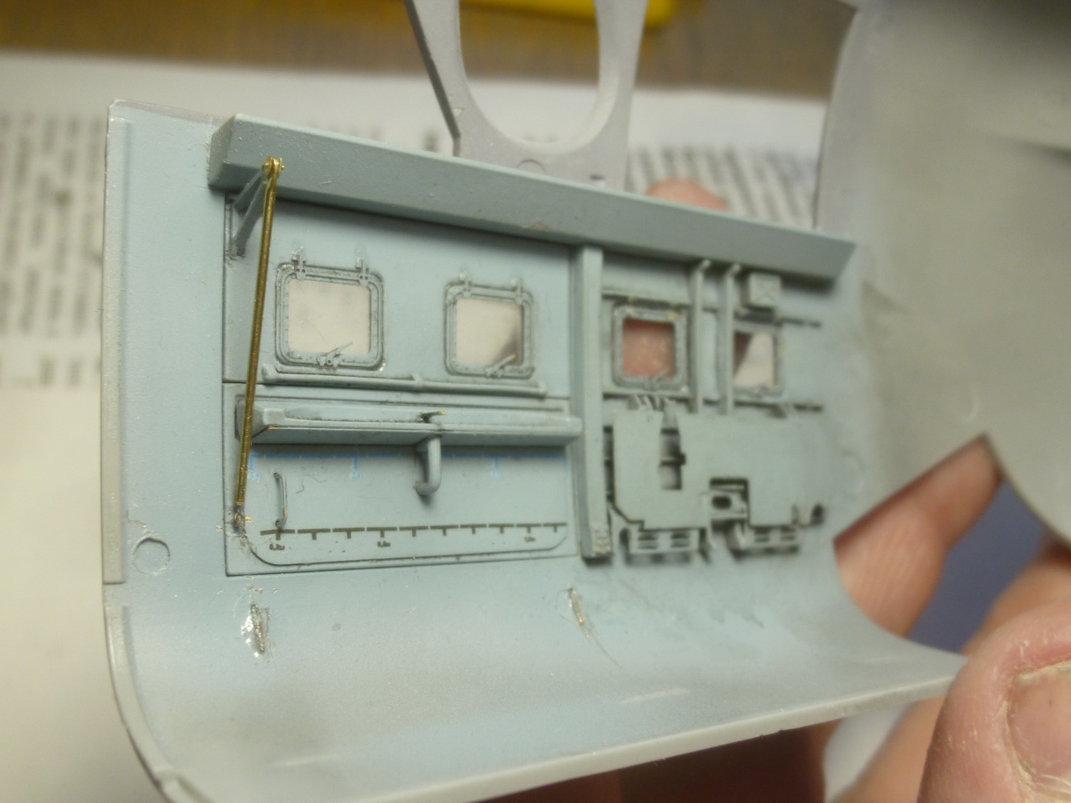 Как же хорошо, что я не торопился красить детали до подгонки - очередной "ляп" получился с левой боковой доской в передней кабине. После подстыковки борта попробовал поставить её на своё место и, как результат - снова надо подрезать. В инструкции нет даже намёка на этот момент.