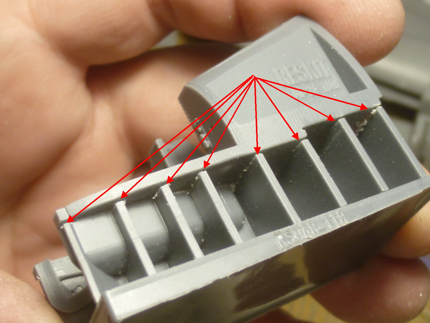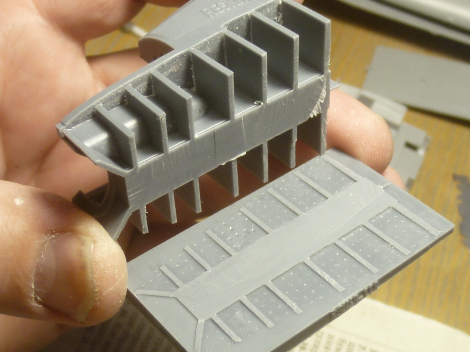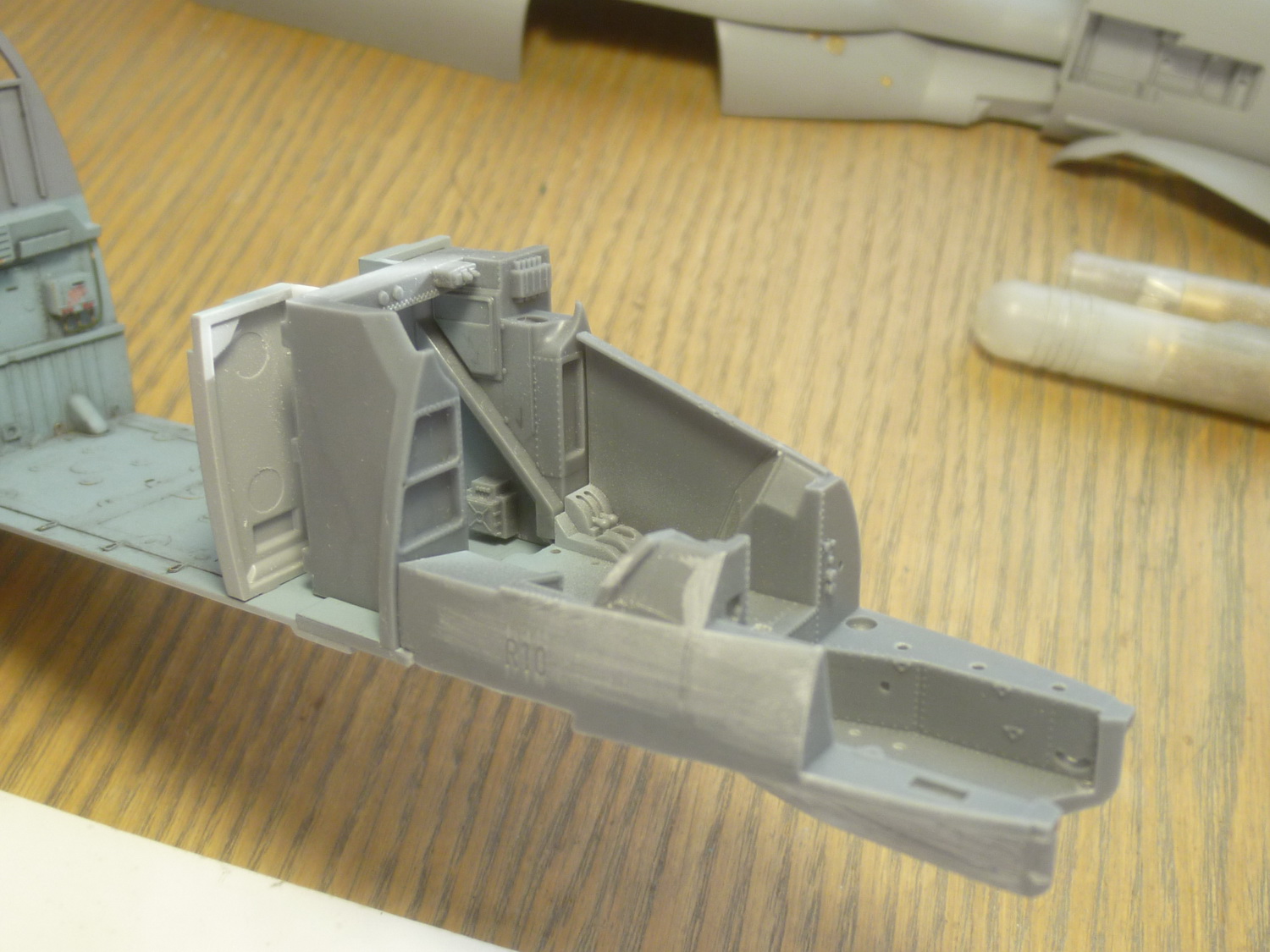 На этой неделе было много "суеты", + женский день - поэтому сделано мало. Идёт подготовка деталей интерьера к покраске и, как это ни странно - снова подгонка смолы под модель...