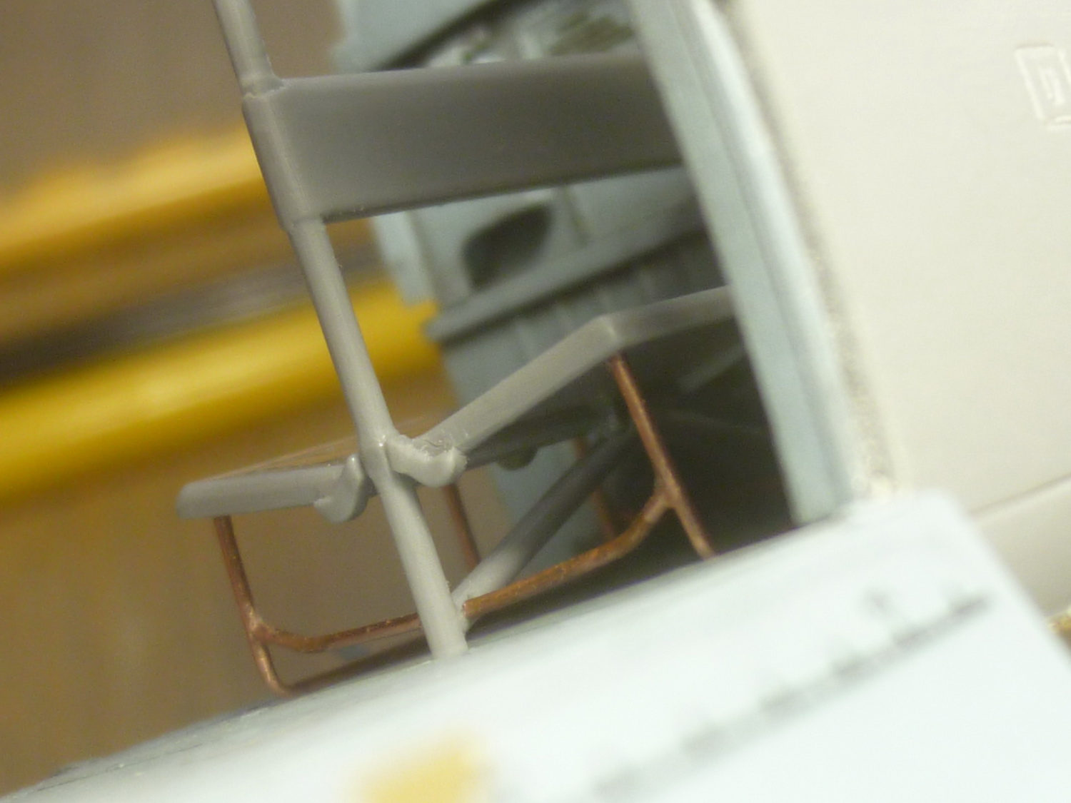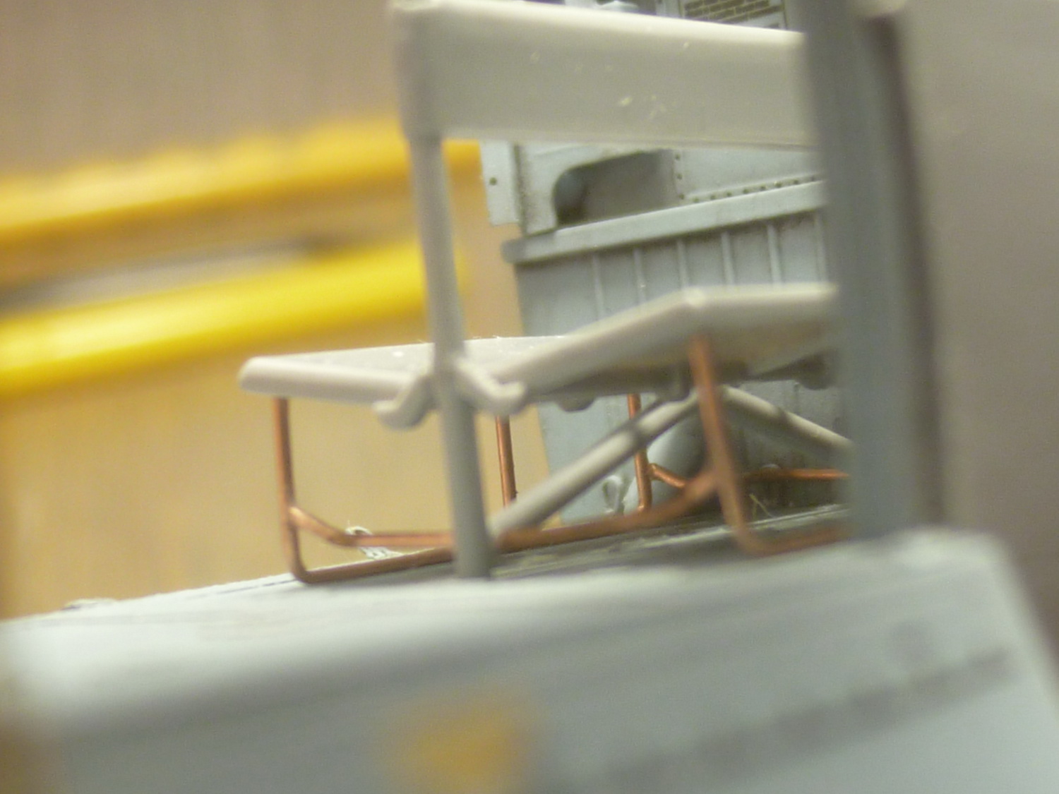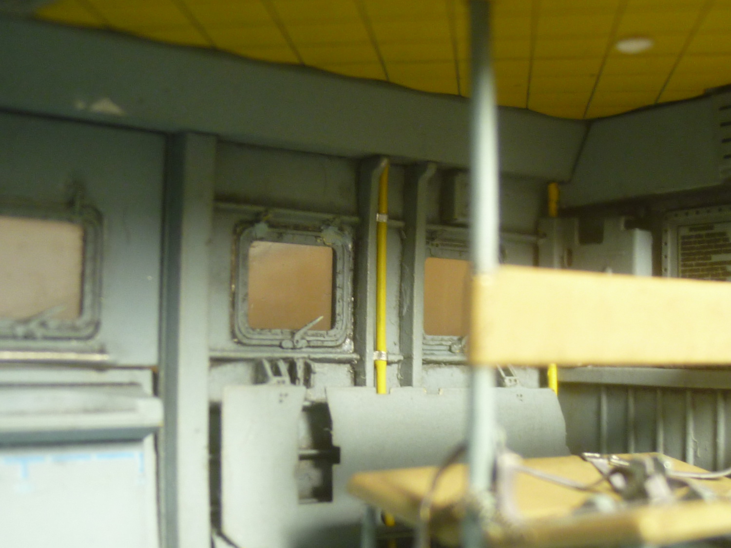 Сделал ножки у складных сидений в ДТО - через открытые двери даже "поднутрение" просматривается хорошо. А захотелось их поставить здесь потому, что на пушечном эти сидения чаще всего снимались.