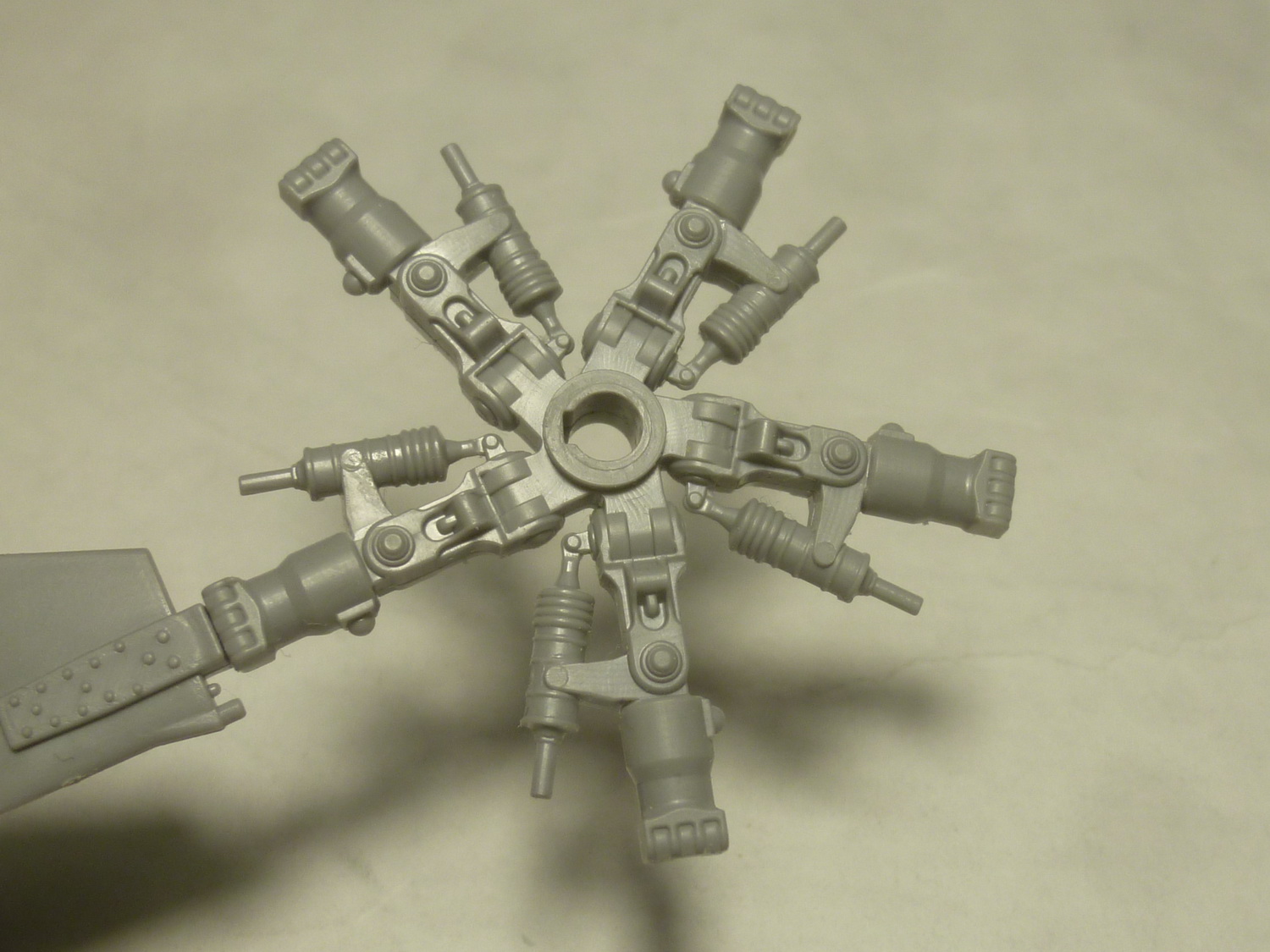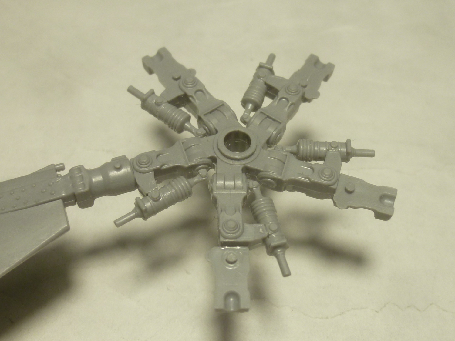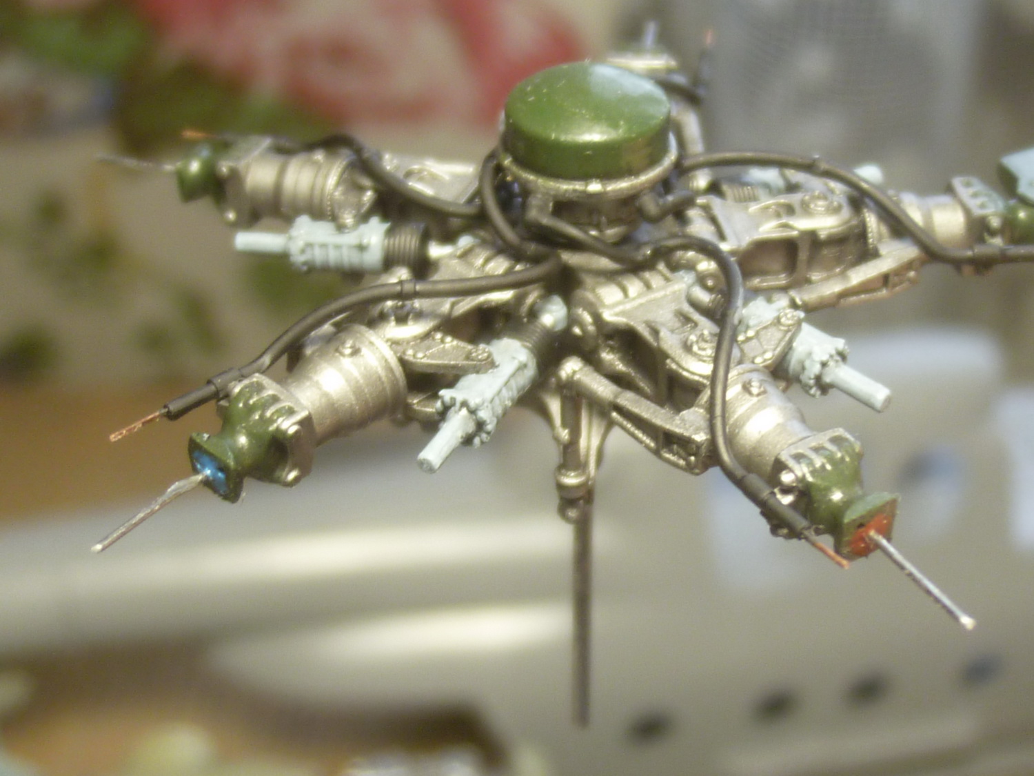 Доделал вчера НВ. Добавил на нём демпферы и шланги подвода воздуха к лопастям. Для упрощения процесса подстыковки лопастей на "свои" места сделал метки разными цветами.