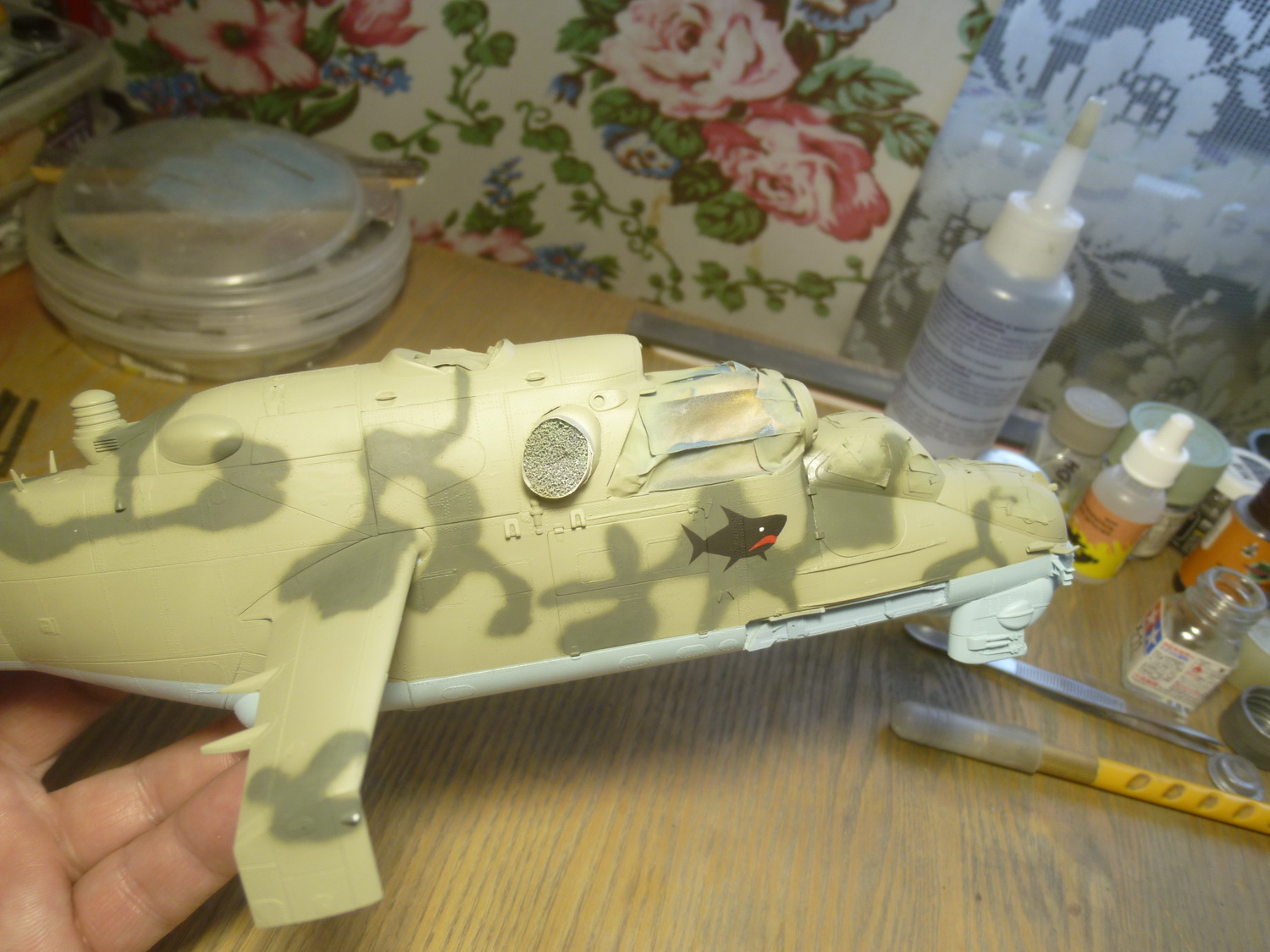 Сделал вчера смывочку, снял маски с остекления. Кое-где клей от масок начал въедаться в зафутуренный фонарь - пришлось долго и нудно удалять ватными палочками и вновь наносить футуру кистью. Если не смотреть в сильном увеличении, то очень даже ничего!