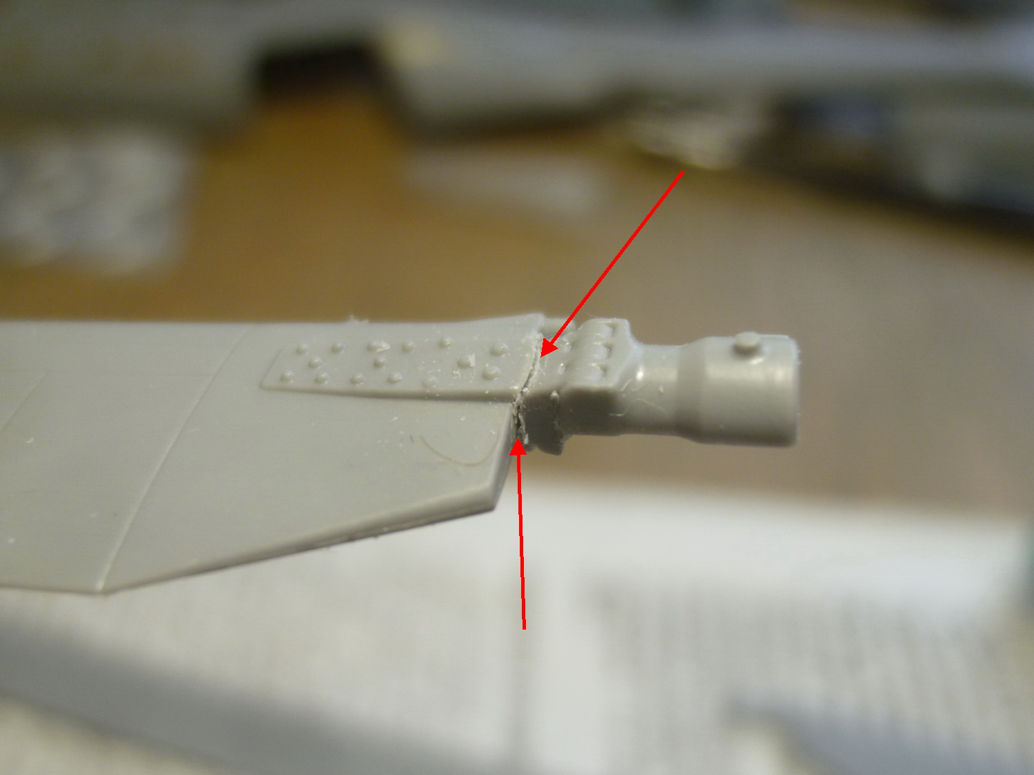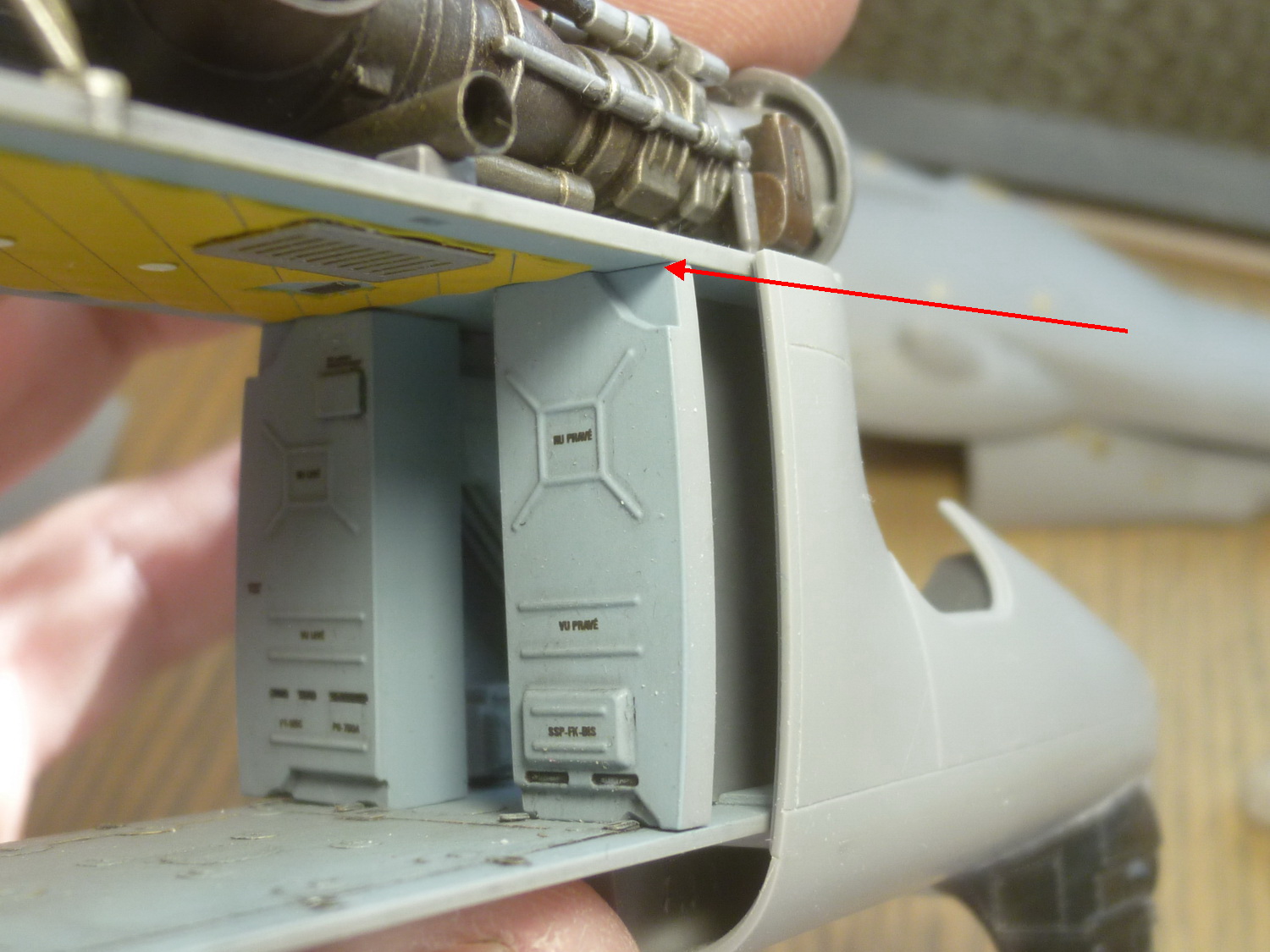 Не зря приобрел набор с допами именно на чеха. Обтекатель "Радуги" и станция подсветки цели при на нём сильно отличаются от советских. Обклеиваю МД травлением половинки фюзеля, стачиваю откровенно толстое (где-то приходится ремонтировать суперклеем), облагородил обтекатель на киле.