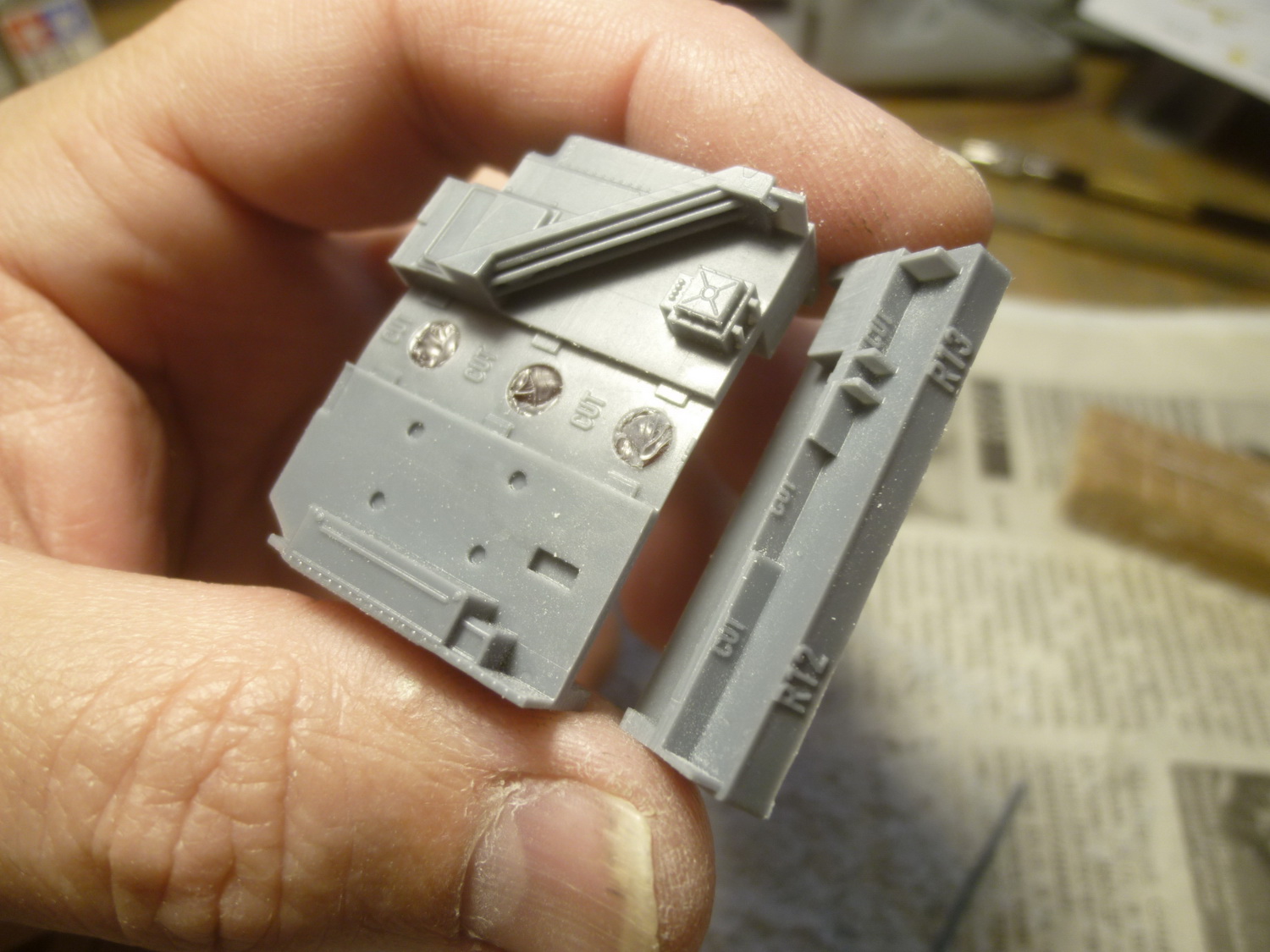 Рэскитовская кабина (для напоминания ставлю фото коробочки) требует осознанного подхода к своему извлечению из литниковой системы - на ура там не прокатит, страшновато за тоненькие стенки.