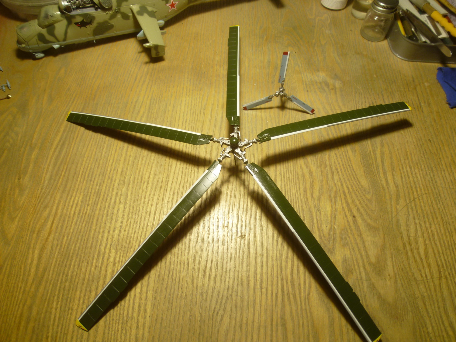 Поработал с винтами и примерил на модель. Одну лопасть НВ приклеил к ротору, остальные съёмные.