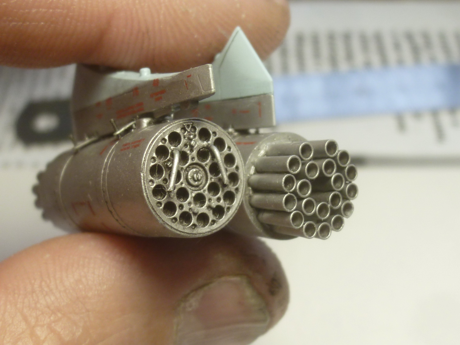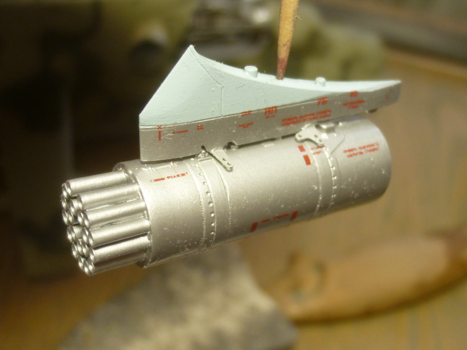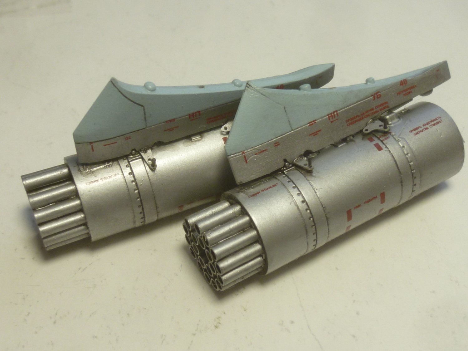 Доделал блоки и пусковые трубы "Штурма". Исправил неверно окрашенный колпак над ротором НВ.