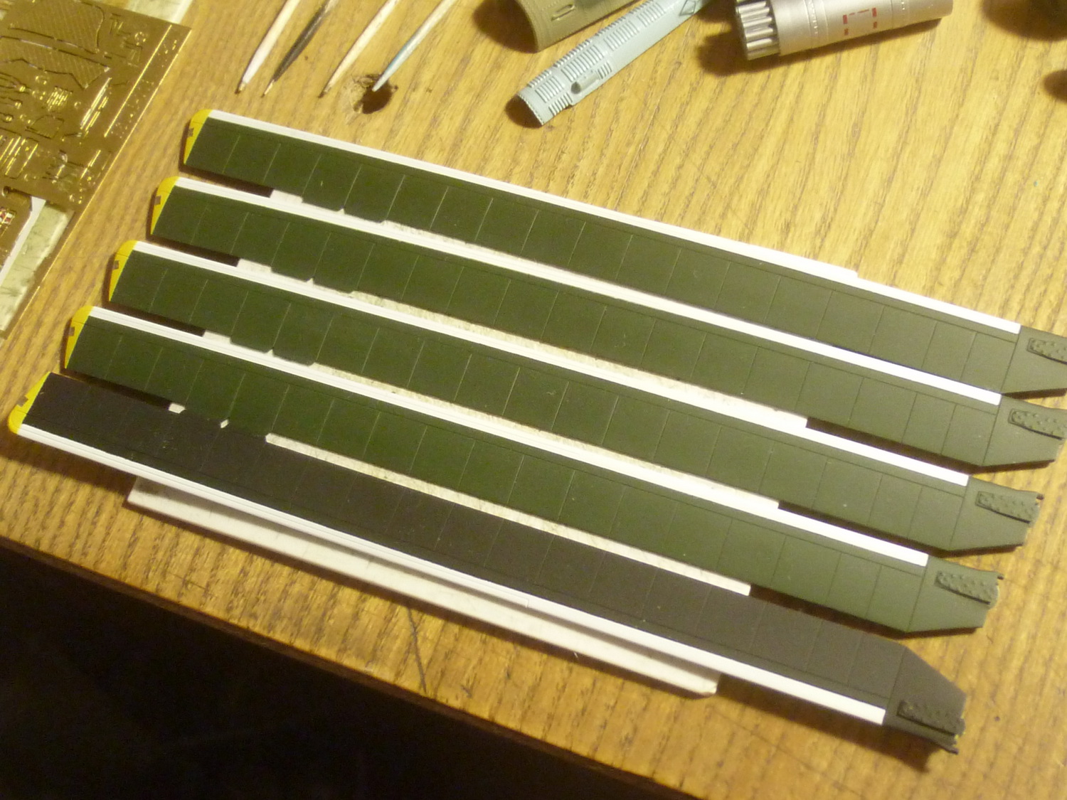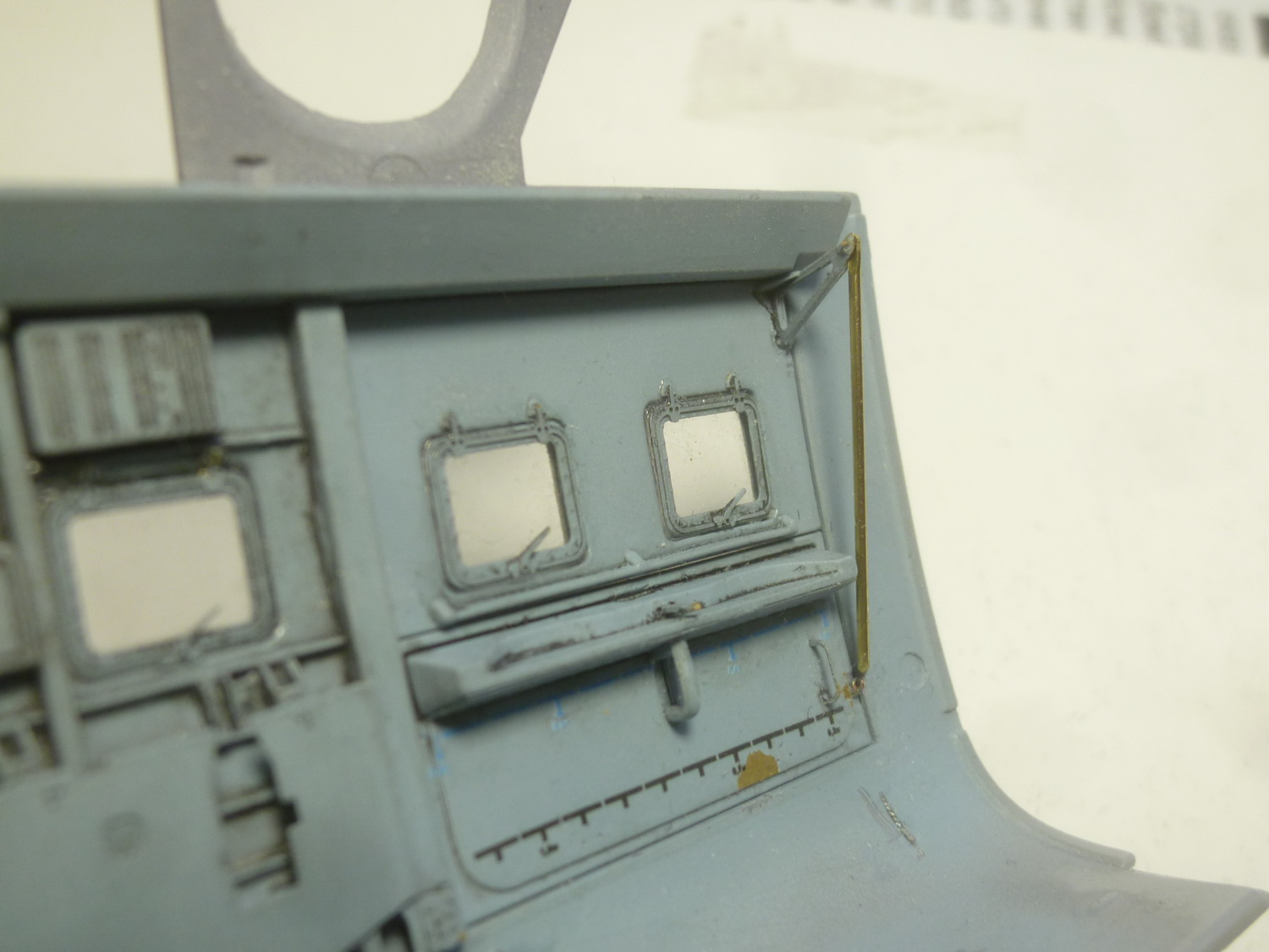 На универсальные держатели установил упоры с МД травления - армовское никуда не годится. После "чумазинга" добавлю болты.