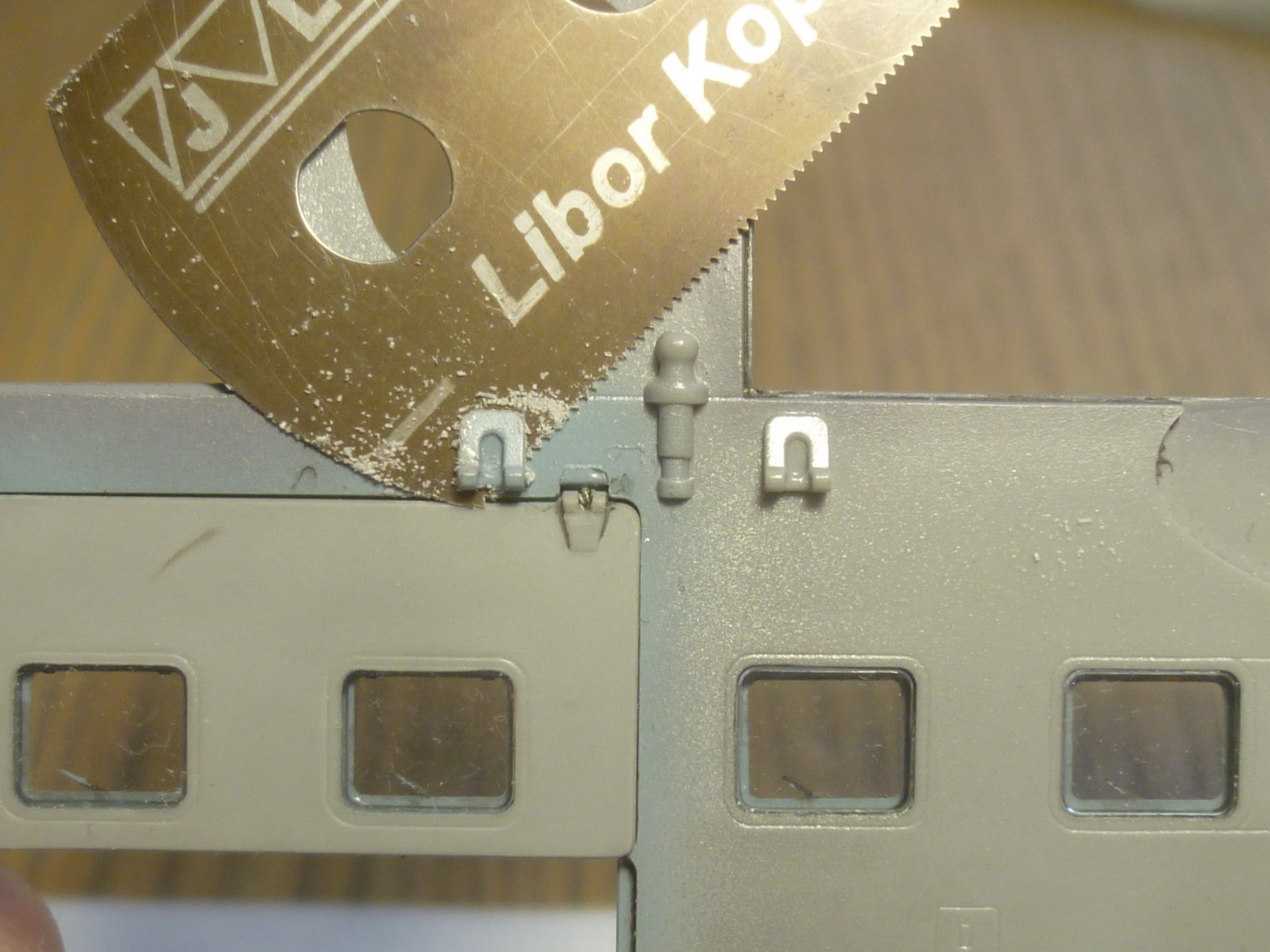 На редуктор надо ещё приклеить несколько деталей, но перед этим придётся их укоротить вдвое - крышки не закроются...
