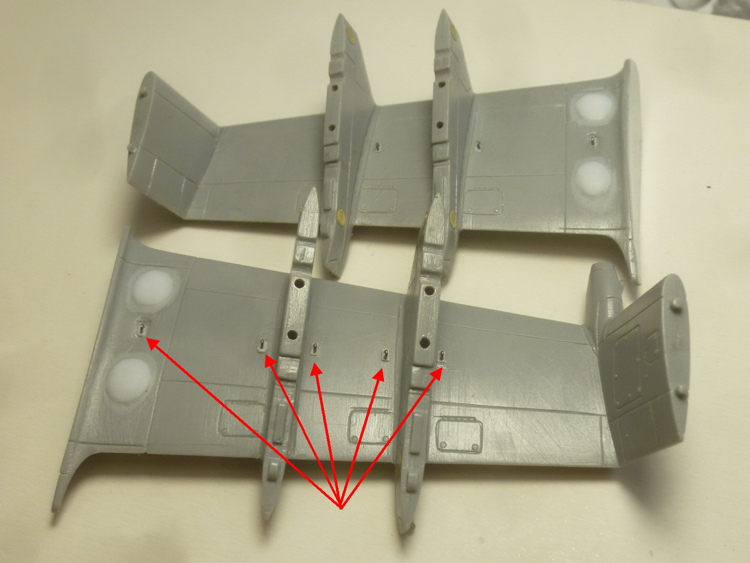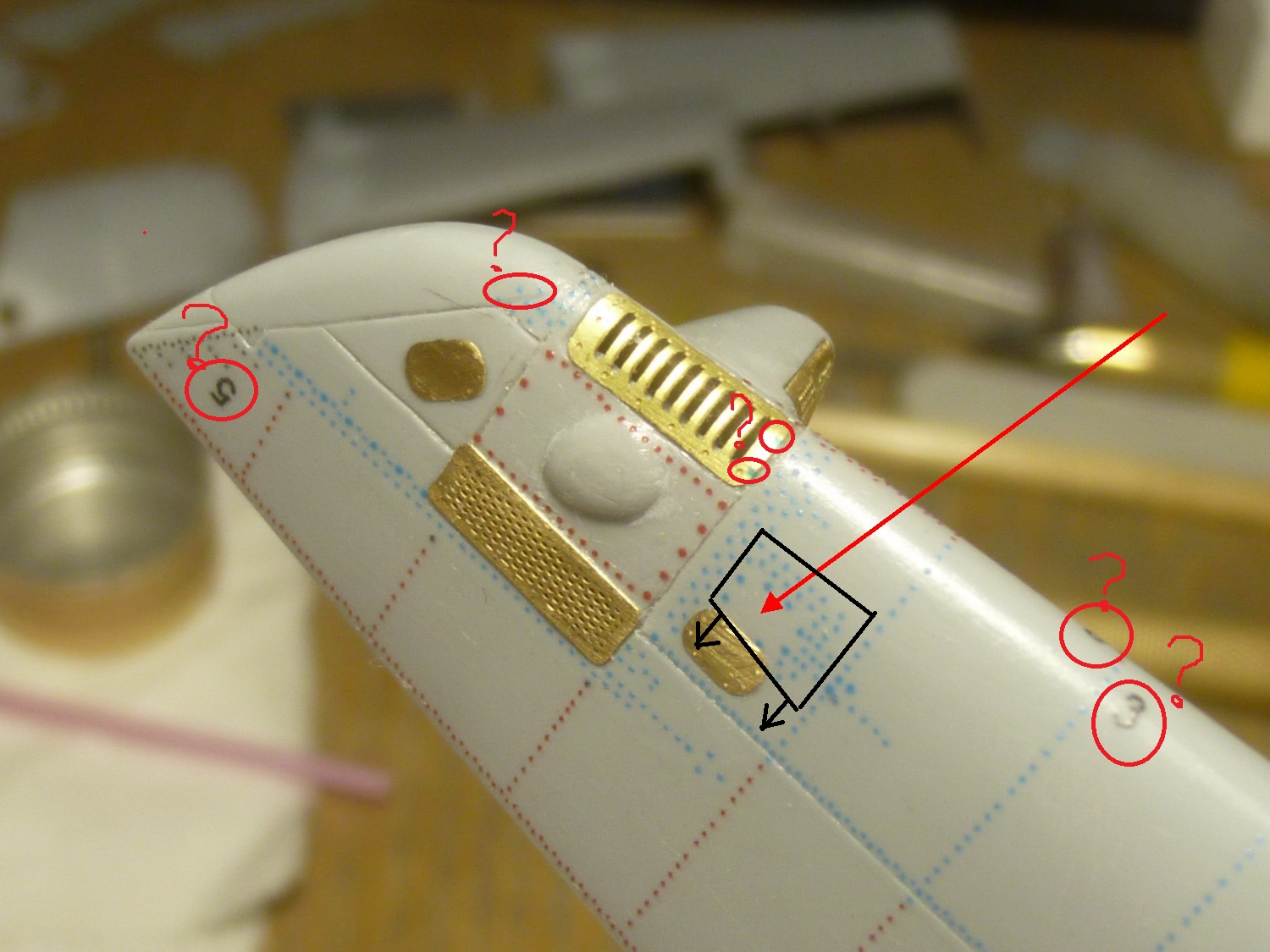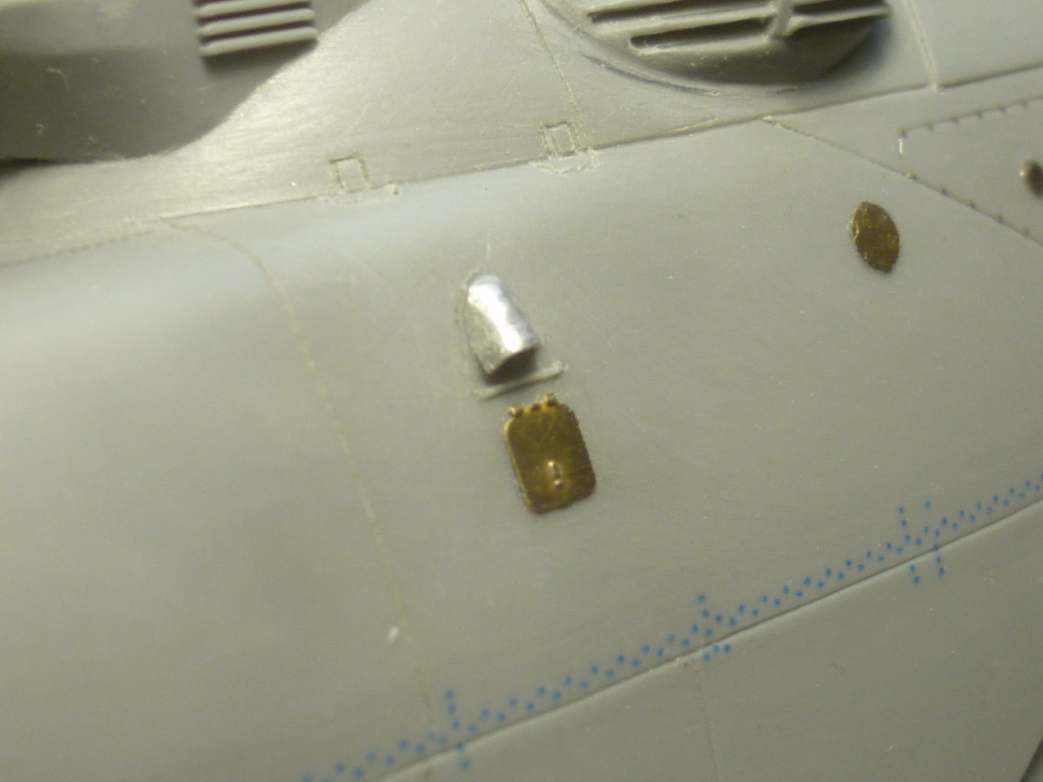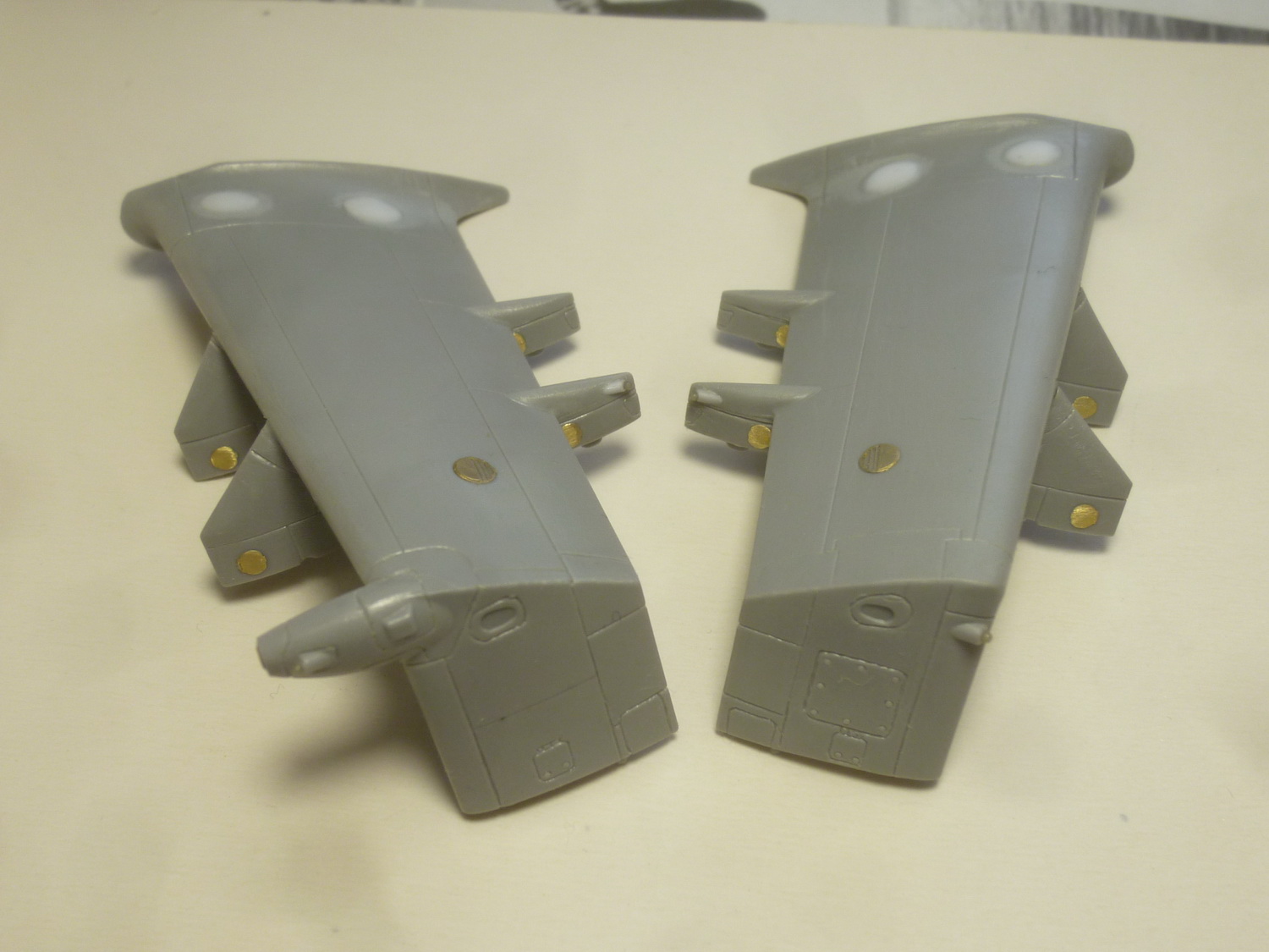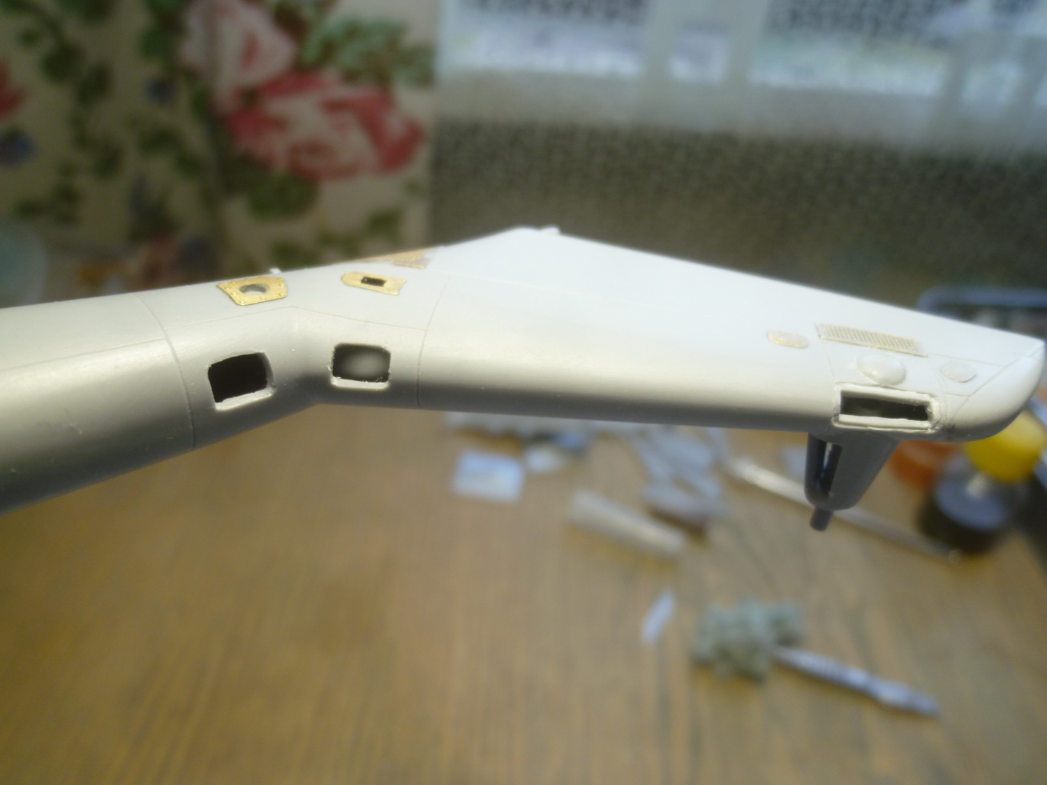 Доделаны крылышки - исправлена расшивка, добавлены кронштейны крепления лебёдок, недостающие обтекатели СПО. НА фюзеляже сделаны три ВЗ из алюминиевой фольги.