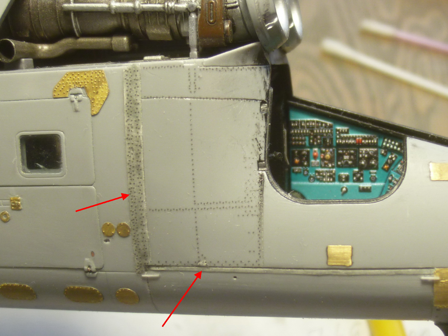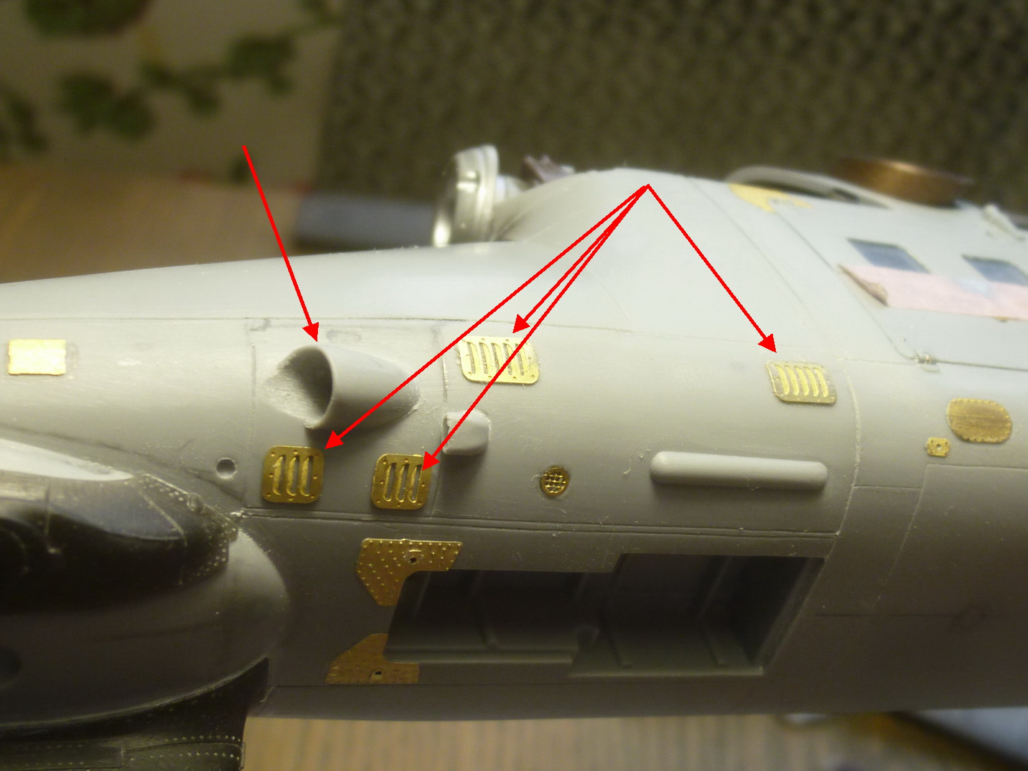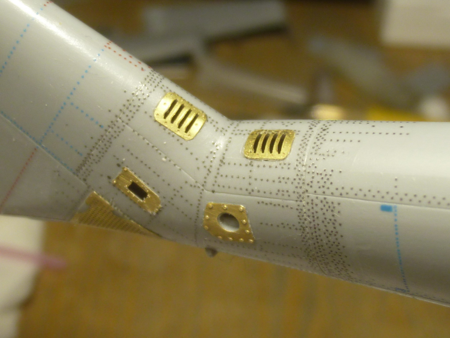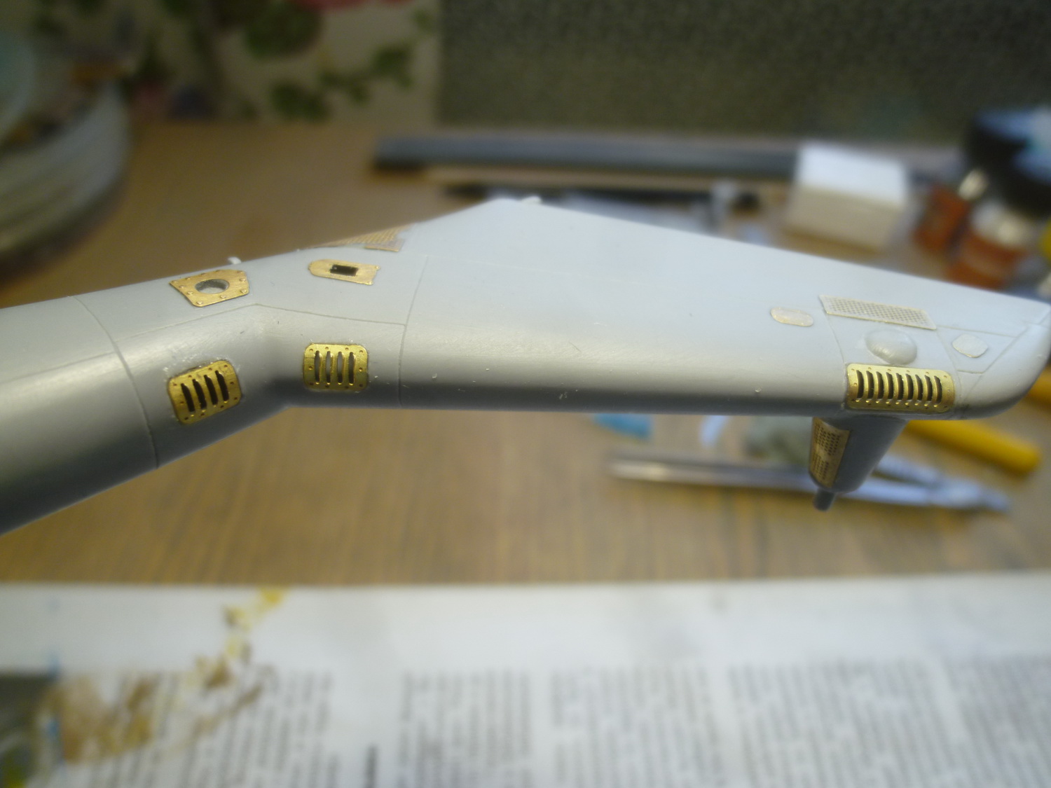 Аналогичные операции предстоит ещё провести с решётками на киле и хвостовой балке. МД сделала их методом полутравления, поэтому и получились они толстыми.