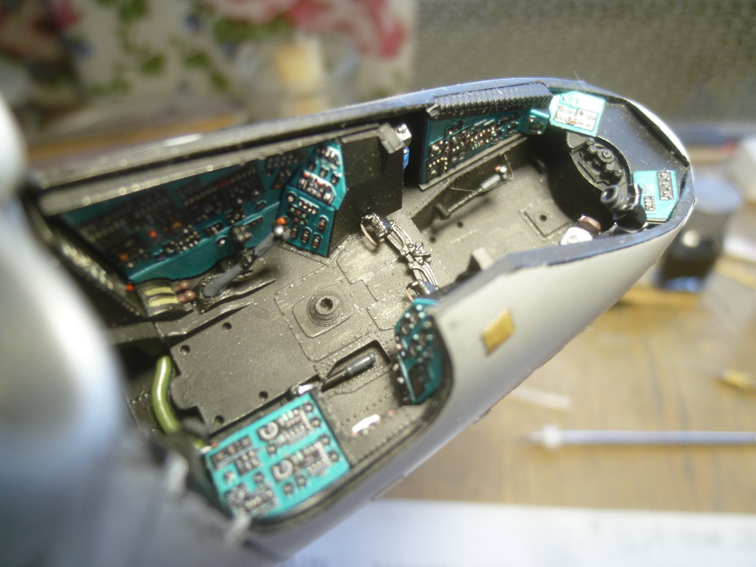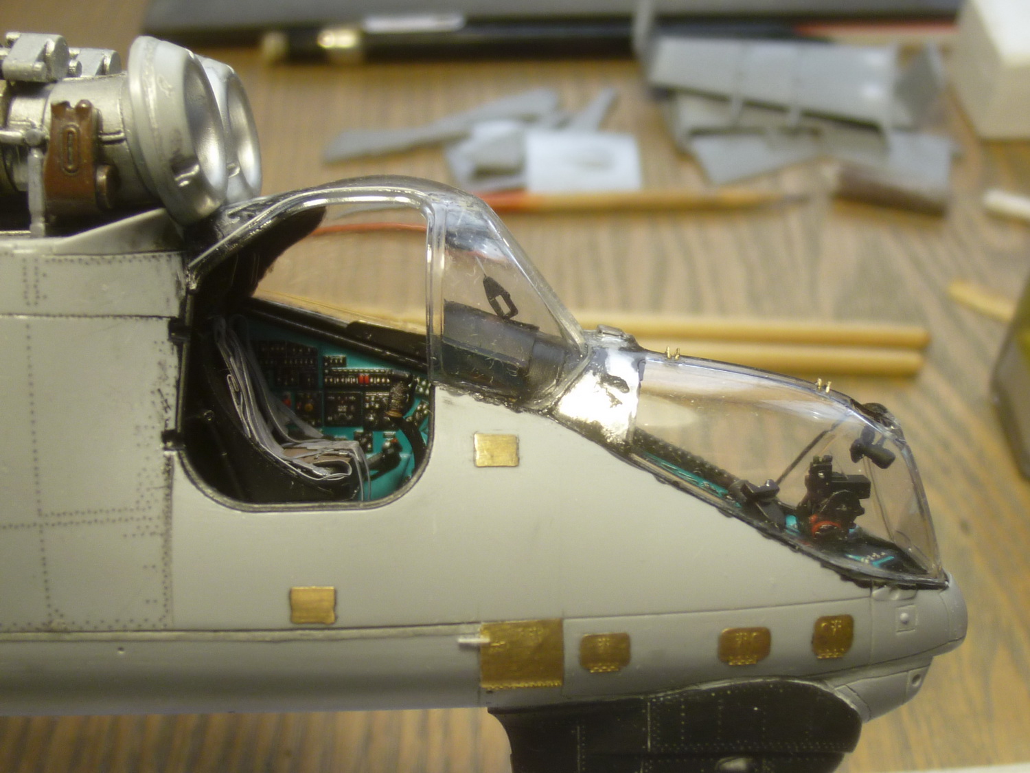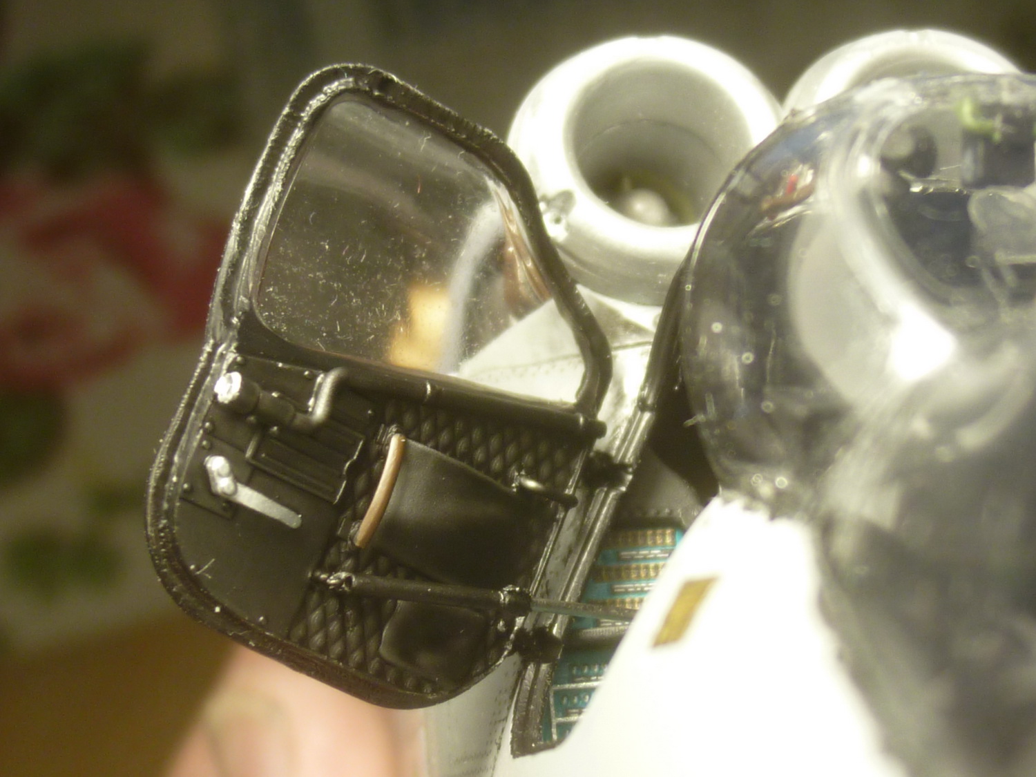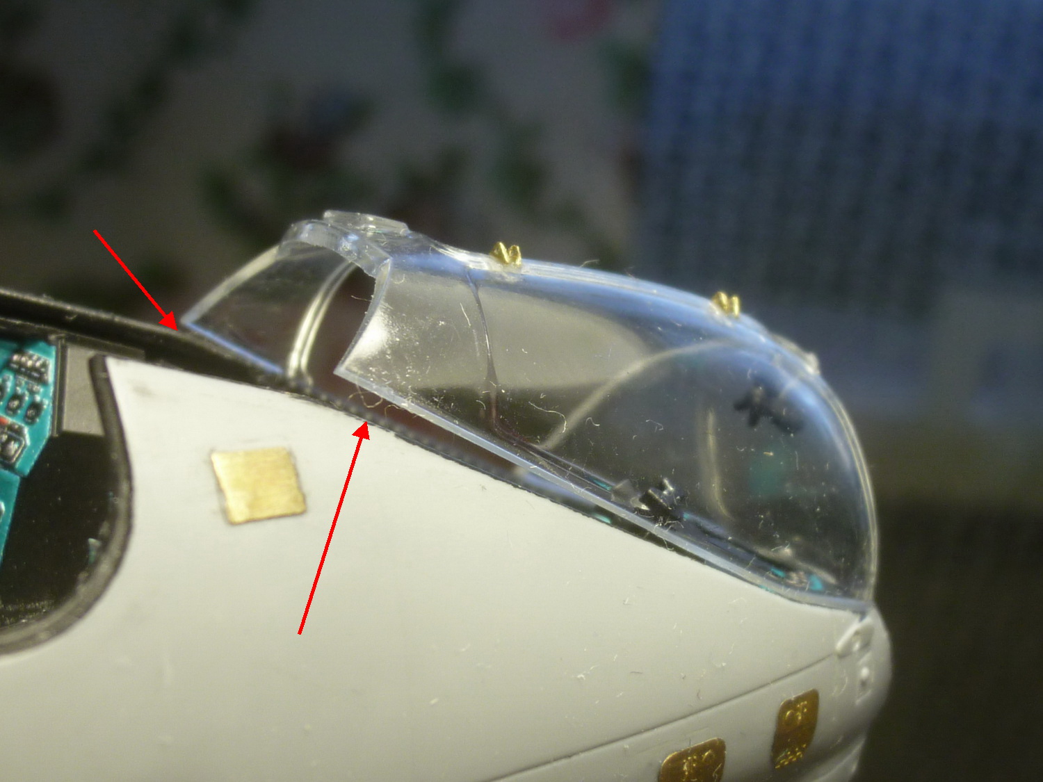Некоторые проблемы возникли при повторной примерке остекления. Пилотский колпак вполне нормально садится на своё место, а вот передний оператора "с сюрпризом" - надо подгонять по новой посадочное место, иначе крышка фонаря перестанет закрываться...
