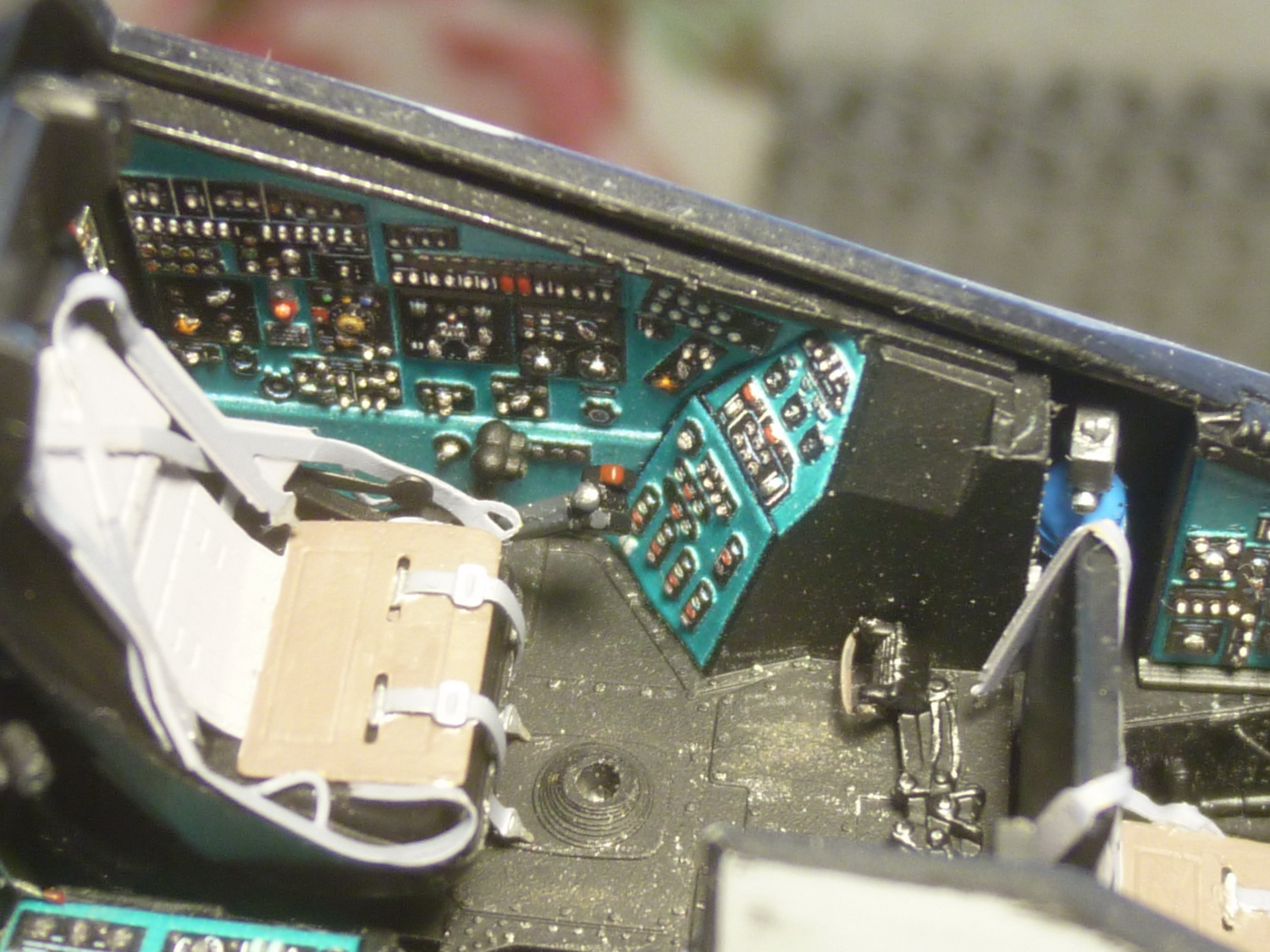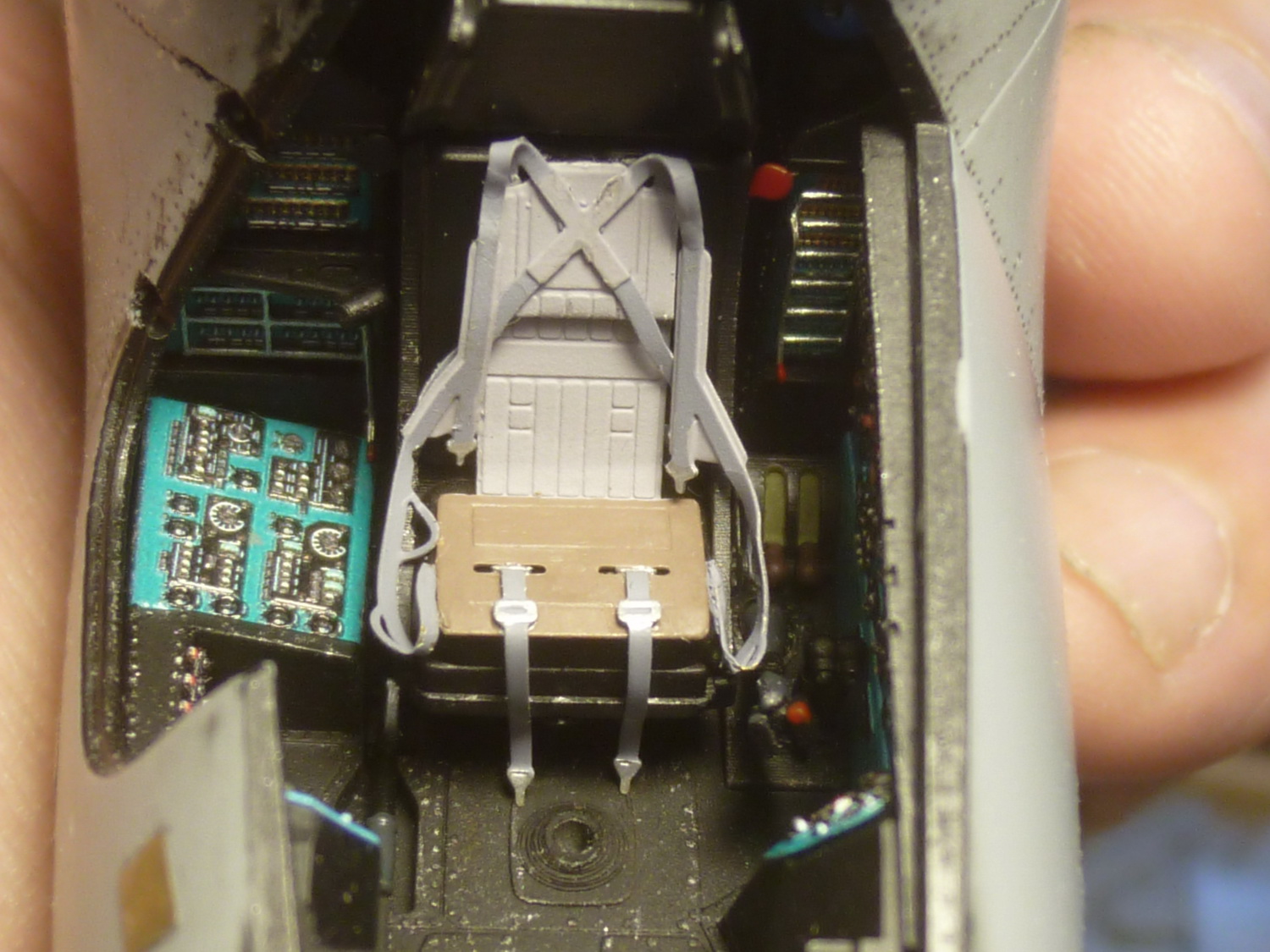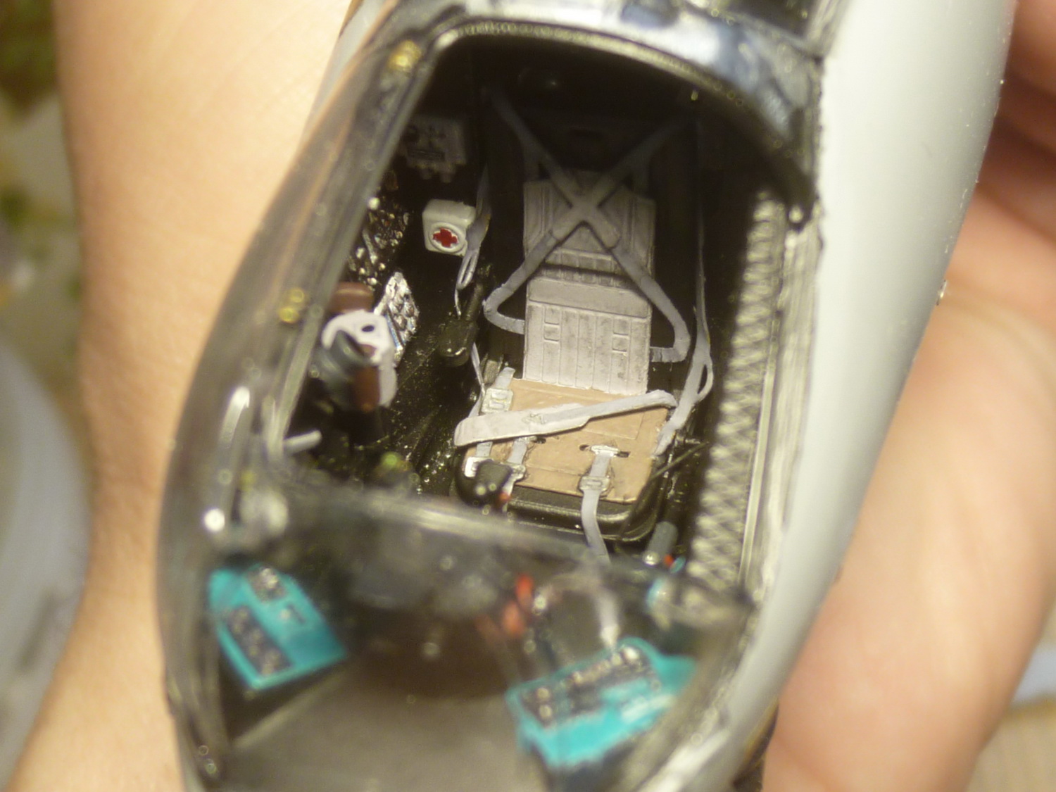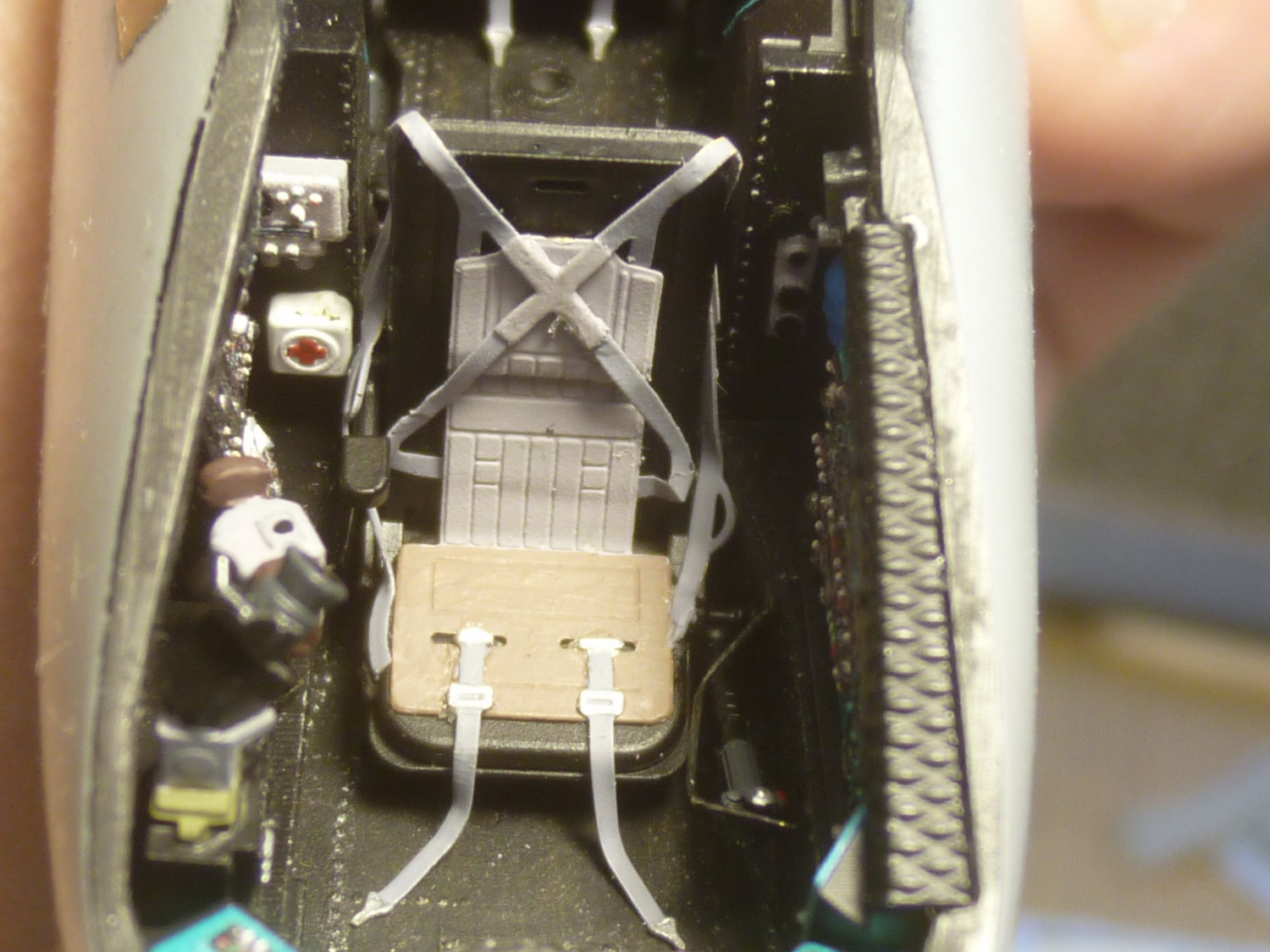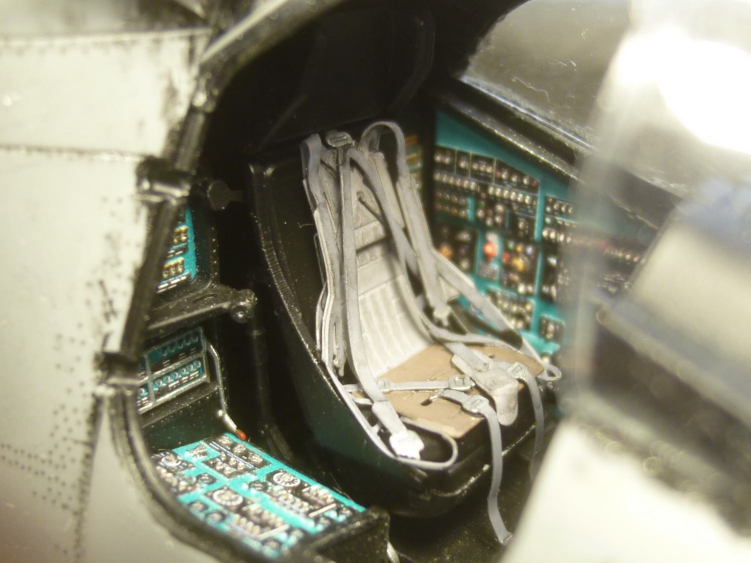 Еле-еле прошёлся карандашом по заклёпкам на полу и стенках, чуть-чуть "натоптал" и поставил сиденья - ремни пока ещё не все...