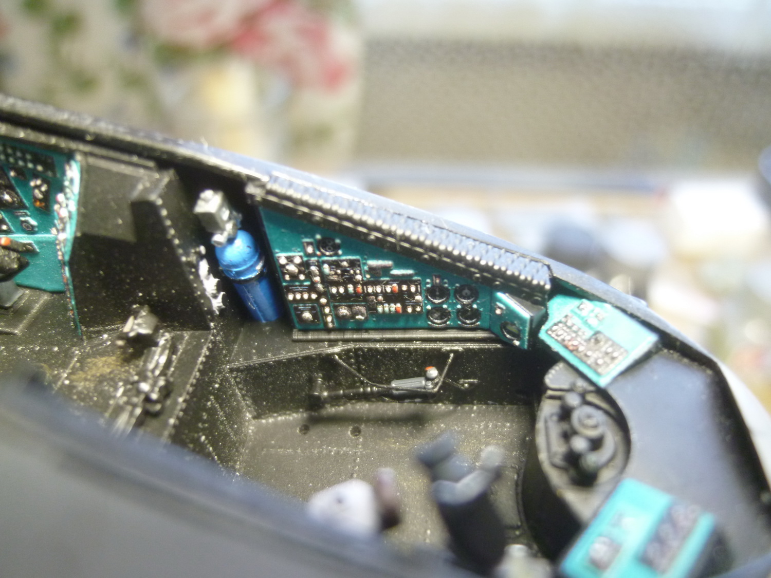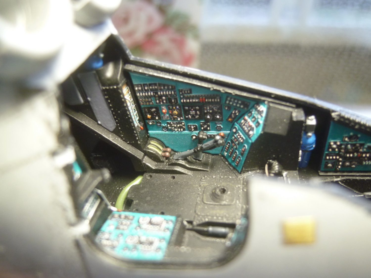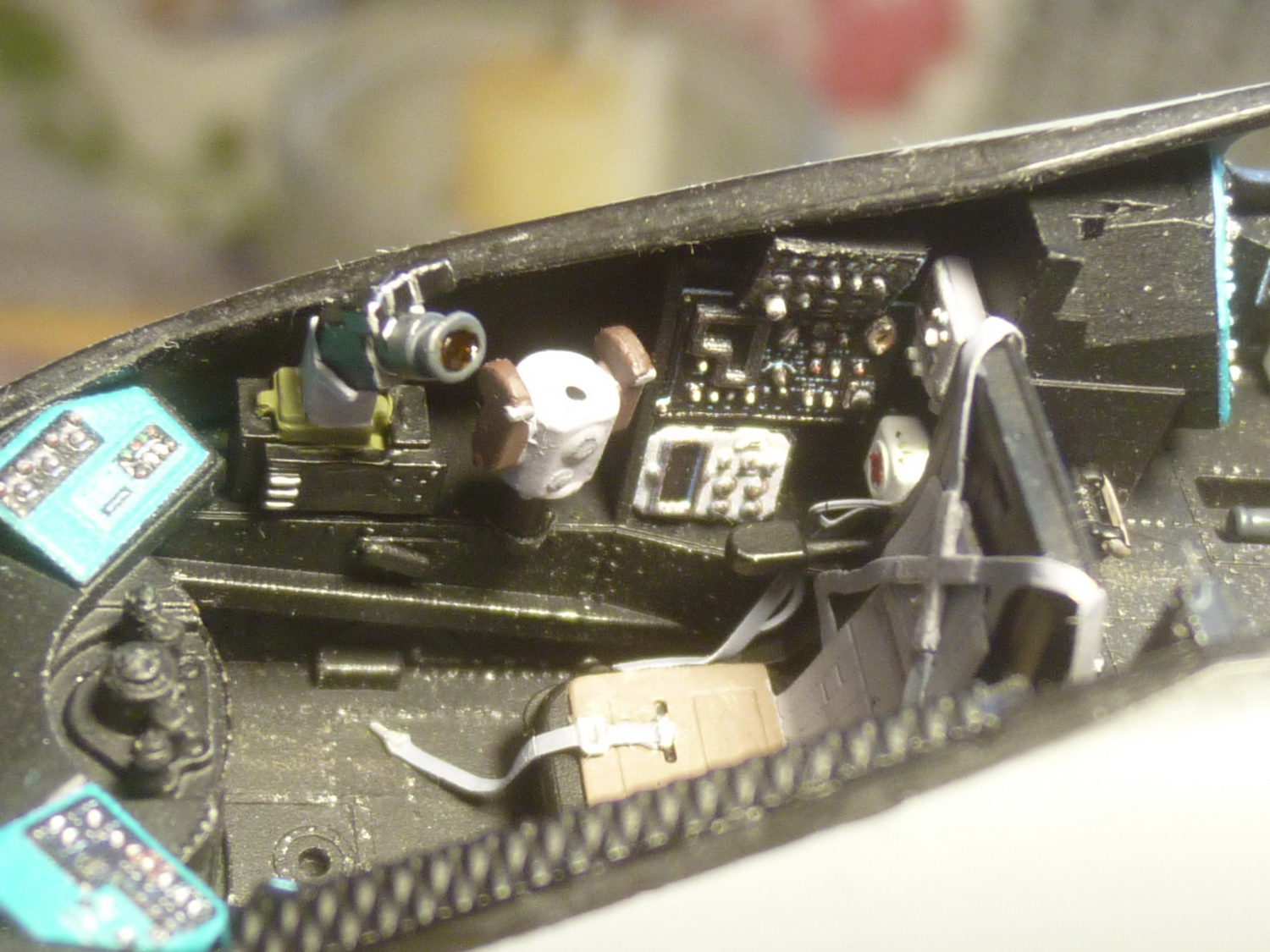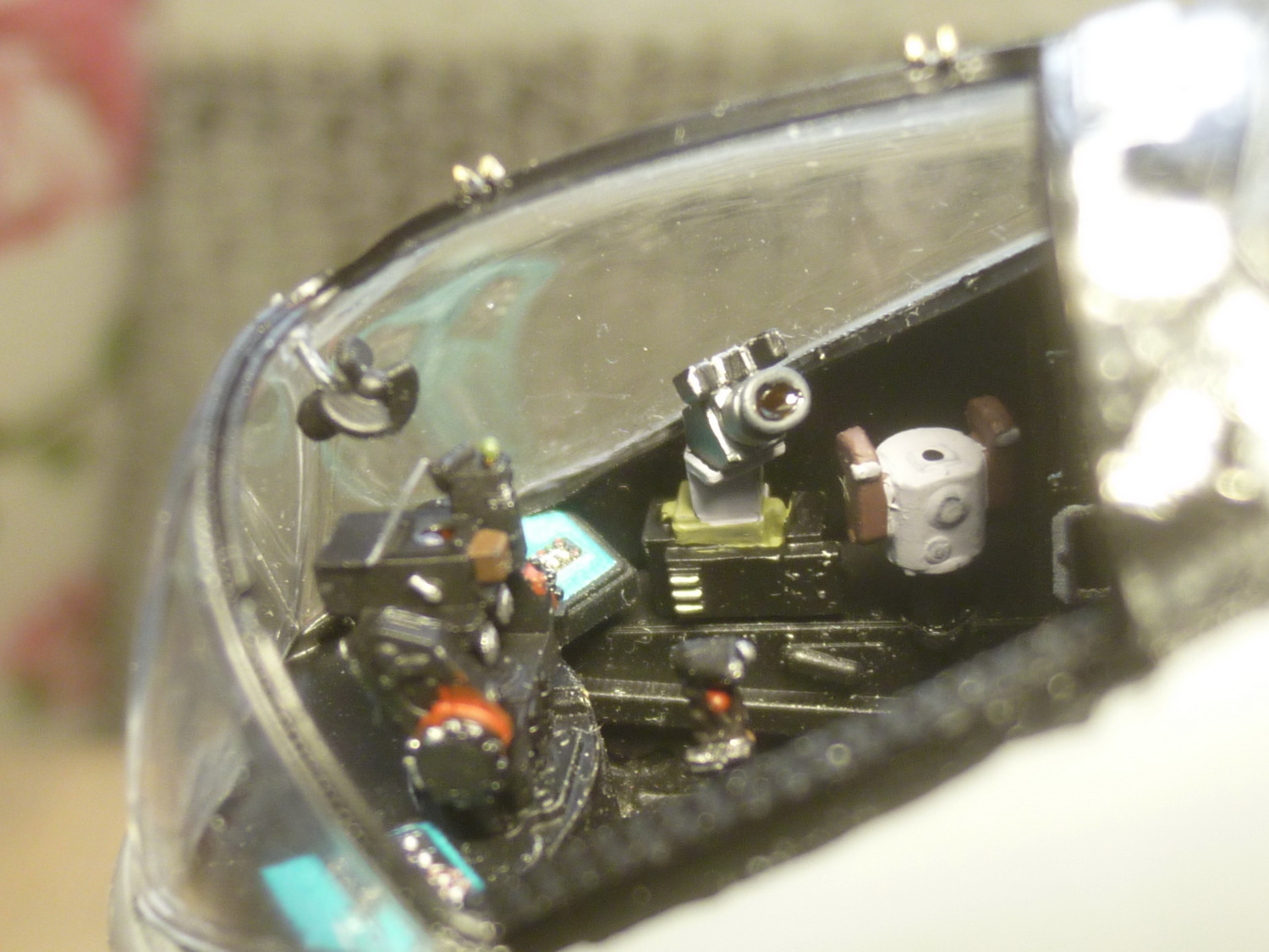 Установил в кабины необходимые рычаги - шаг-газ, управления двигателями и тормоз НВ. В передней поставил кислородный баллон и панель управления вооружением.