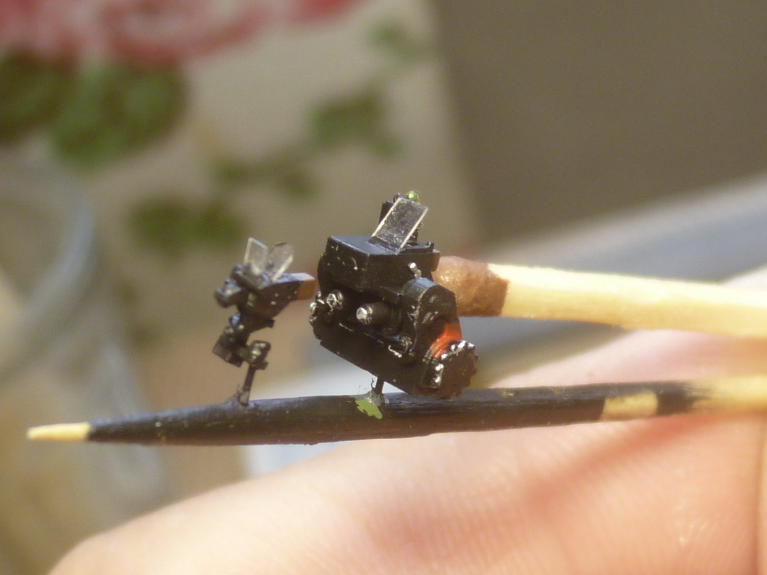 Но перед приклеиванием собрал прицелы. Чехи для модификации "Д" делают маленький и я не знаю, как он называется, а Рэскит делает АСП-53 для "В". Они у меня на штырьках и я могу с легкостью поменять их местами - пока поставил большой (не видно на фото прототипа, какой там стоит...) А маленький оставлю для "П" - углядел, где он там есть!
