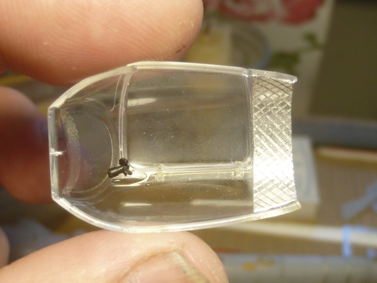 Помучился, но подогнал посадочное место под переднюю половинку фонаря - видимо, мне достался поведённый прозрачный литник, что и не удивительно для мягкого звездинского пластика, а полиэтиленовые стёкла - вообще, отдельная тема!!!