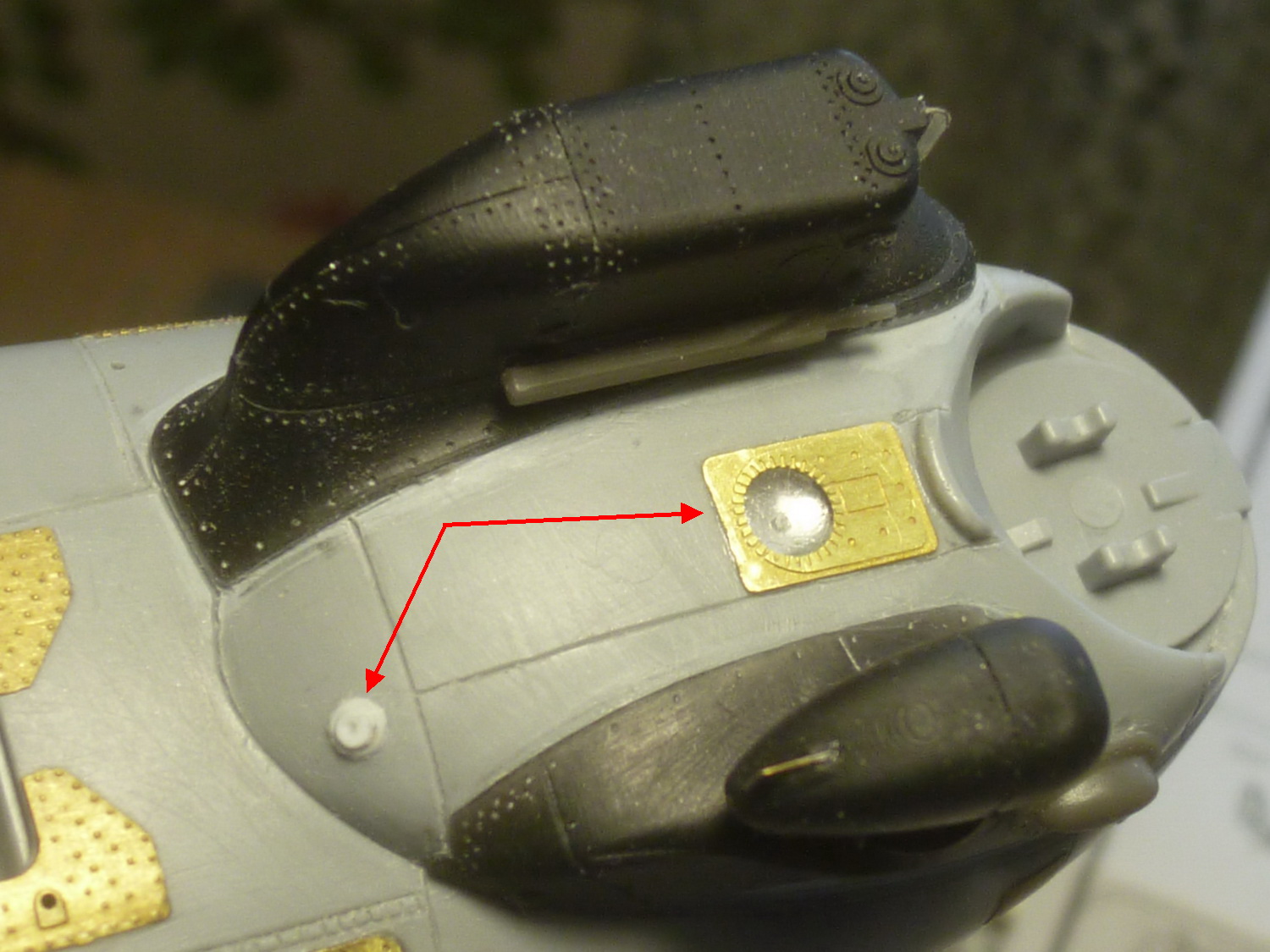 Вот она как раз на месте - это я поверил инструкции по приклеиванию травления и не проверил. А сейчас отдирать уже неохота...., пусть так останется. Всё равно (по большому счёту) это тренировка перед Ми-24П для себя.