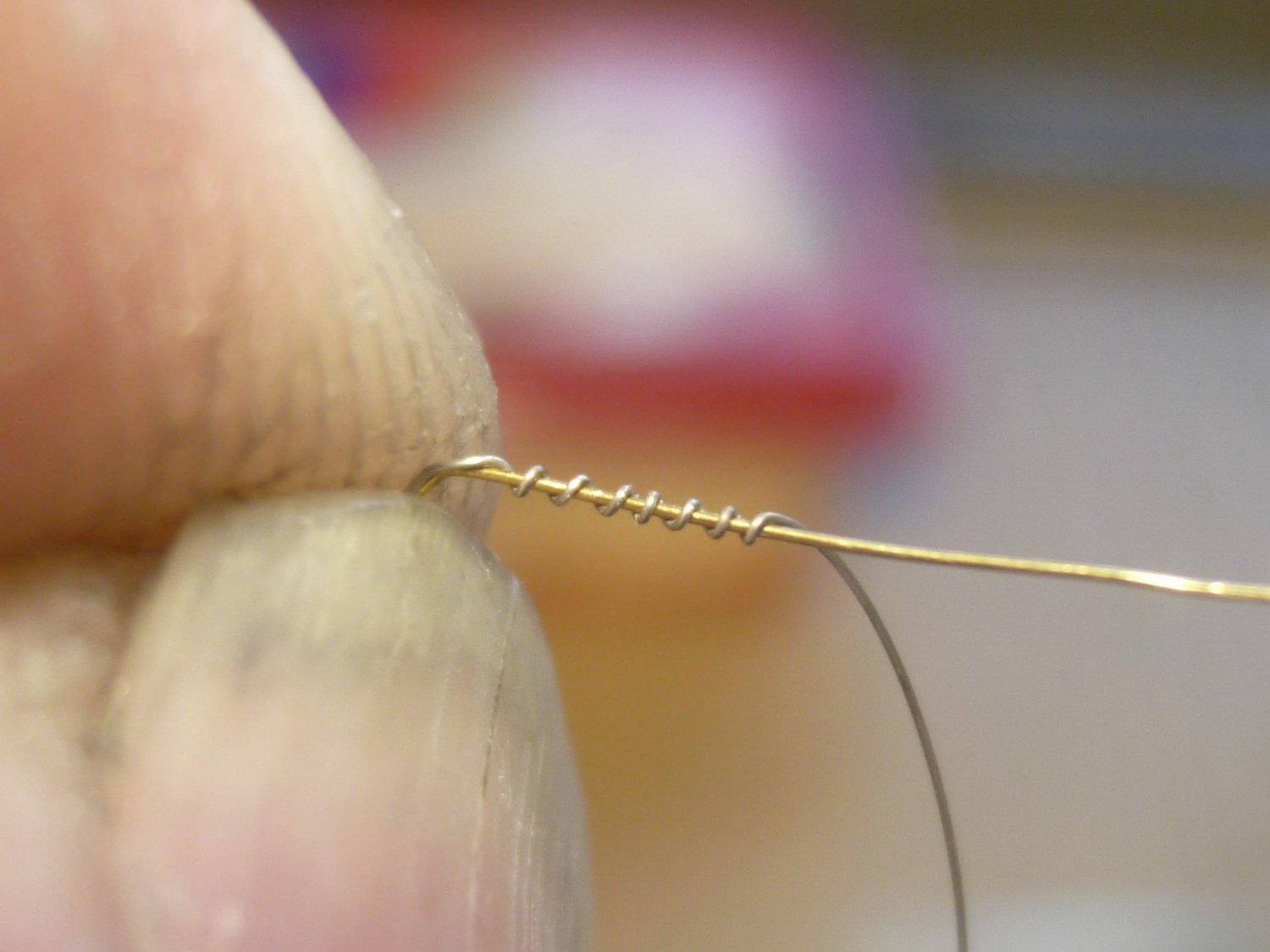 Для него использовал латунную проволоку 0,2мм, на которую намотал 0,15мм нить из распущенной косы от экрана монитора. Совсем забыл сфотографировать направляющие до покраски, чтобы нагляднее было - извините...