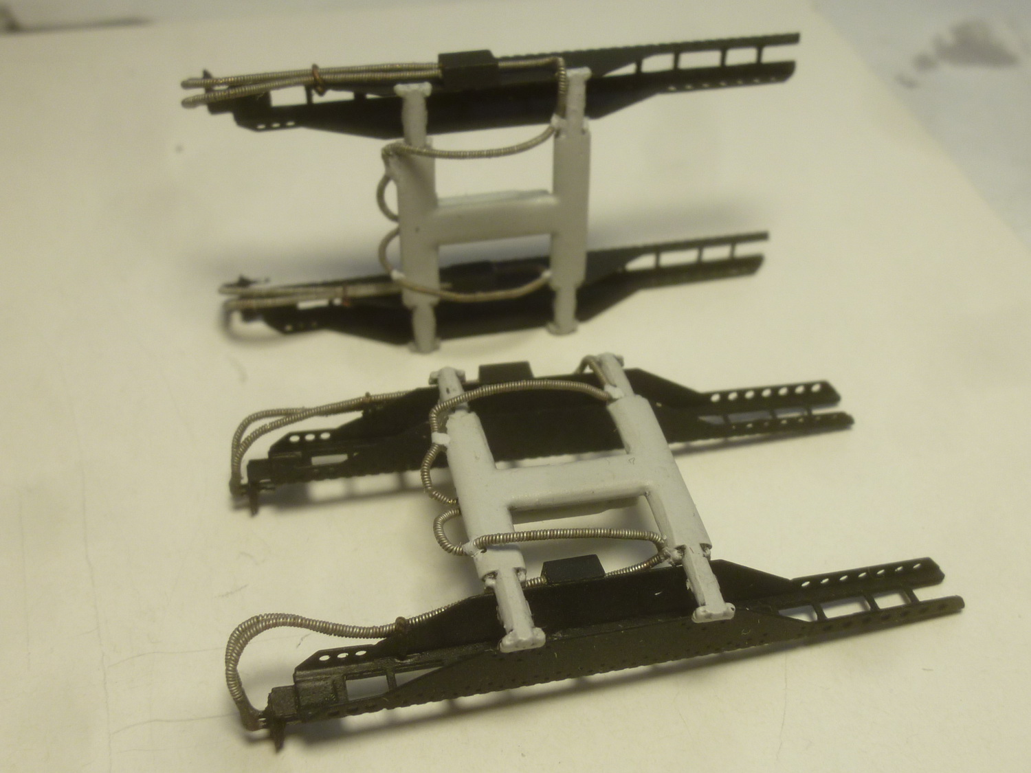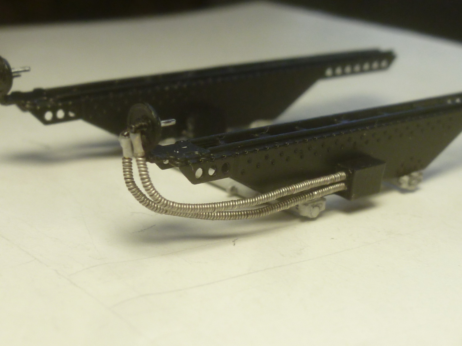 Раз уж пошла такая "пьянка" - можно было наклеить полоску доширака свернутую в кольцо на торец электроконтактов (или от литника круглого сечения отрезать тонкую шайбу и надеть на ваши электроконтакты, предварительно просверлив в этой шайбе отверстия). Провода в бронешланге прикрепить к направляющим, чтоб не болтались.