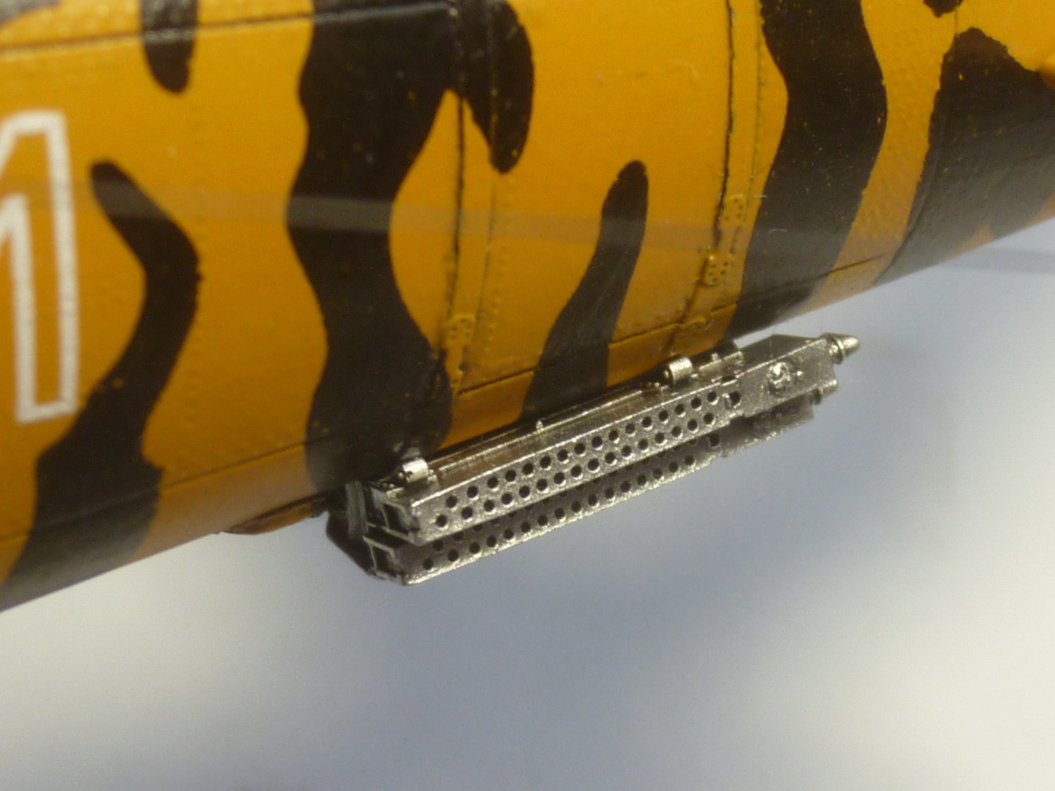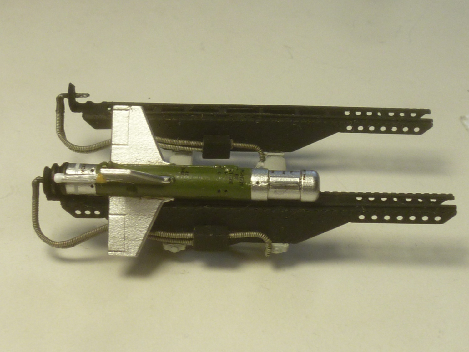 Резиновый уплотнитель сымитирован прямо на ракетах. А контакты специально сделал подлиннее, чтобы ракеты на них насаживались. Они плотненько входят в направляющие и сдвигаются назад на контакты, абсолютно как на настоящем. Провода тоже зафиксированы и не "болтаются".
