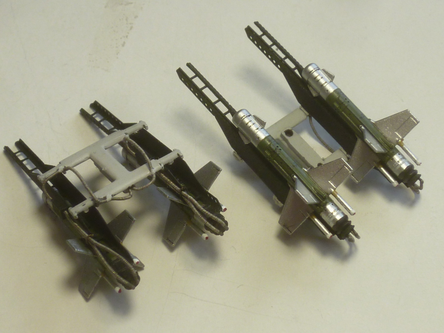 Осталось немного "приглушить" блеск на ракетах и установить их на своё место. А съёмные сделал специально - можно вместо них поставить Р-60!!! Есть у меня такая фотка.