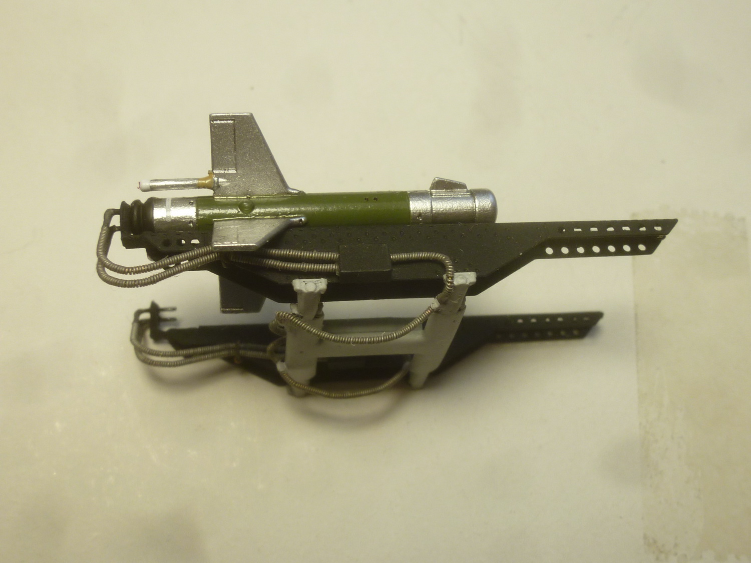Занялся "Фалангами". Для этого был прикуплен соответствующий дополнительный набор от Эдика. Доработал направляющие фермы для ракет установкой рельс (про которые чехи забыли), в упор под ракеты вклеены электроконтакты и сделан экранированный шнур - всяко разно лучше чем из травлёнки!