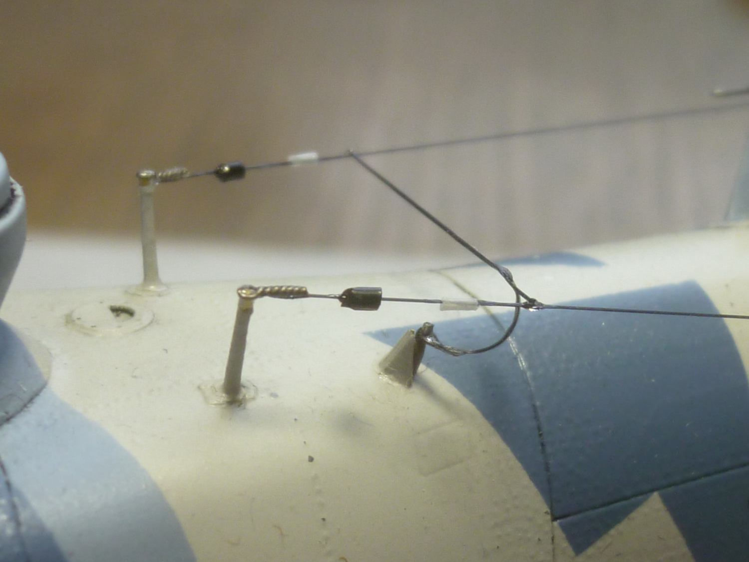 Потом сделал стойки под тросовую антенну на нижней части фюзеля - в основании они имеют утолщение.