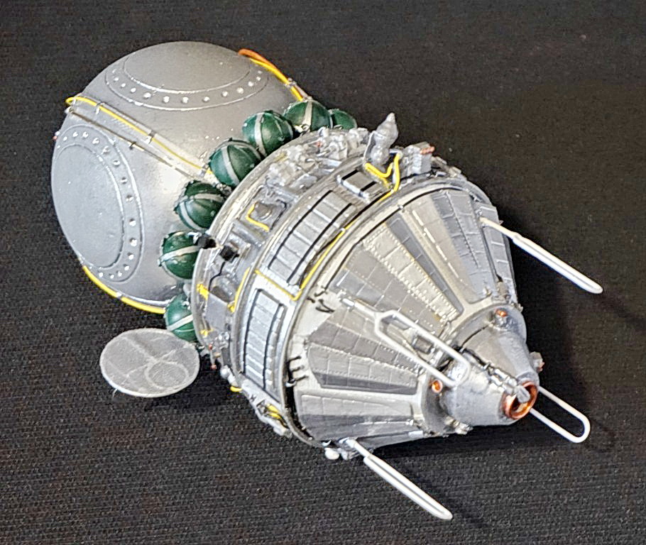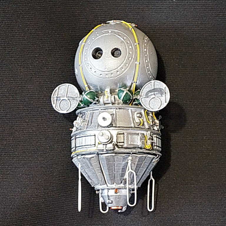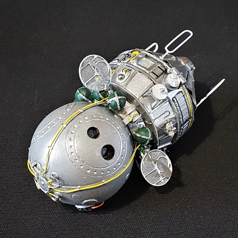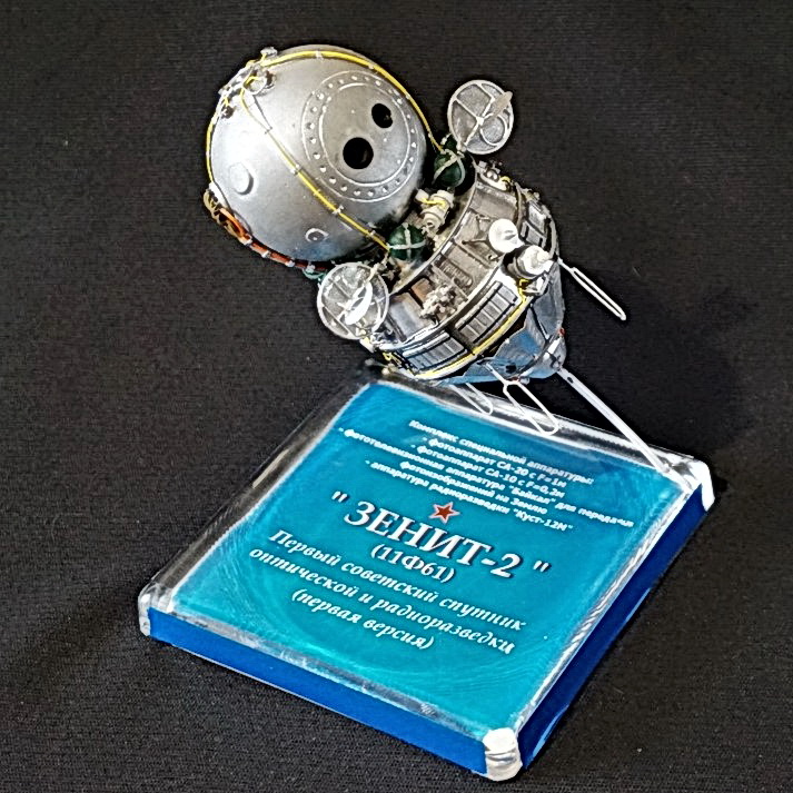 Спутники фото и радиоразведки "Восток-2" (позднее переименован в Зенит-2" проектировались на одной базе с кораблем "Восток-1" (простейший, для испытаний) и "Восток-3" (пилотируемый вариант) и отличался от них цилиндрической вставкой в ПАО, а также составом оборудования. Модель выполнена "с нуля" в М1/35 с использованием деталей корпуса, изготовленных по 3Д-технологии по моим эскизам, элементов обвеса экстерьера корпуса из набора "Восток-1" от "Red Iron", самодельных деталей из подручных материалов. Все информационные материалы по конструкции корабля, использованные в работе над моделью, почерпнуты из свободного доступа в Интернете.