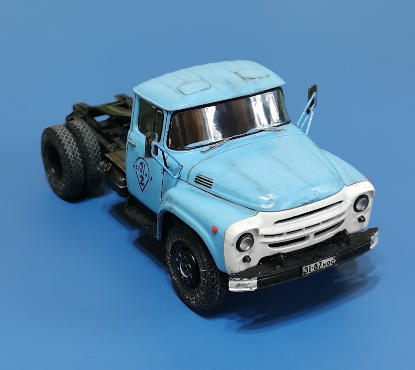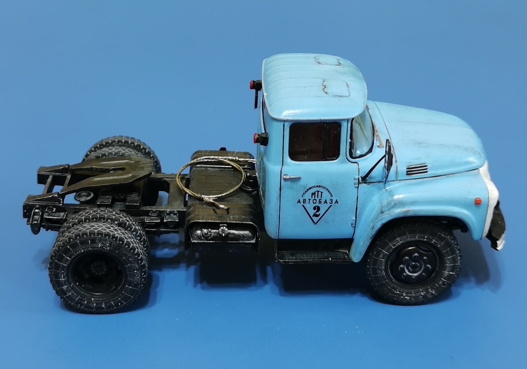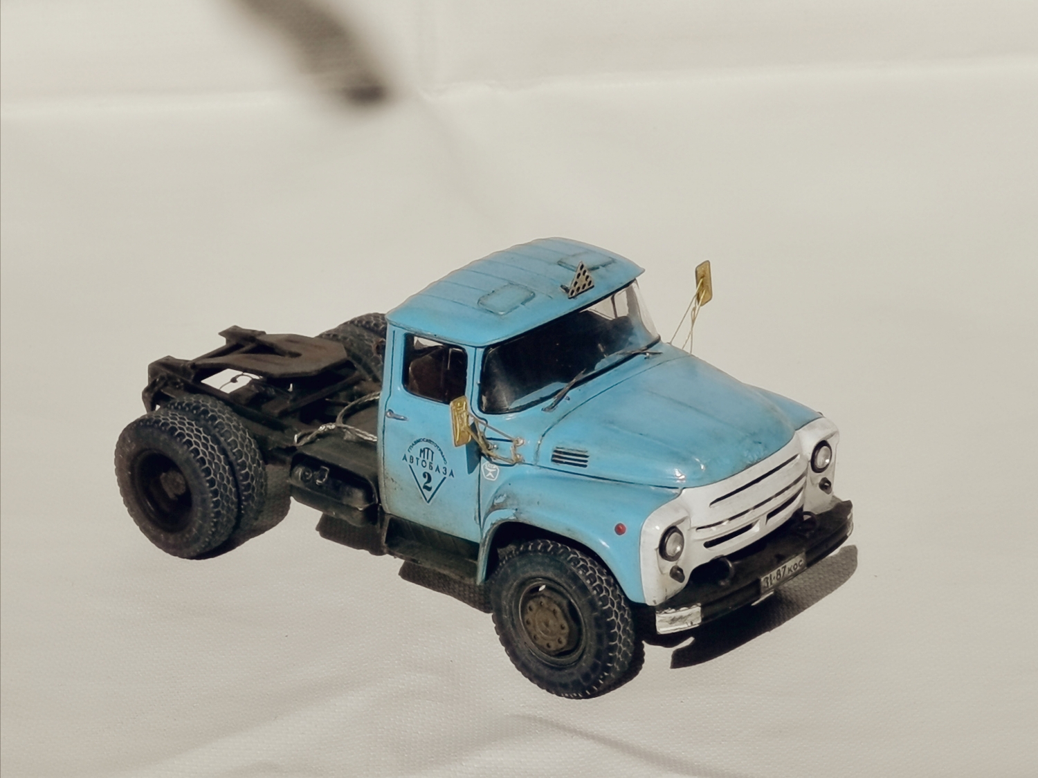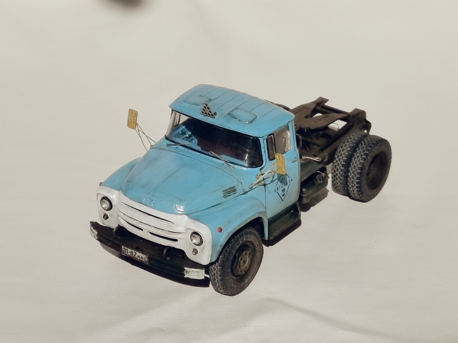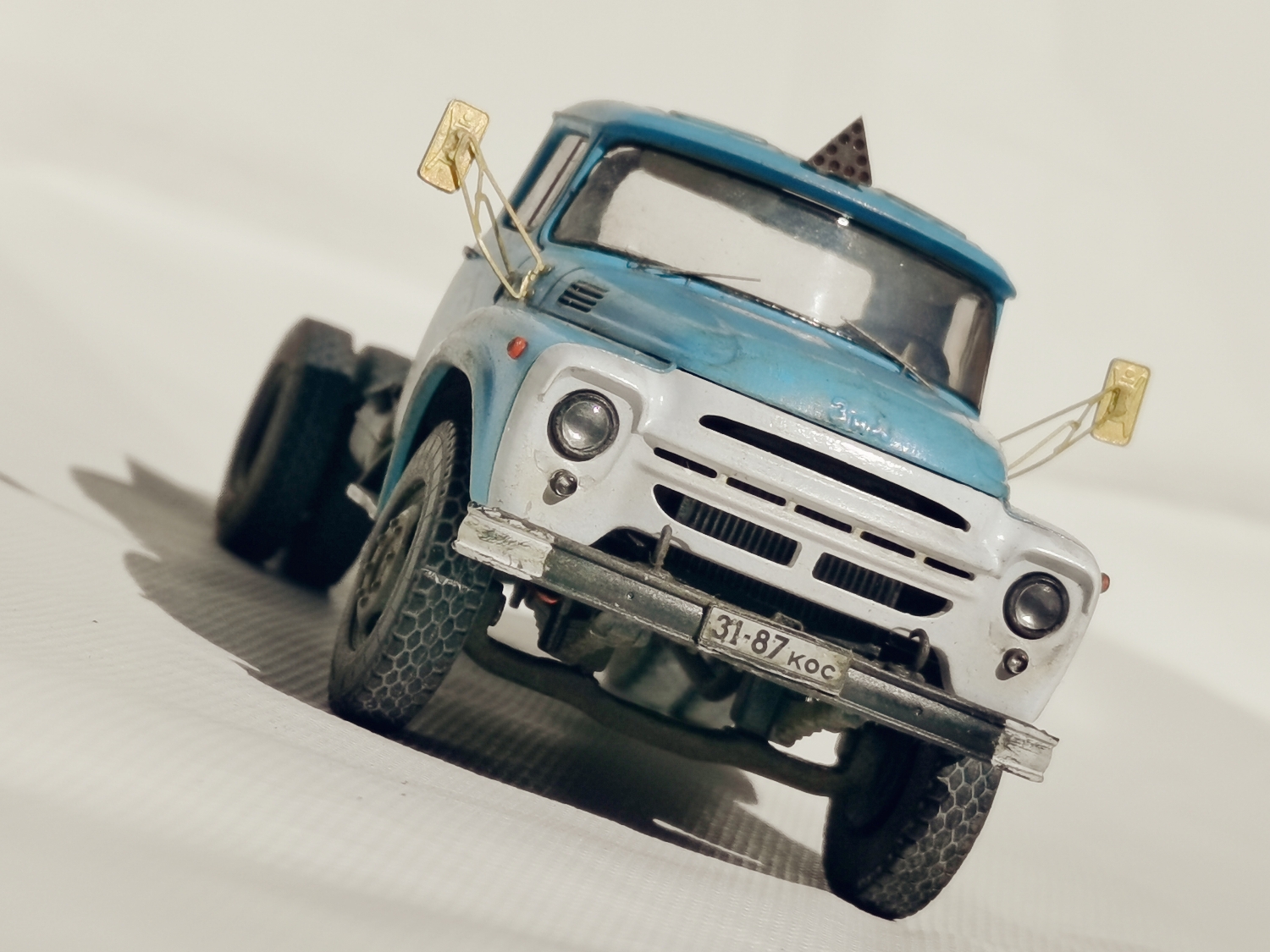 Дорогие Друзья. Представляю модель ЗИЛ-130В1 AVD 1/43. Долго думал, как завершить работу и доработку и пришёл к выводу, что думать долго нестоит. Первоначальная мысль является правильной. Работал кистью, акрил от Tamiya. Масляные краски+растворитель для маслянных красок (смывка). Медная проволока(трос)