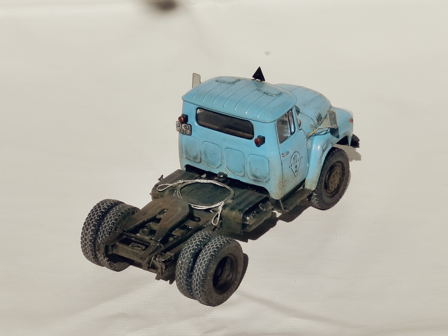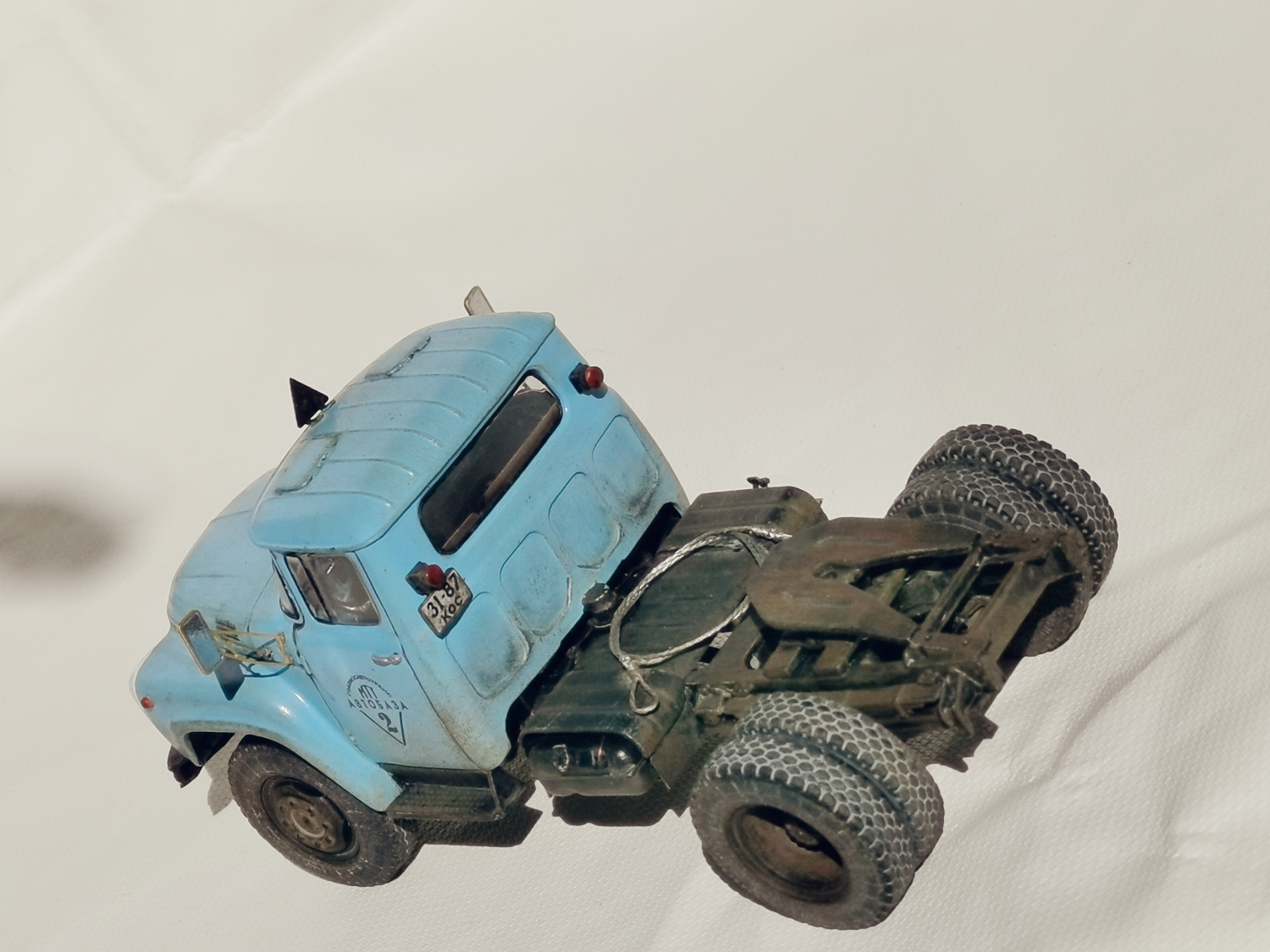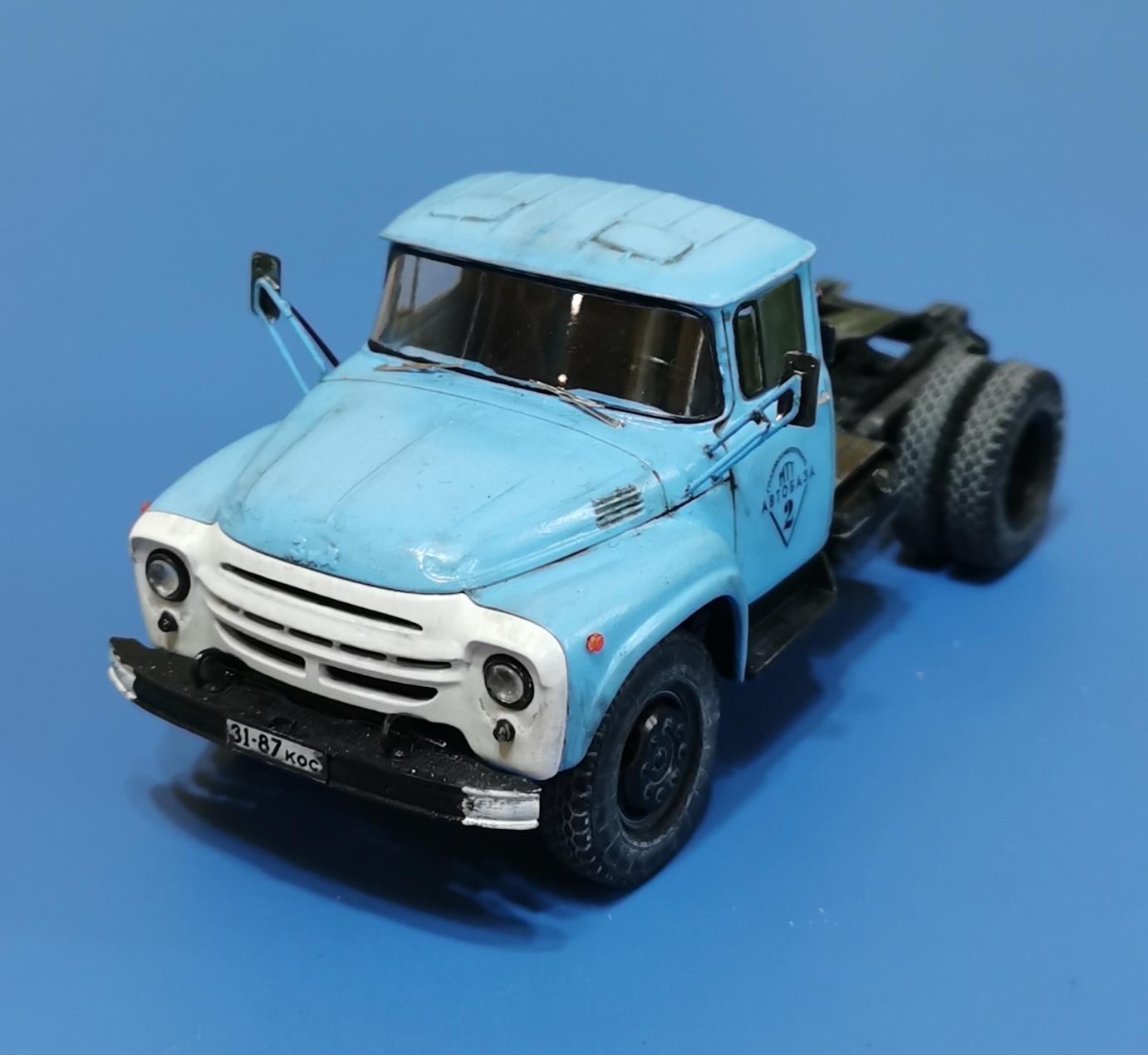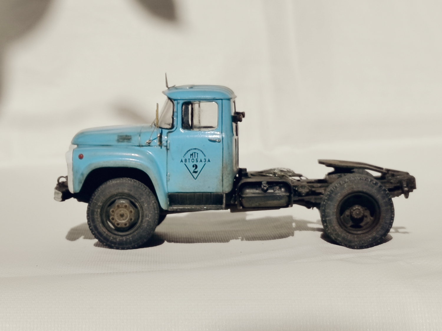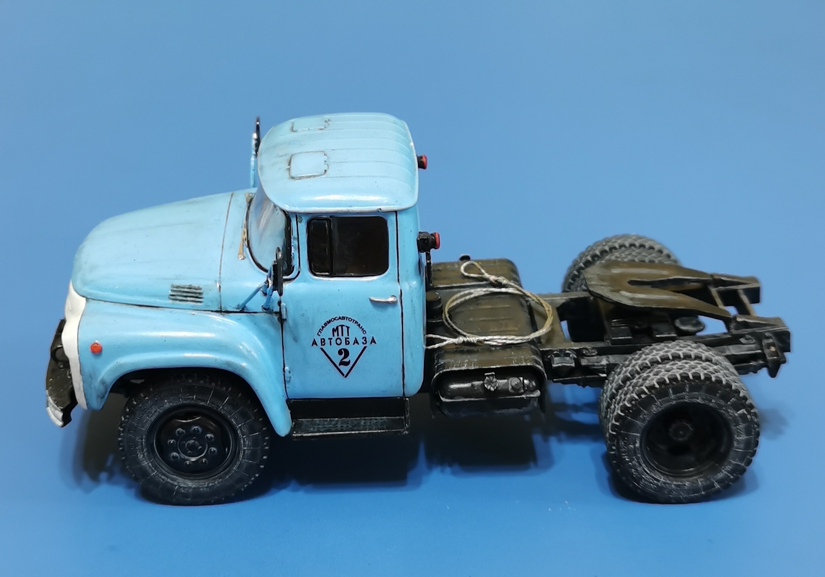 Дорогие Друзья. Представляю модель ЗИЛ-130В1 AVD 1/43. Долго думал, как завершить работу и доработку и пришёл к выводу, что думать долго нестоит. Первоначальная мысль является правильной. Работал кистью, акрил от Tamiya. Масляные краски+растворитель для маслянных красок (смывка). Медная проволока(трос)