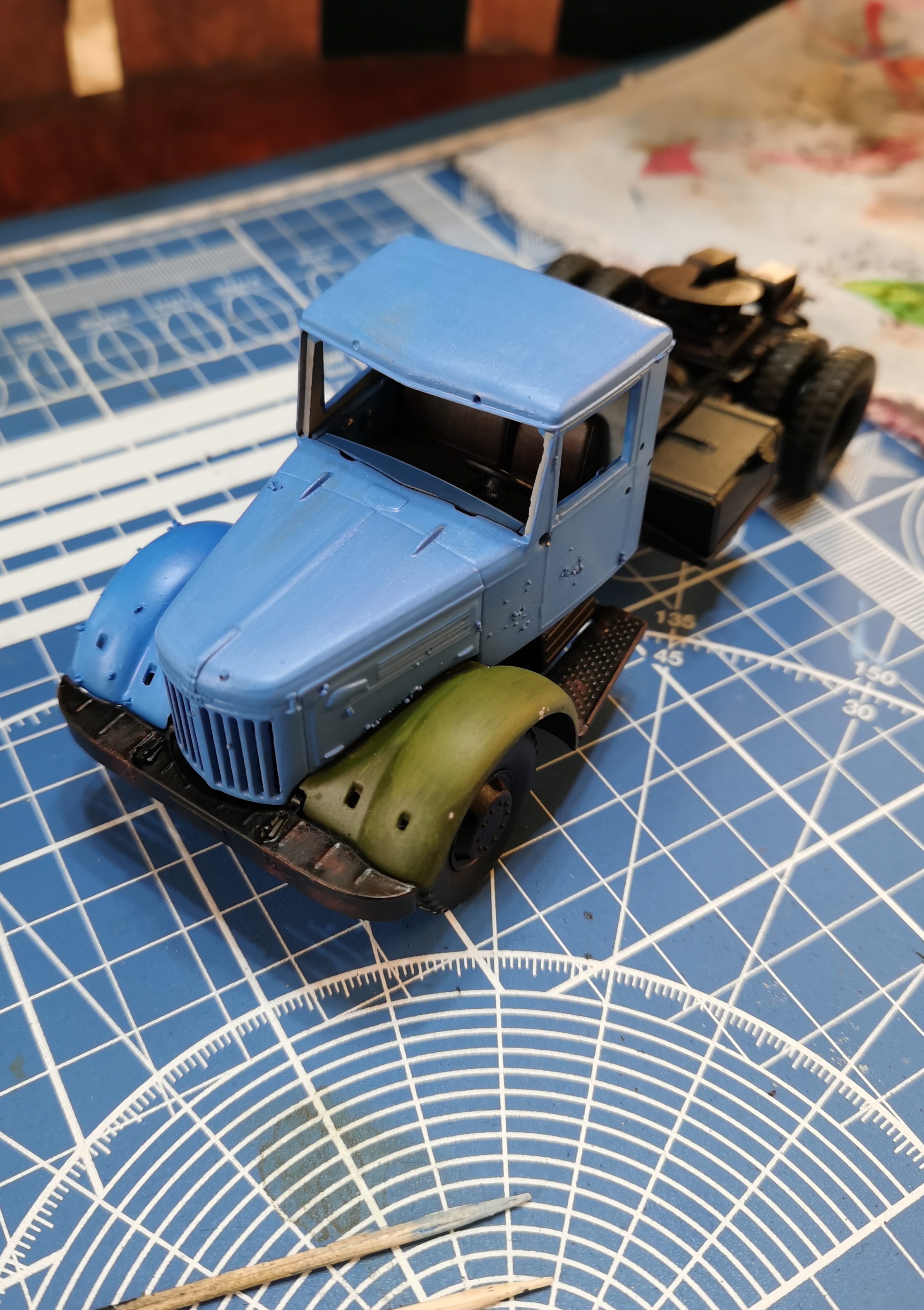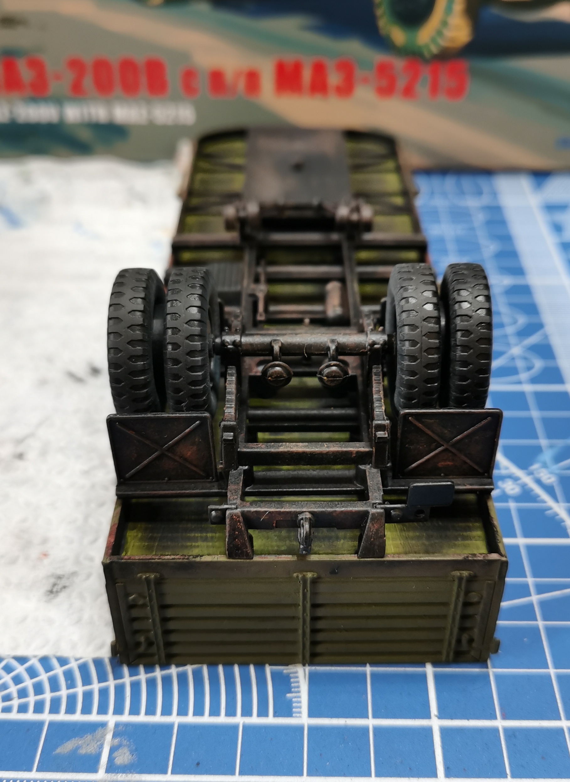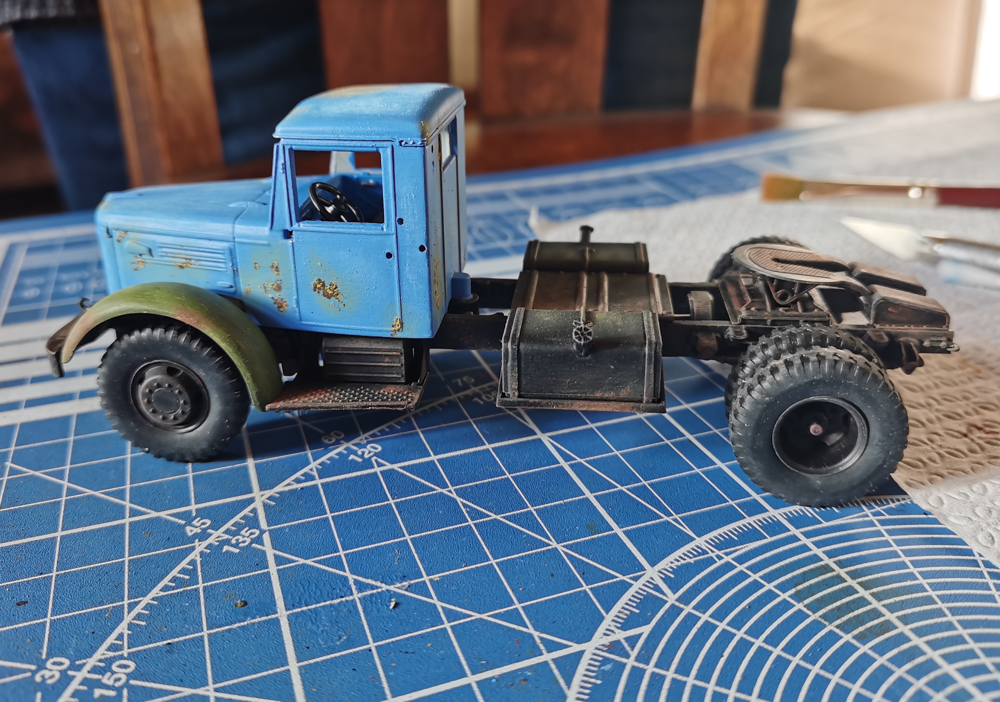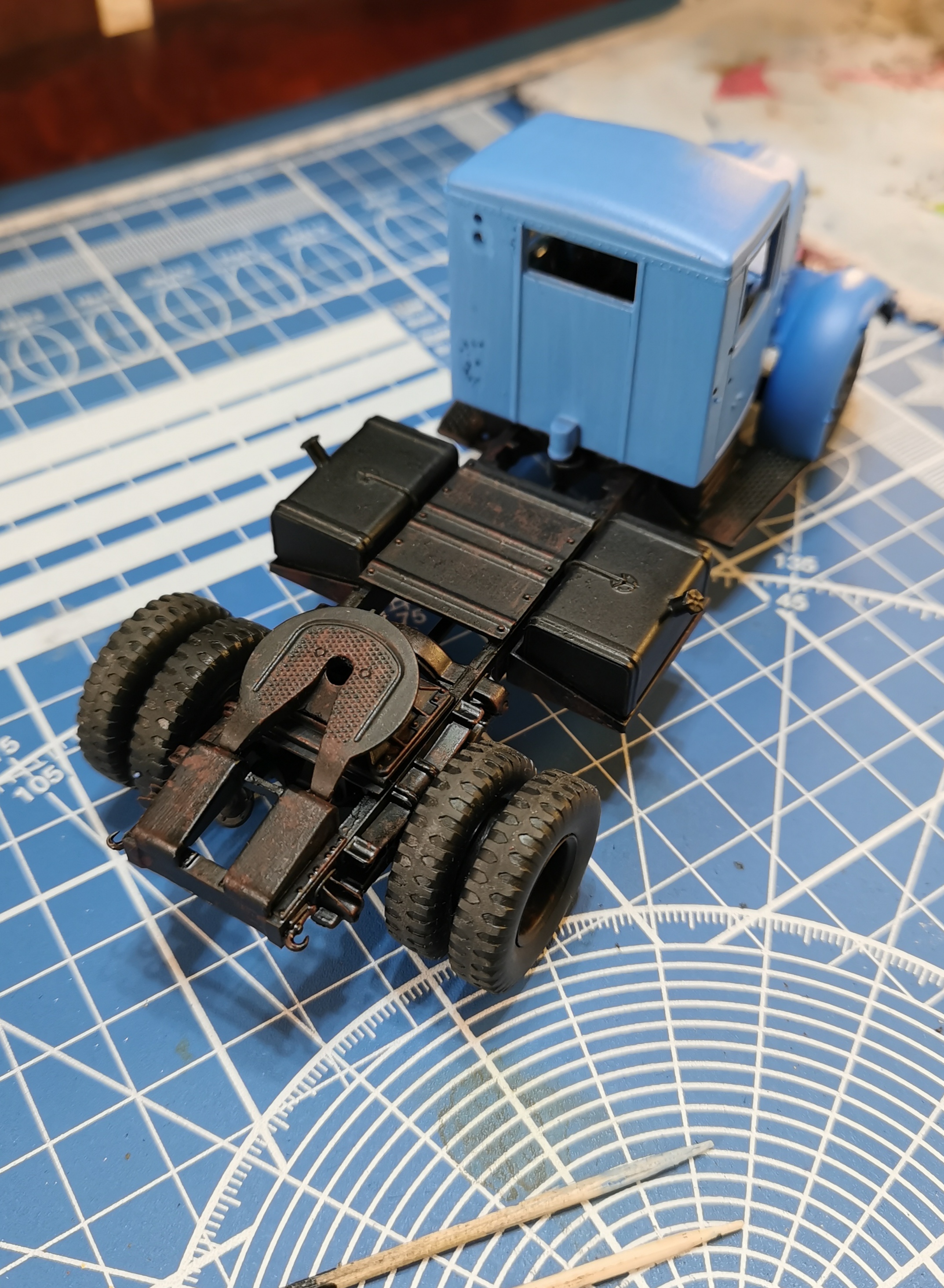 Пускай кабина пока отлёживается и просыхает, а я попробую поэкспериментировать масляной пастелью "Сонет" Невская палитра. Подопытным будет прицеп МАЗ-5215