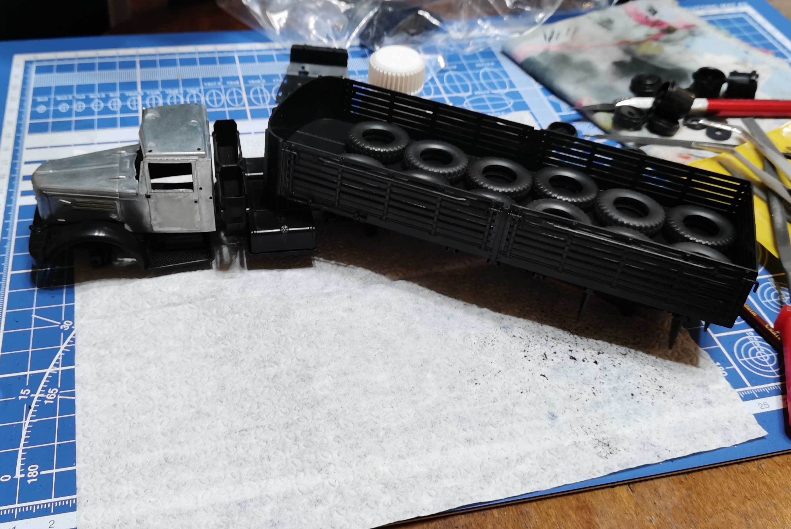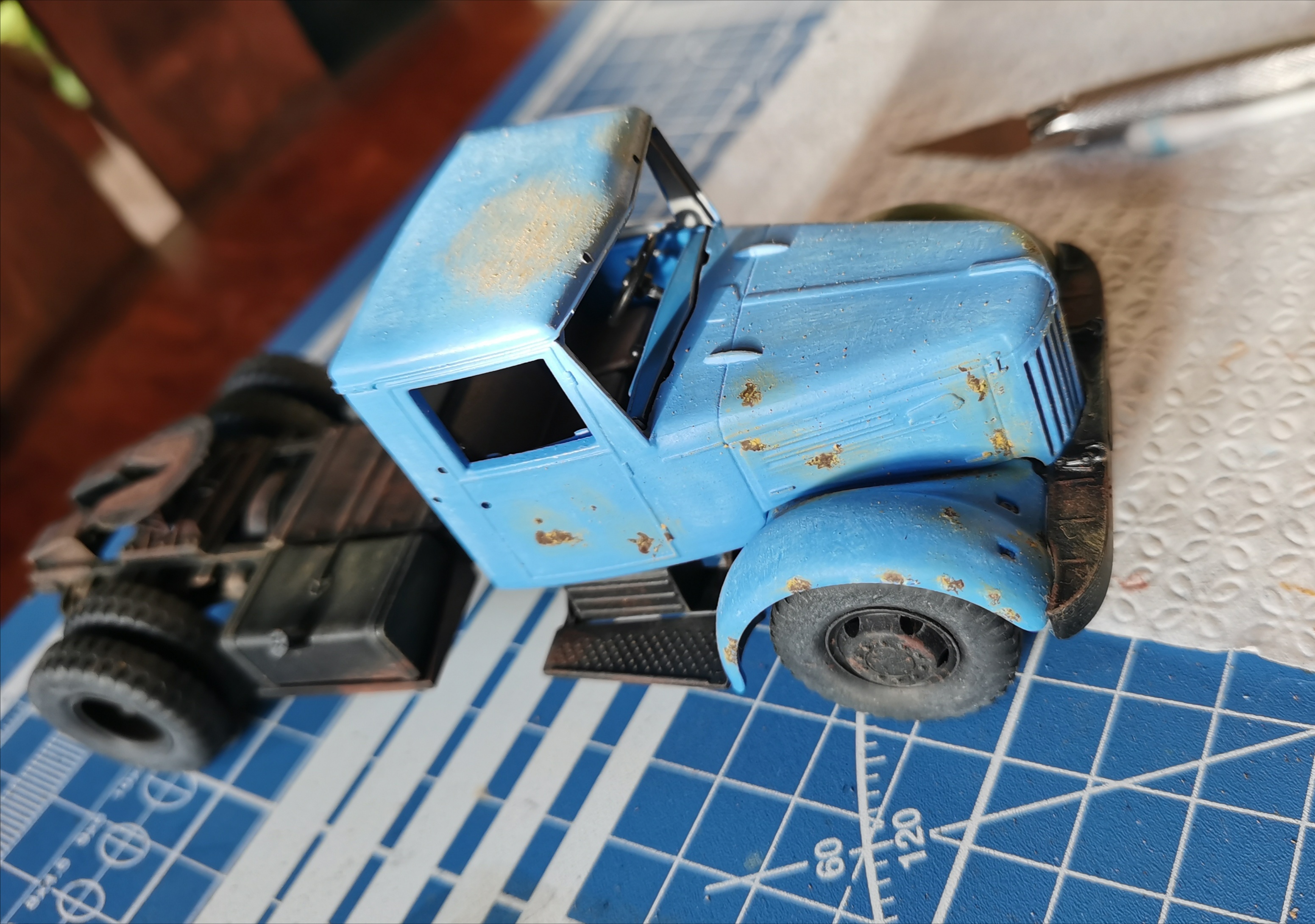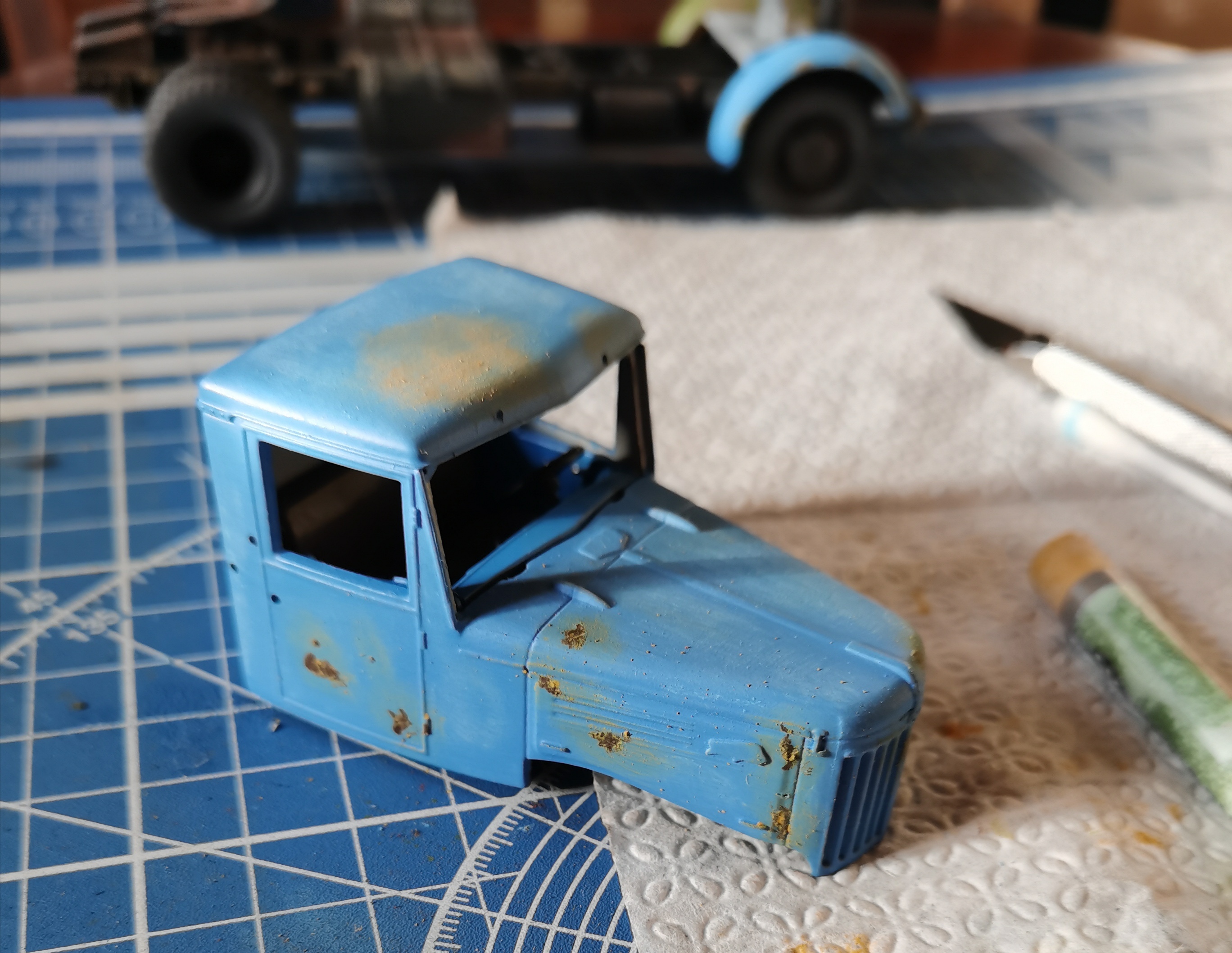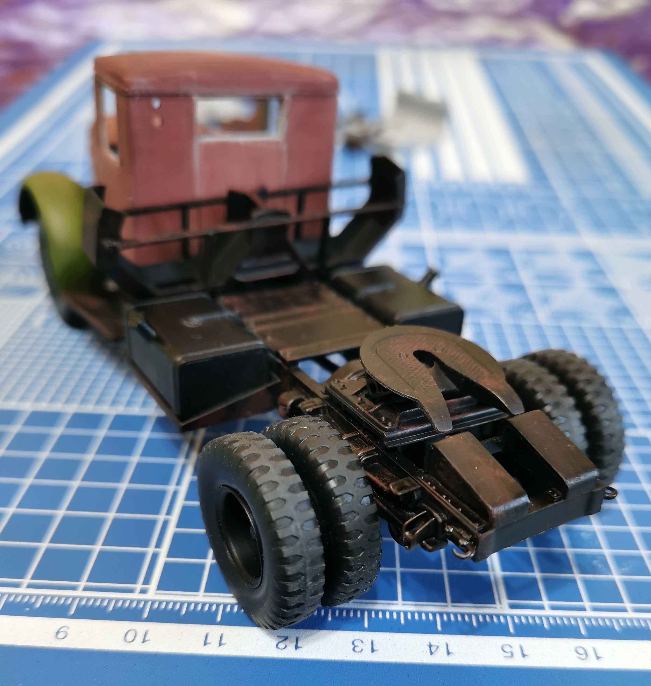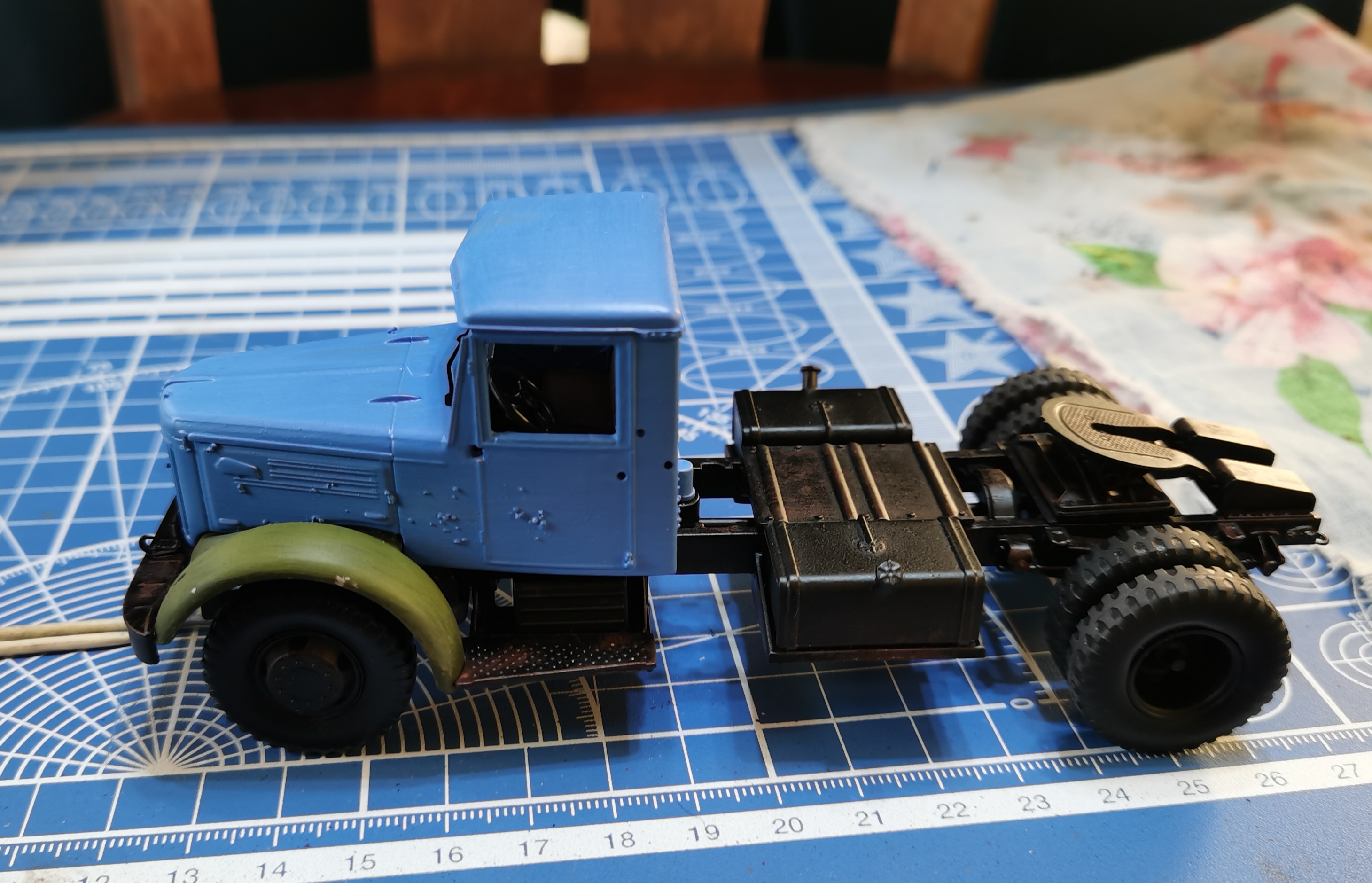 Пускай кабина пока отлёживается и просыхает, а я попробую поэкспериментировать масляной пастелью "Сонет" Невская палитра. Подопытным будет прицеп МАЗ-5215