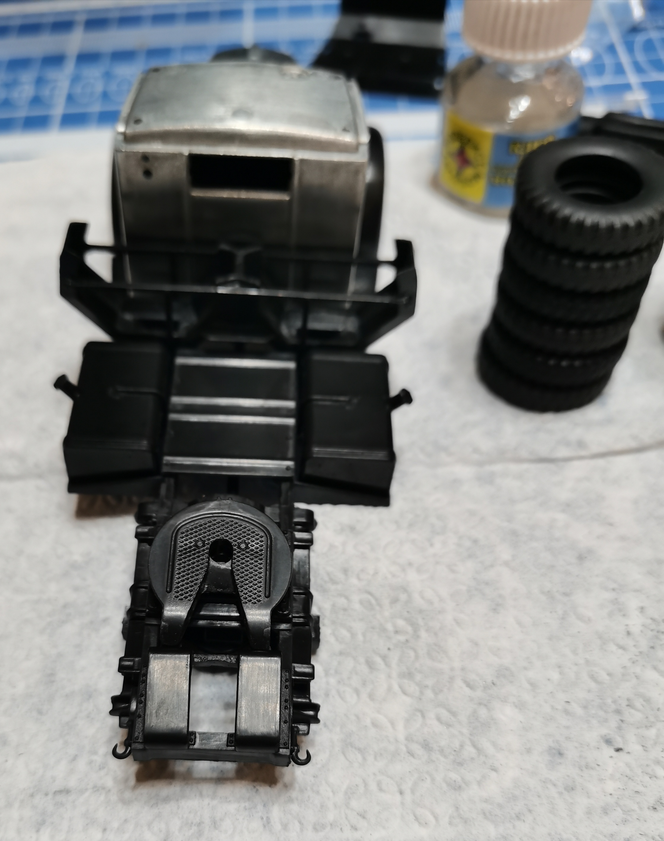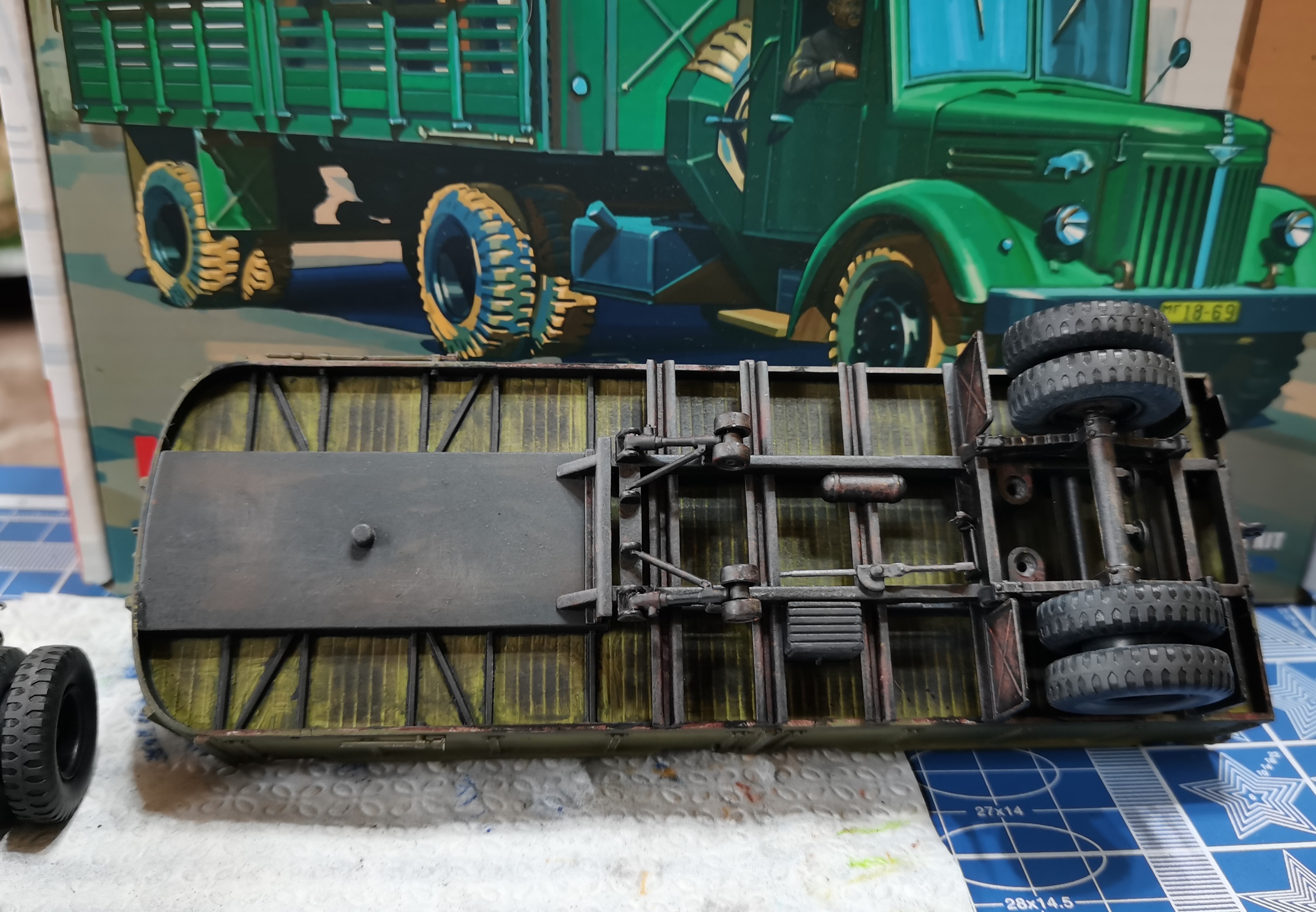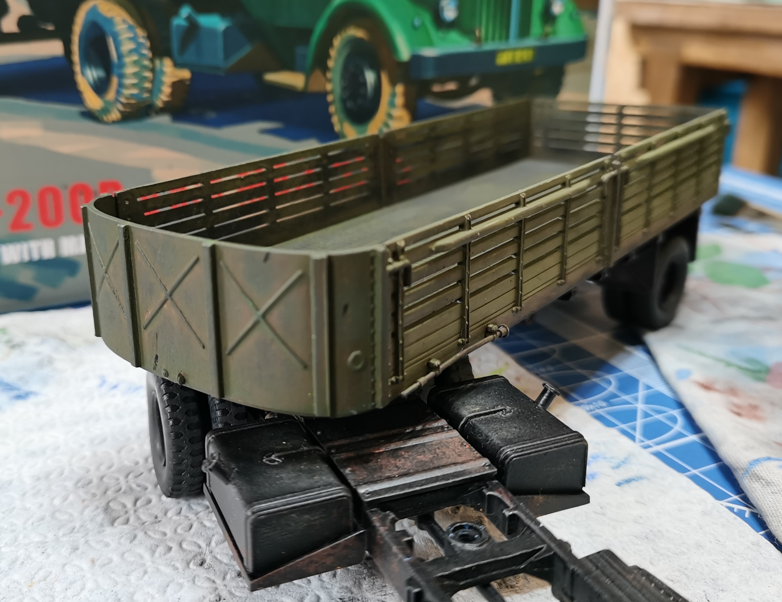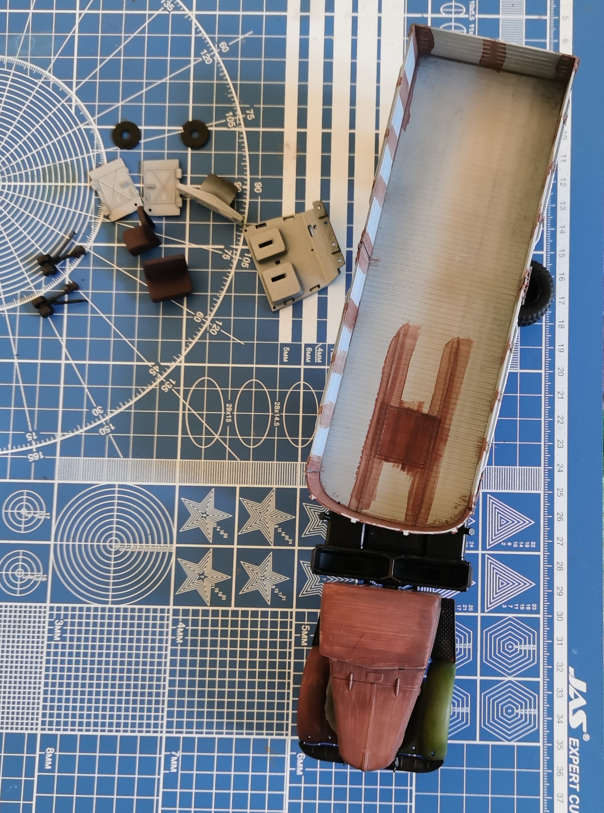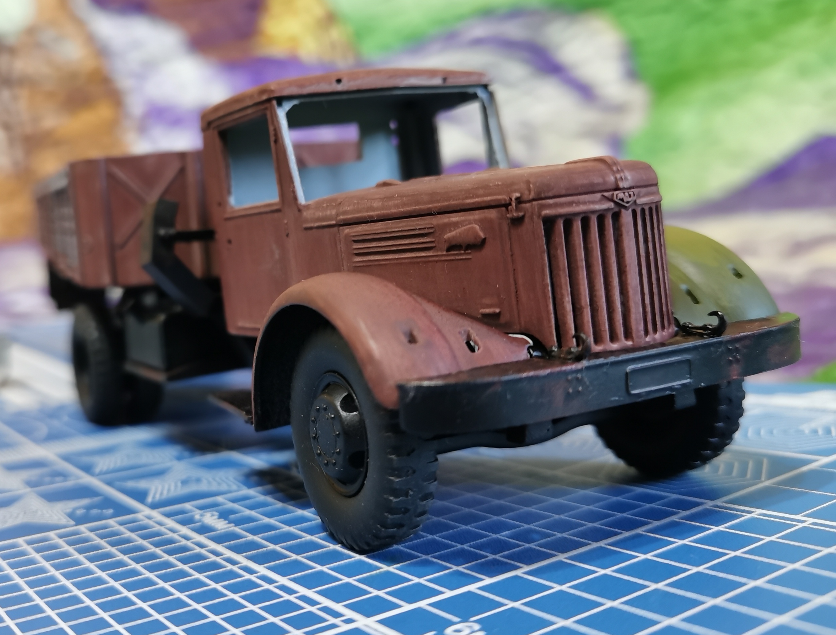 Пускай кабина пока отлёживается и просыхает, а я попробую поэкспериментировать масляной пастелью "Сонет" Невская палитра. Подопытным будет прицеп МАЗ-5215