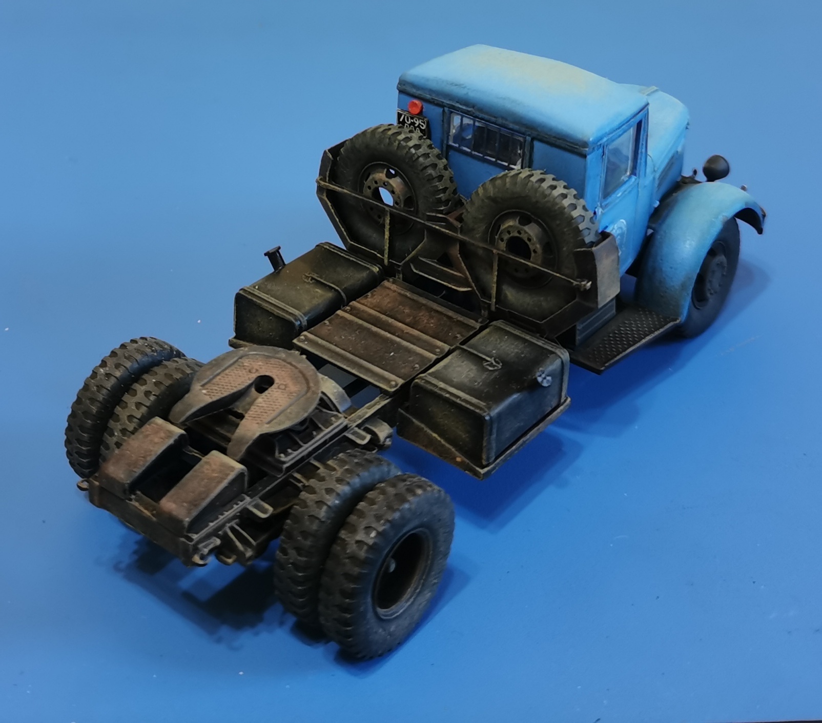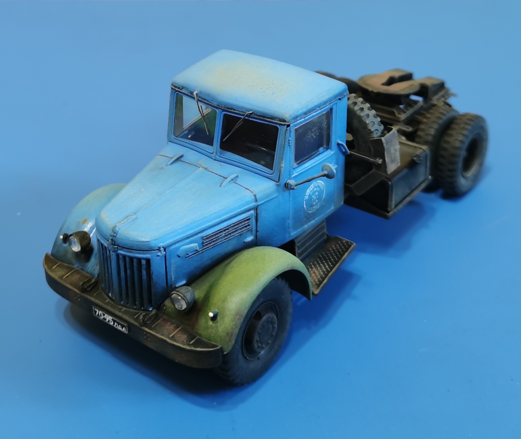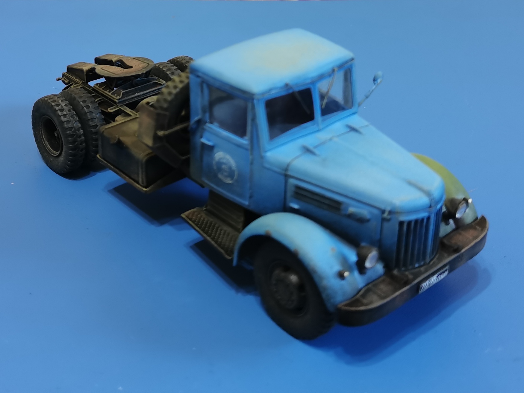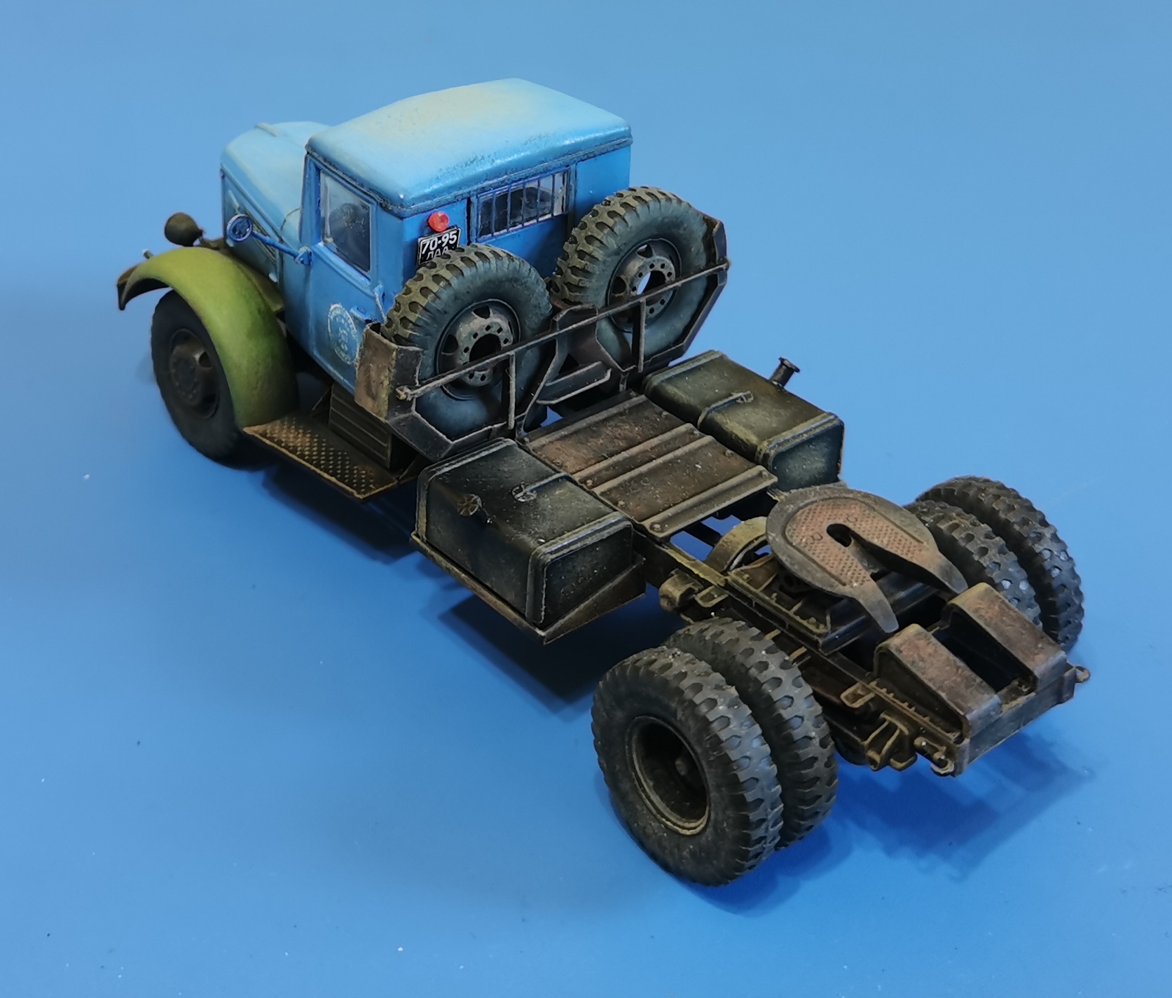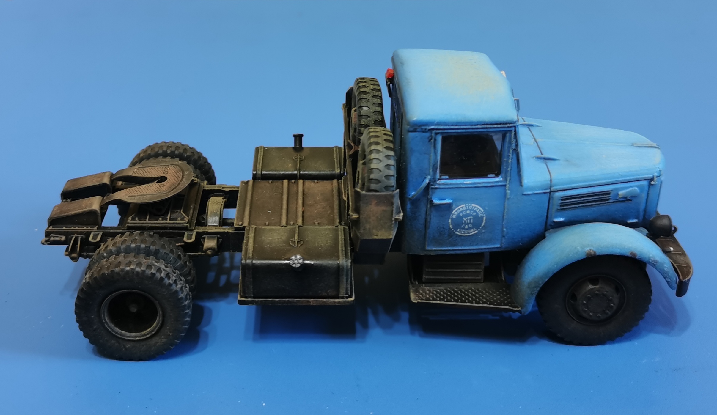 Дорогие Друзья! Представляю очередную работу автозавода, МАЗ-200В с п/п МАЗ-5215. Покраска проводилась кистью акрилом от Звезды, за исключением рам тягача и п/п XF-85 TAMIYA. Смывка мяслянные краски+растворитель для маслянных красок. В качестве пигмента использовал маслянную пастель "Сонет" Невская палитра. Глянцевый и матовый лаки в аэрозольных баллончиках TYTAN. Идею покраски подсмотрел на просторах интернет