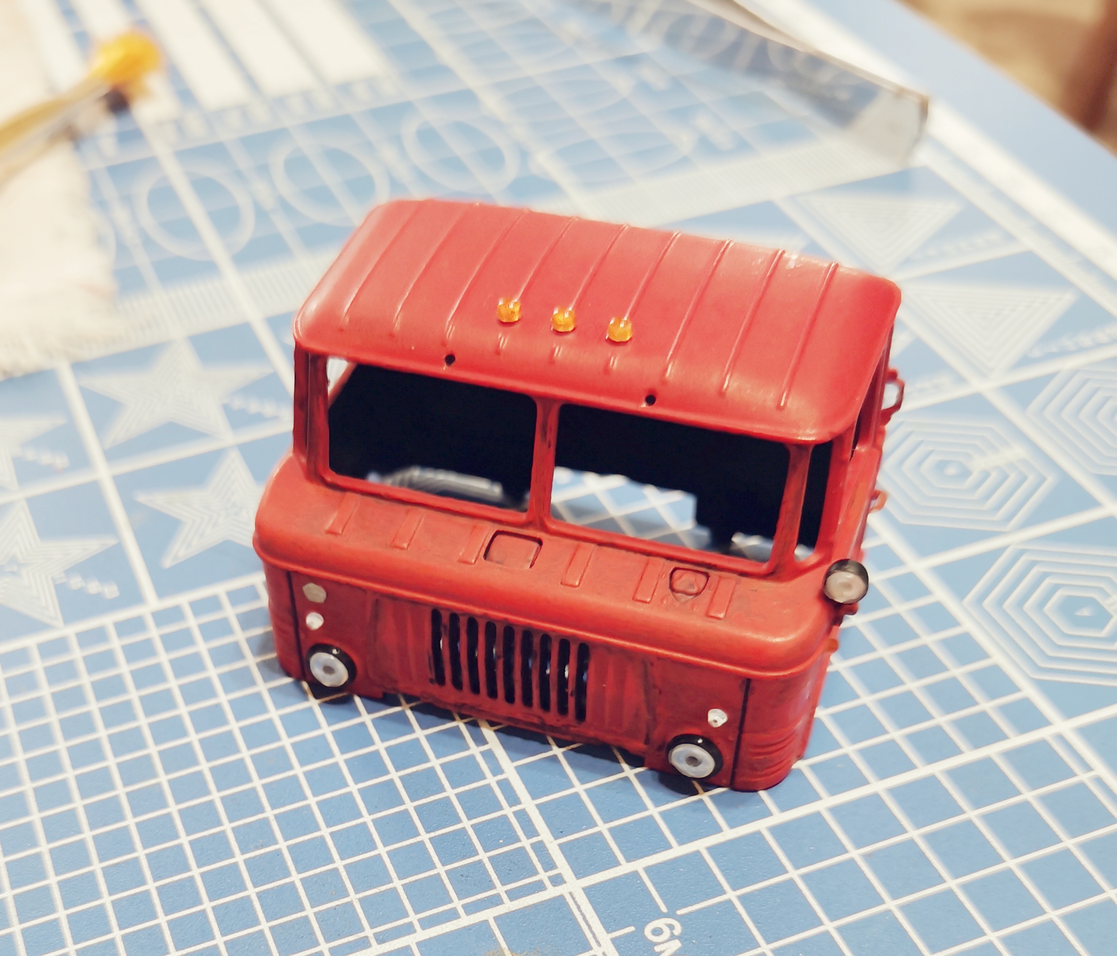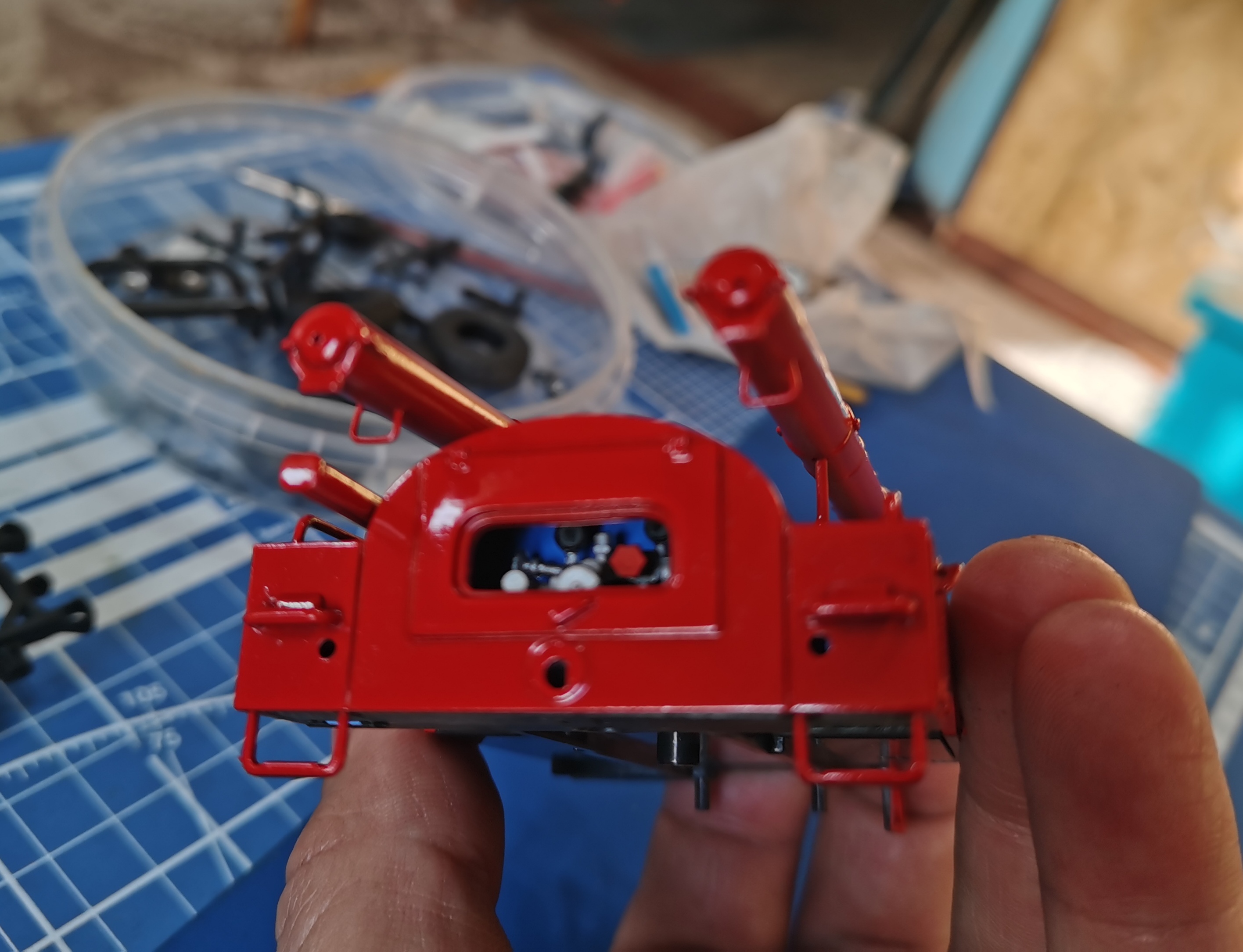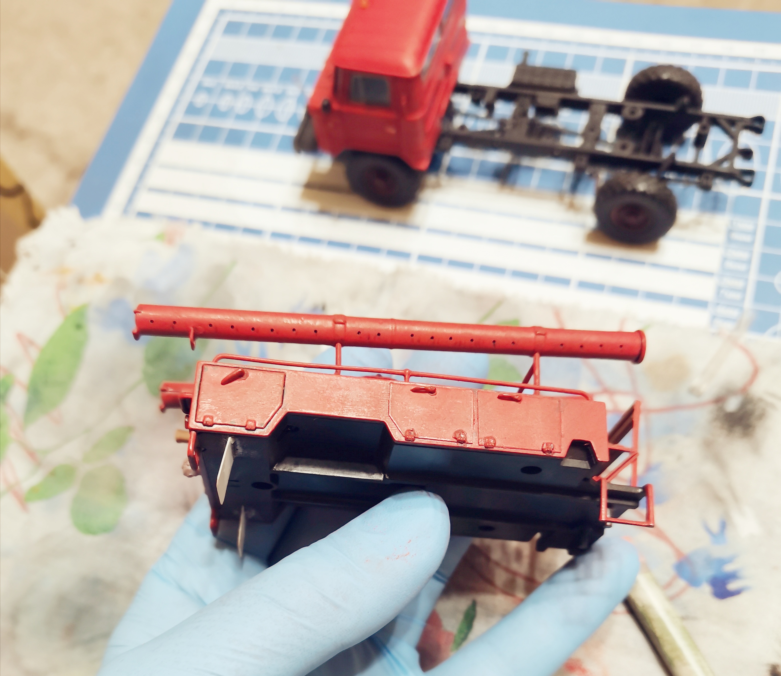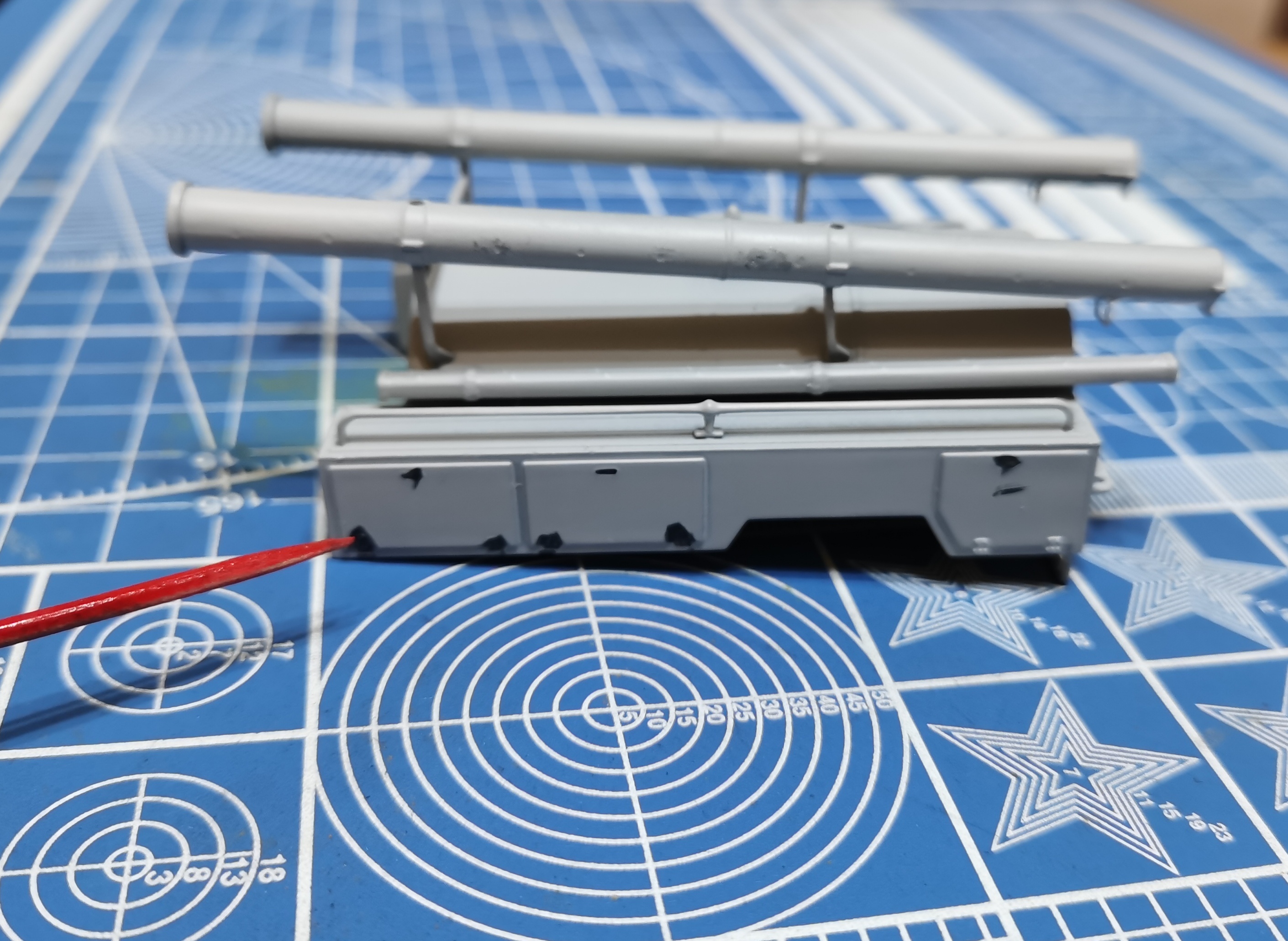 Приклеил на место срезанные петли, добавил ручки на крышки рундуков, правда 4 от ЗИЛ-130 и 2 от МАЗ-200. Думаю сойдёт