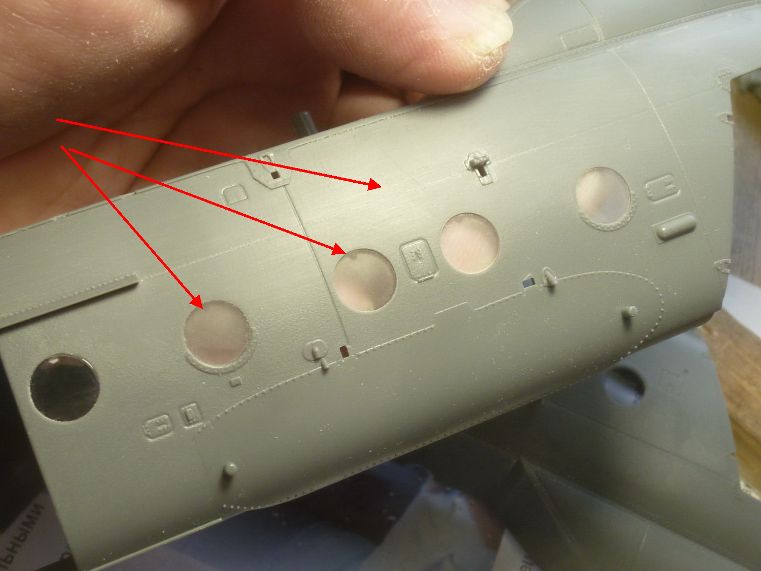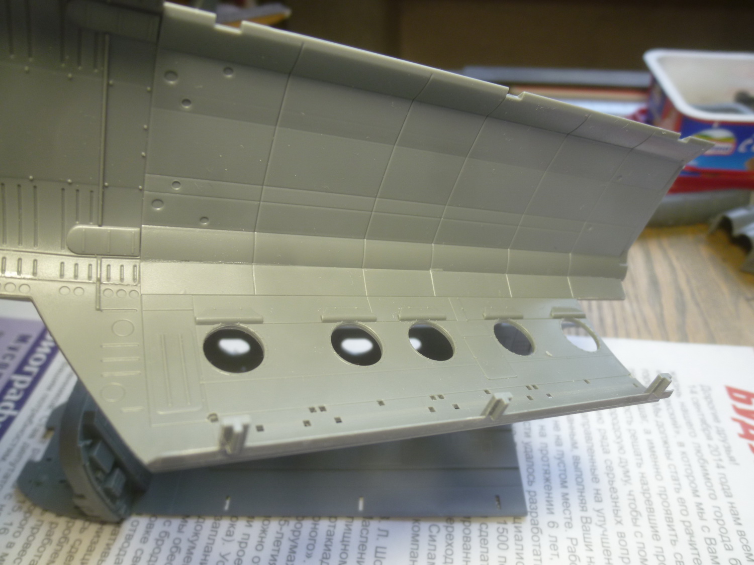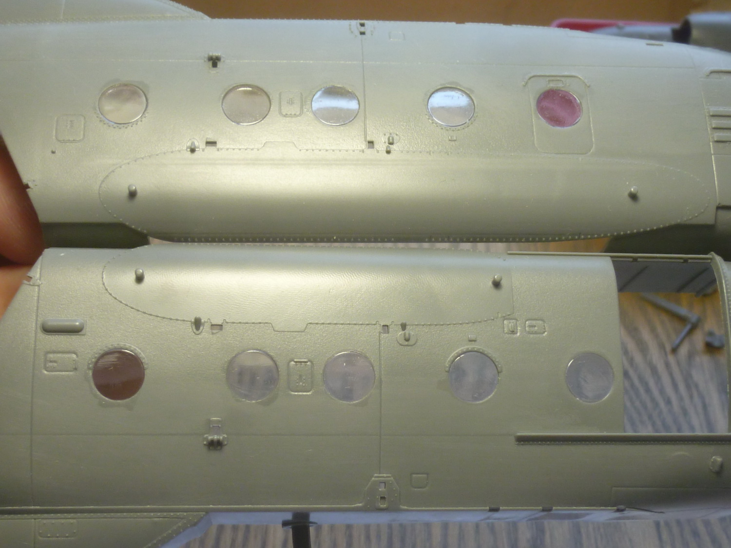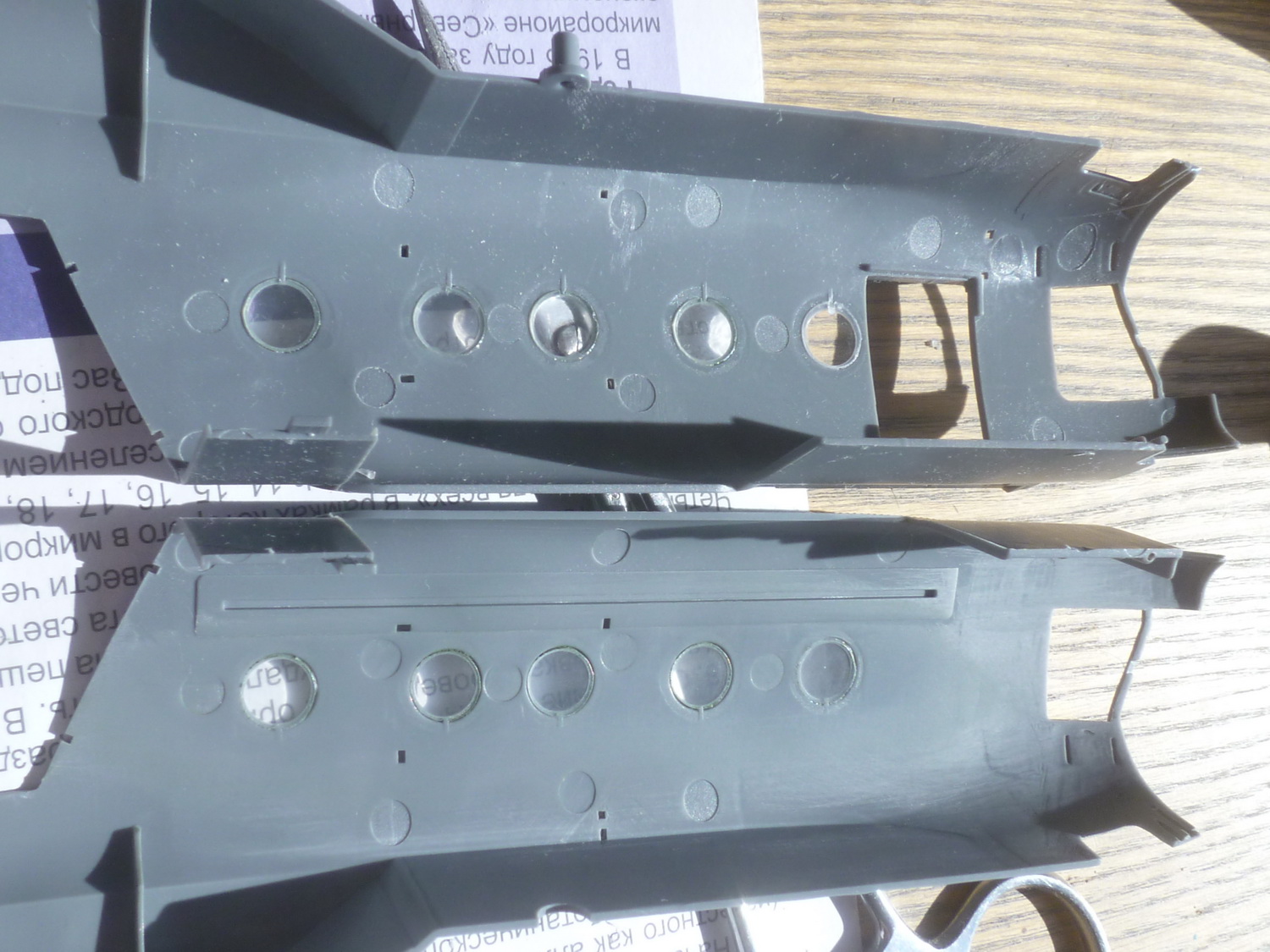 Обе модели имеют свои "+" и "-". Китайская с более выраженным рельефом и пропечатанными деталями, что в данном случае предпочтительнее. Более удобно сделано членение верхней части фюзеля, а именно - отдельной деталью даётся двигательный и редукторный отсек, который потребует основательной переделки. Надо будет удлинять мотогондолы, переделывать входной канал вентилятора, заднюю часть редукторного отсека, выхлопные устройства двигателя. Перенос РВ с левой на правую сторону не представляет проблемы - детский лепет по сравнению с предыдущим!