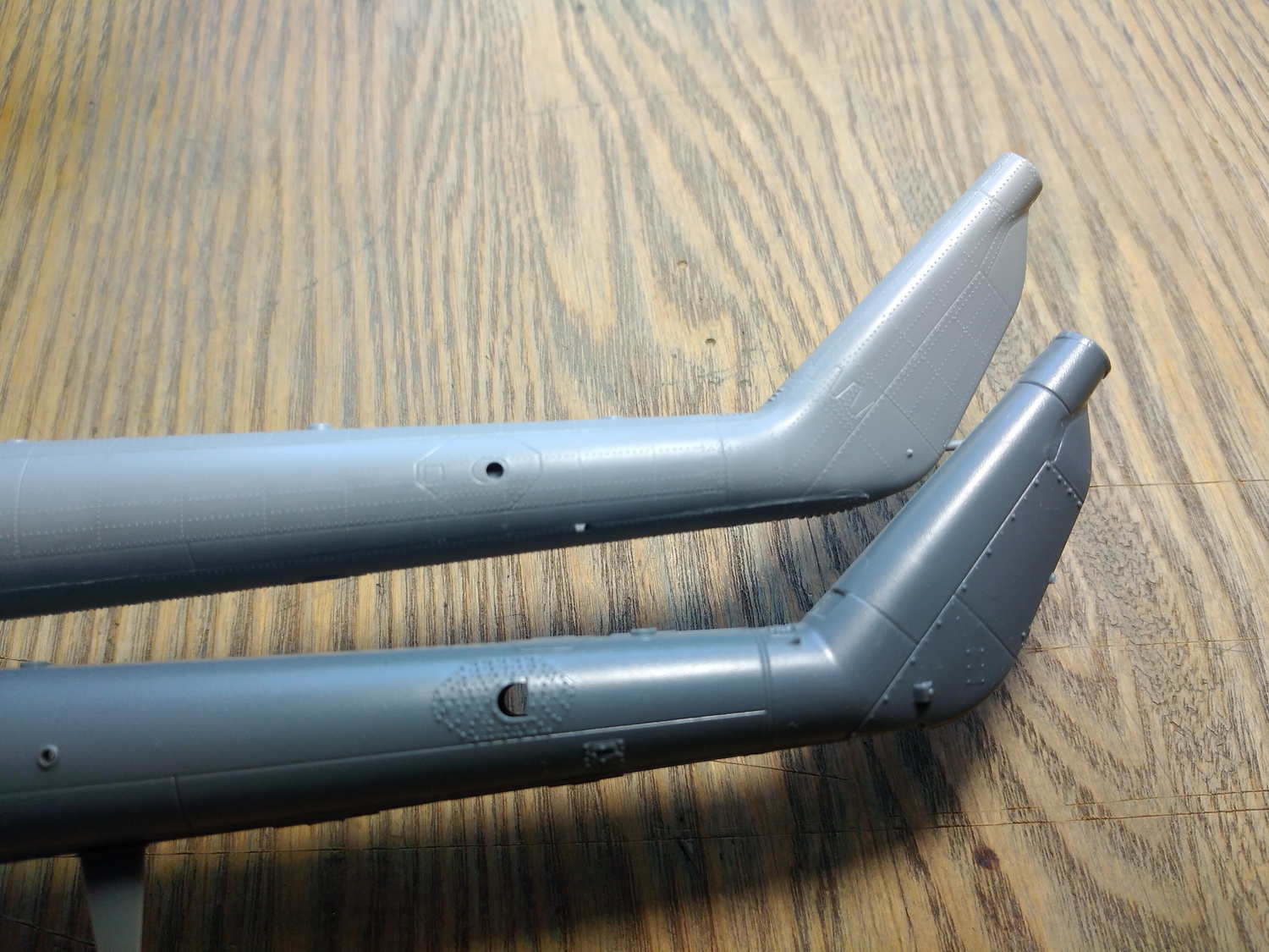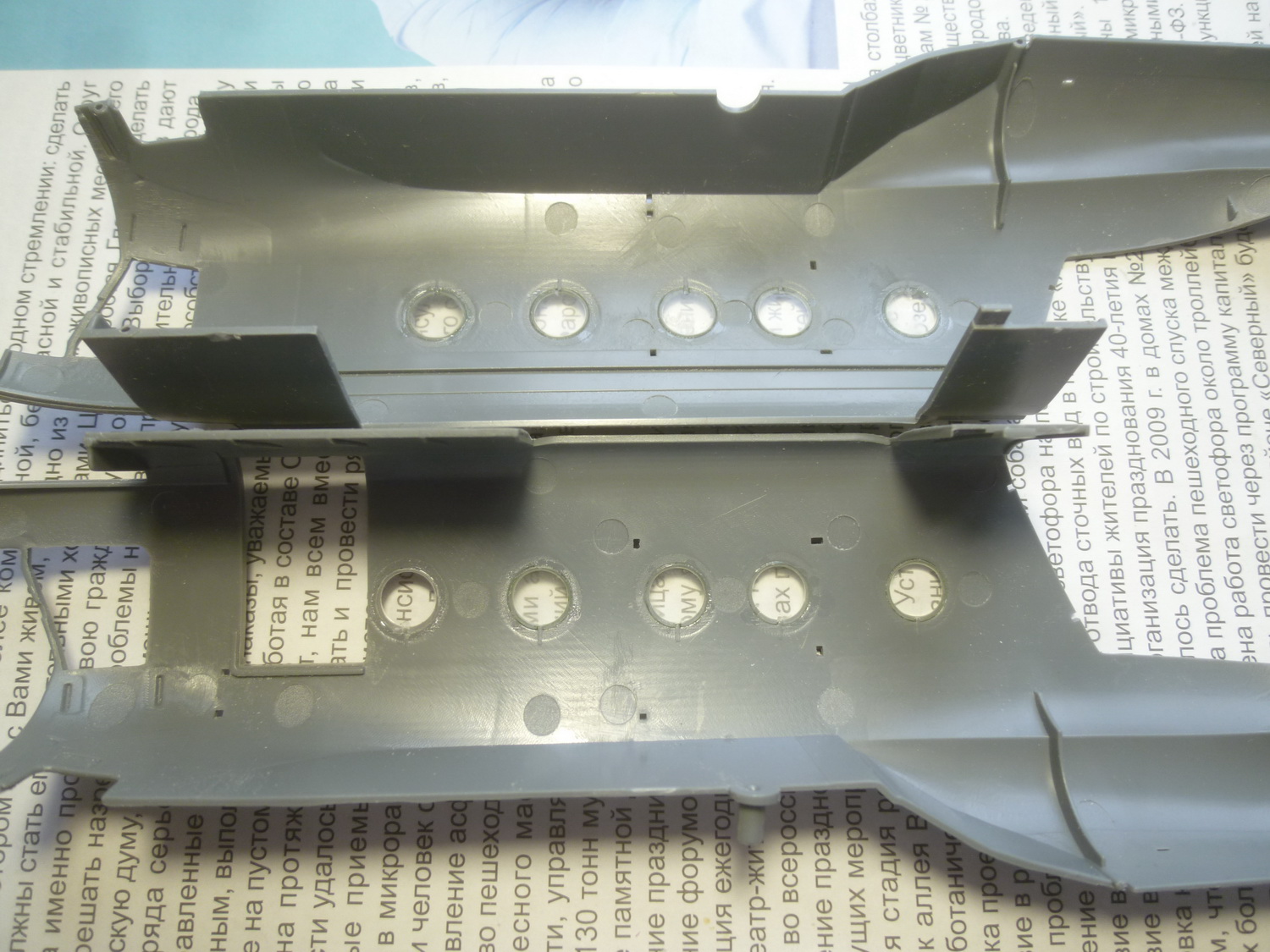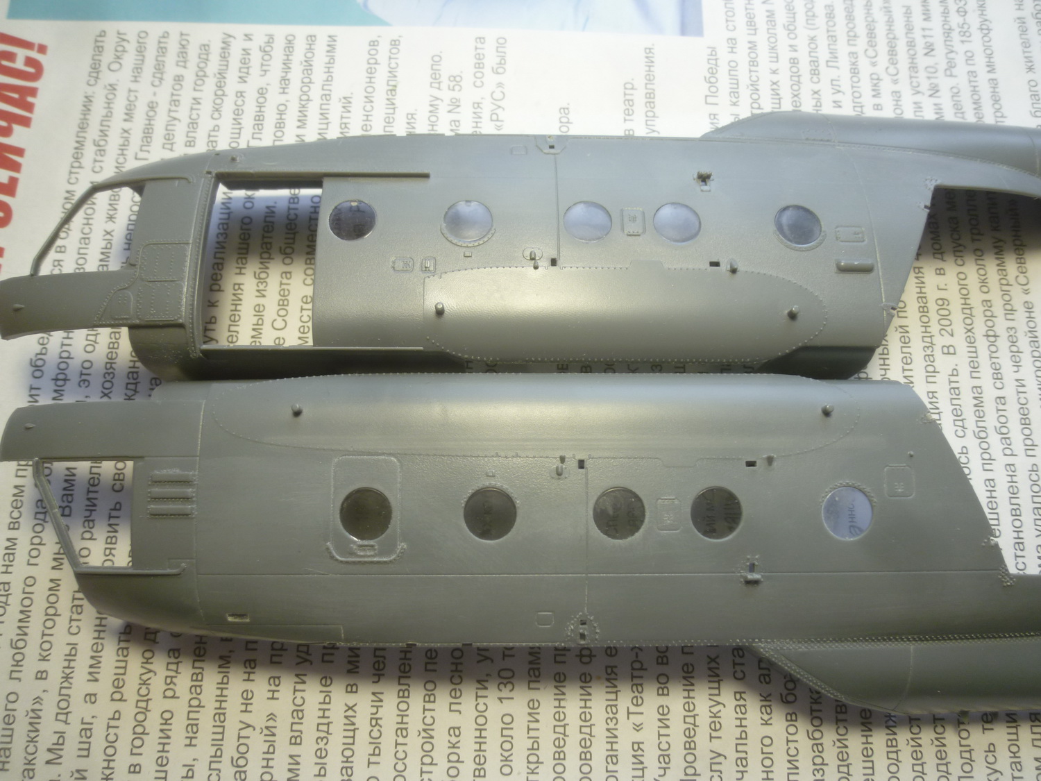Обе модели имеют свои "+" и "-". Китайская с более выраженным рельефом и пропечатанными деталями, что в данном случае предпочтительнее. Более удобно сделано членение верхней части фюзеля, а именно - отдельной деталью даётся двигательный и редукторный отсек, который потребует основательной переделки. Надо будет удлинять мотогондолы, переделывать входной канал вентилятора, заднюю часть редукторного отсека, выхлопные устройства двигателя. Перенос РВ с левой на правую сторону не представляет проблемы - детский лепет по сравнению с предыдущим!