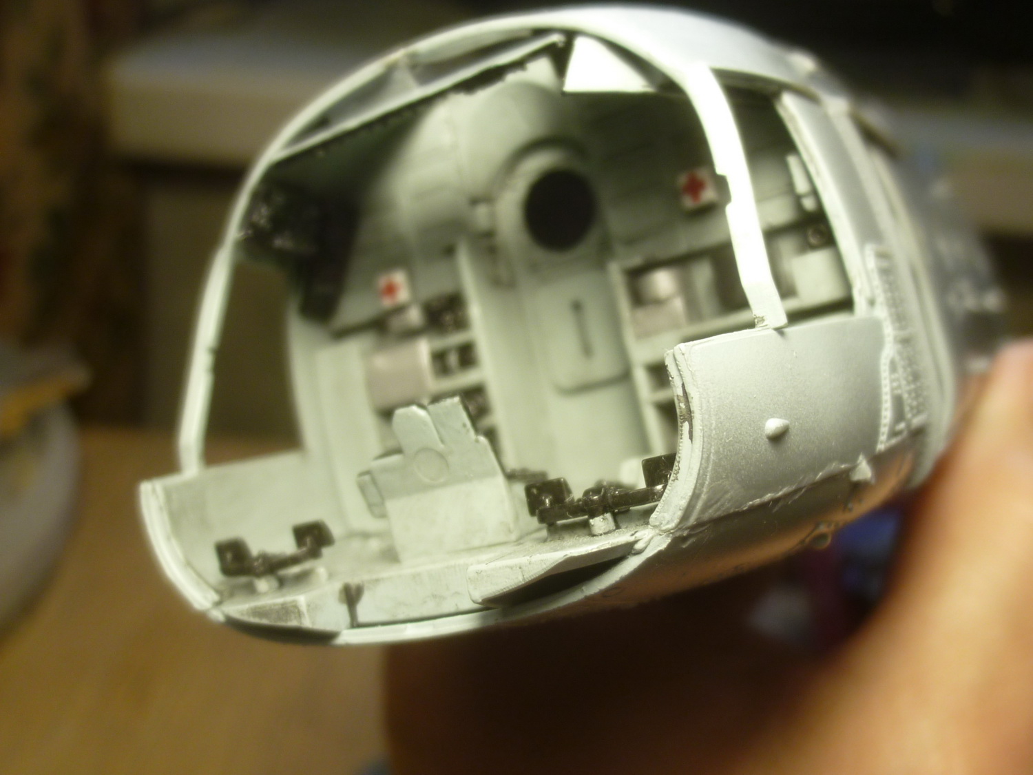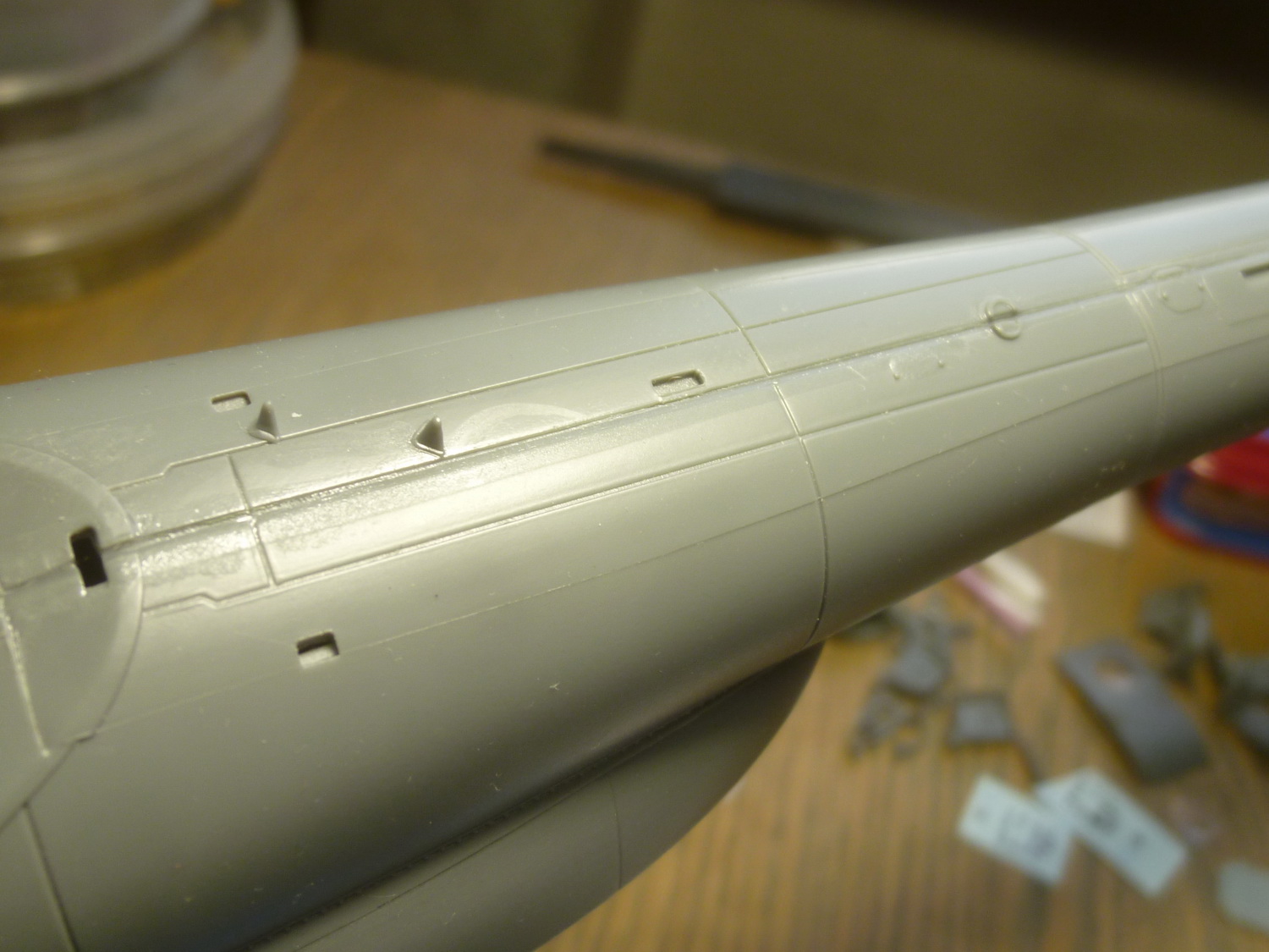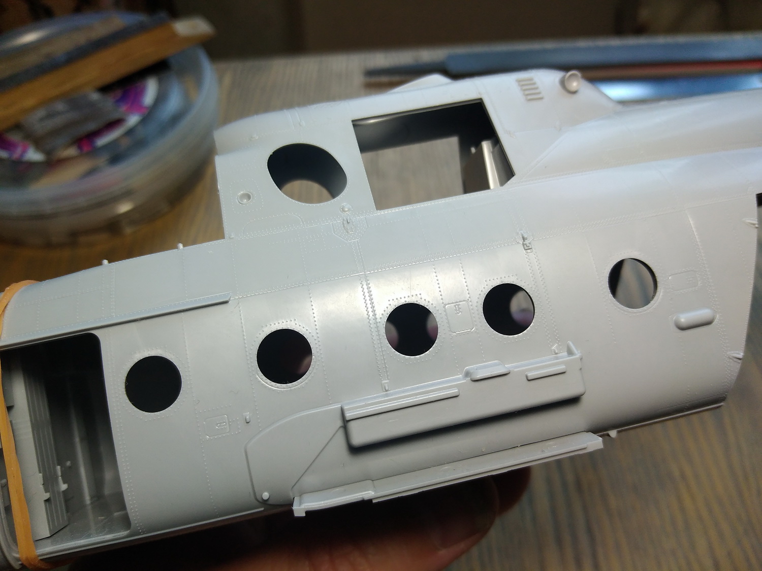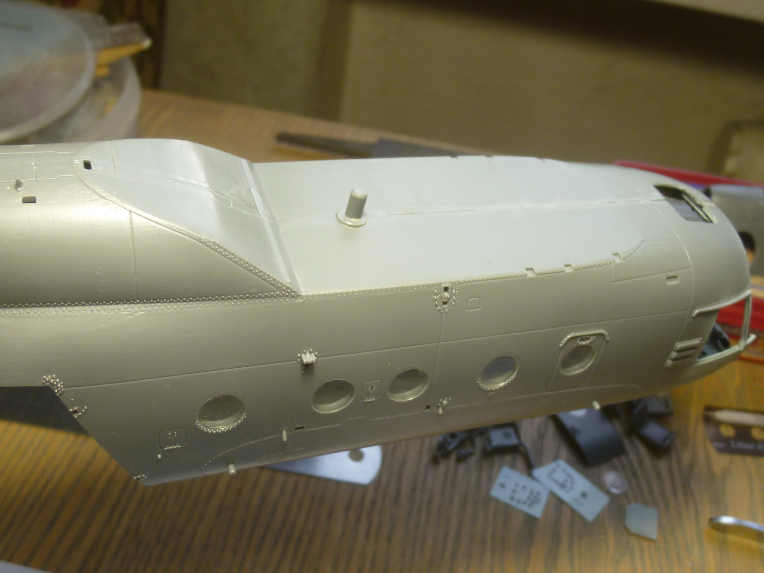 Обе модели имеют свои "+" и "-". Китайская с более выраженным рельефом и пропечатанными деталями, что в данном случае предпочтительнее. Более удобно сделано членение верхней части фюзеля, а именно - отдельной деталью даётся двигательный и редукторный отсек, который потребует основательной переделки. Надо будет удлинять мотогондолы, переделывать входной канал вентилятора, заднюю часть редукторного отсека, выхлопные устройства двигателя. Перенос РВ с левой на правую сторону не представляет проблемы - детский лепет по сравнению с предыдущим!