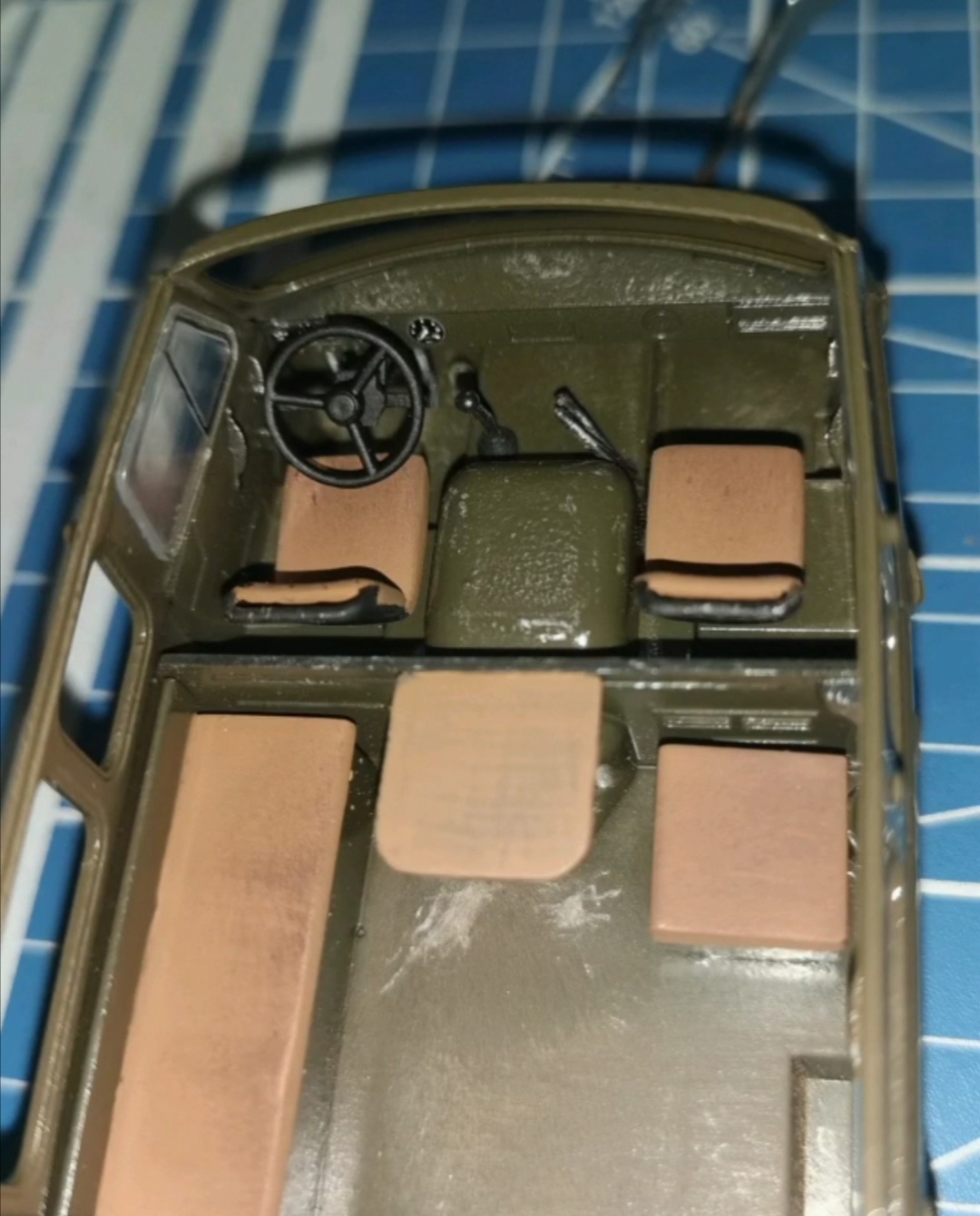 Доработал спальное место и боковую сидушку в салоне, рычаги раздатки и пониженной в кабине