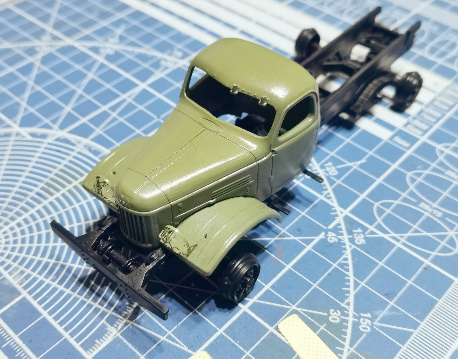 Да, видел такое. И то , что сейчас вижу на фото , весьма похоже. И если модель копирует такую машину, то налёт ржавчины на кабине и капоте вполне к месту, при совершенно не битой и не мятой кабине и , в целом , неповреждённой покраске - без задиров, отшелушевания и проч. И если машина недавно с хранения, то на шинах могут остаться следы извёстки... любили в СА колёса белить....