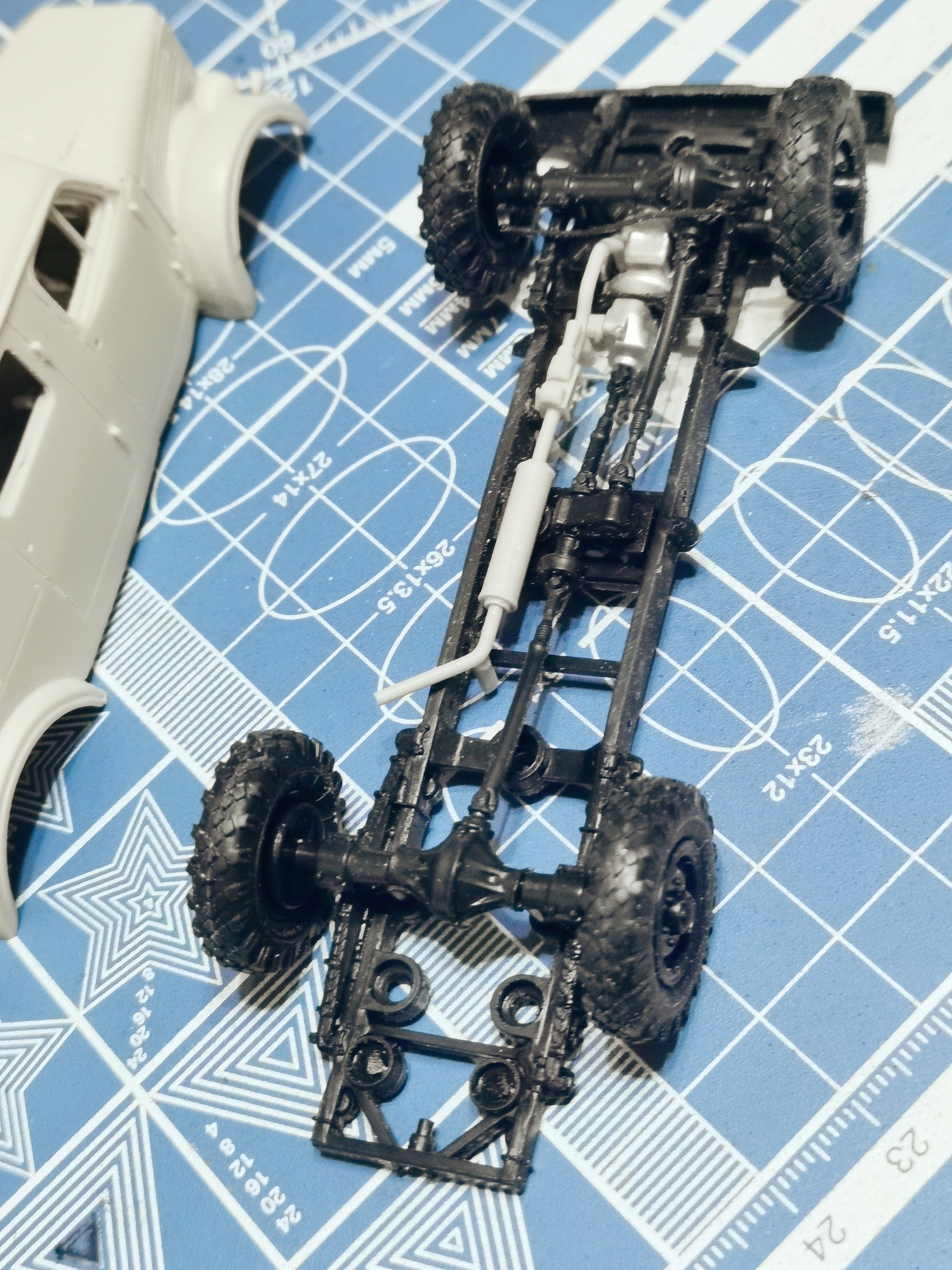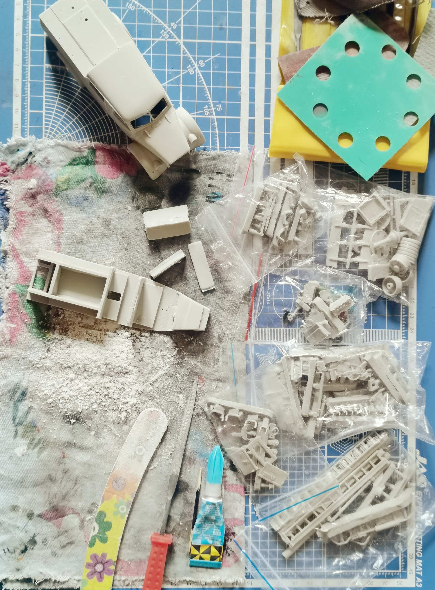 Дорогие Друзья. На этот раз автозаводом начата постройка пожарного автомобиля ПМГ-19 на базе ГАЗ-63. Все детали набора D.N.K. смоляные, так что придётся чуть больше пилить. Сразу решил заменить всю ходовую часть на донорскую (Легендарные грузовики СССР)