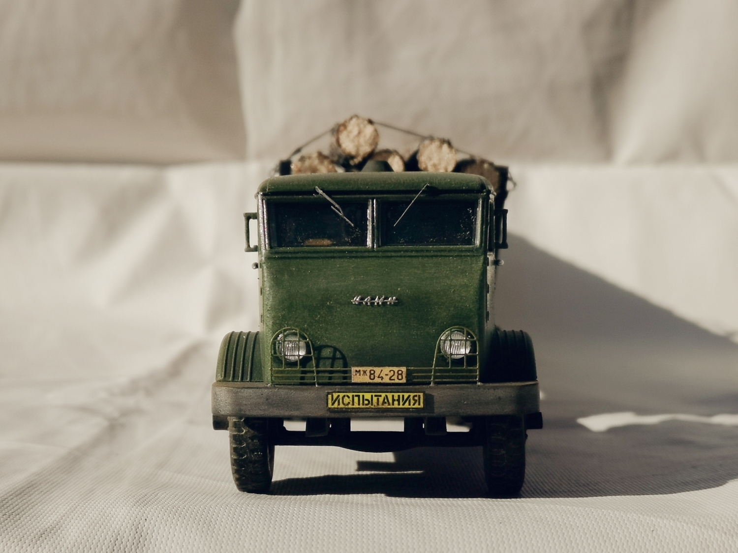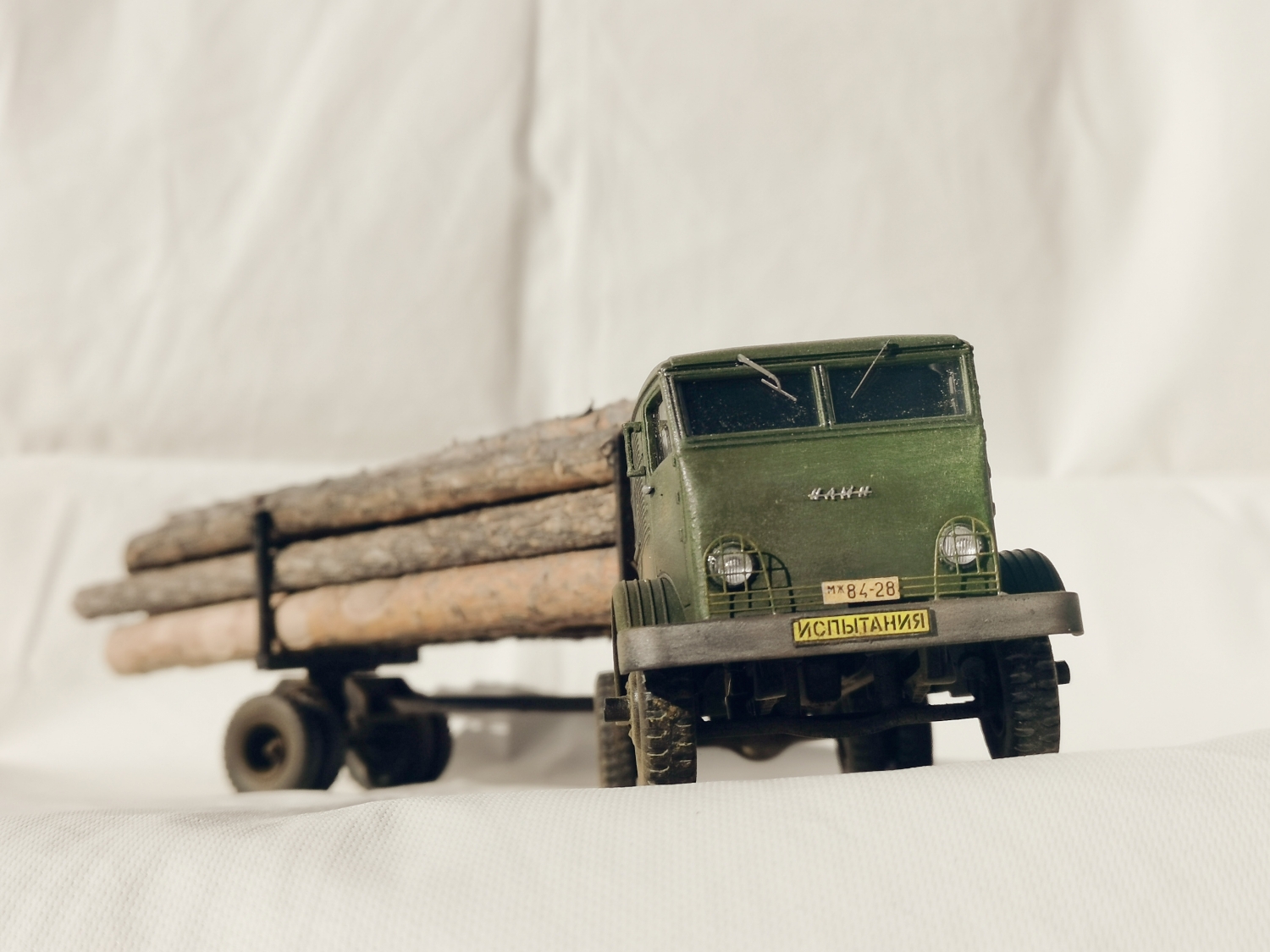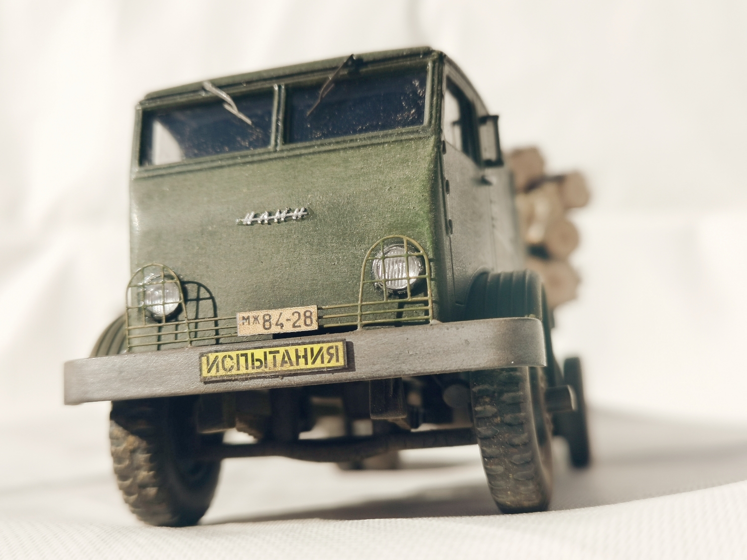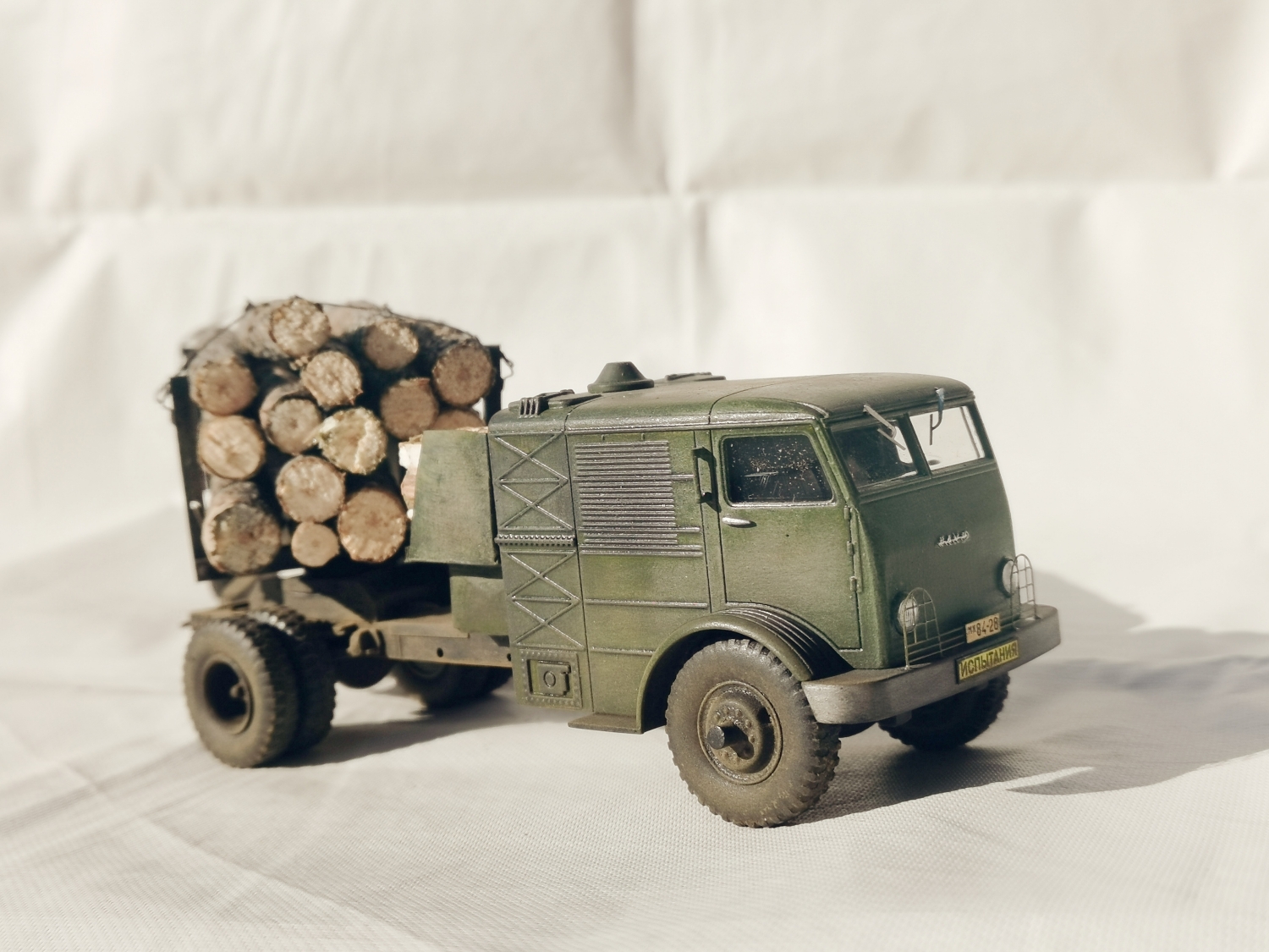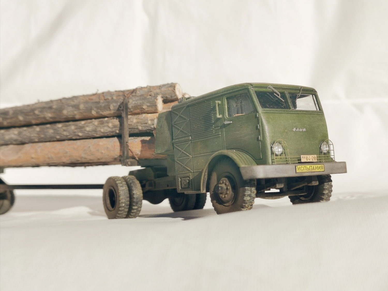 Дорогие Друзья. Представляю очередную работу автозавода, конверсия НАМИ-012. Из доработок: сточены углы кабины в передней её части, ступицы на передних колёсах, бункер за кабиной, подножка и площадка на раме за бункером, троса на хлыстовозе, груз. Покраска акрил Звезда (кисть), глянцевый и матовый лаки KUDO, смывка маслянная краска+растворитель для маслянных красок, пигмент сухая и маслянная пастель Сонет